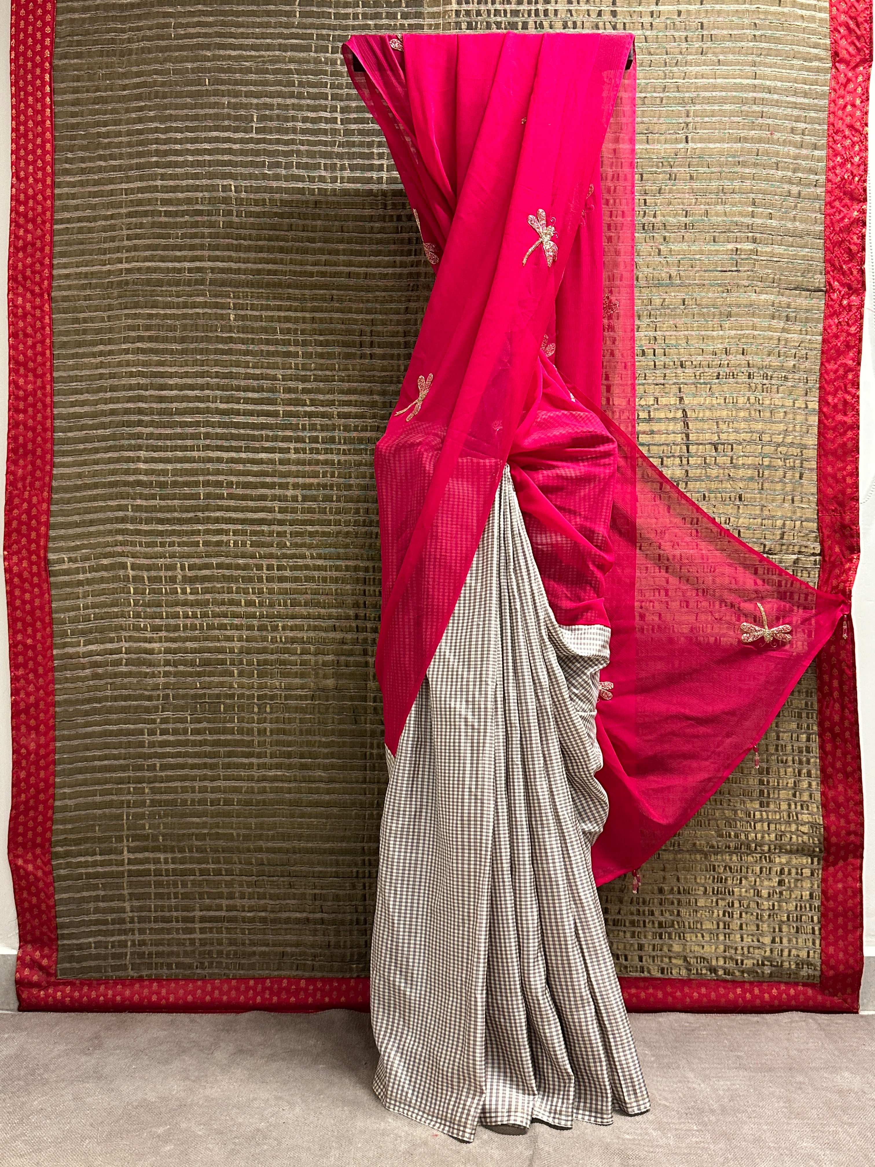 Mishrita Embroidered Colour Block Chiffon Saree