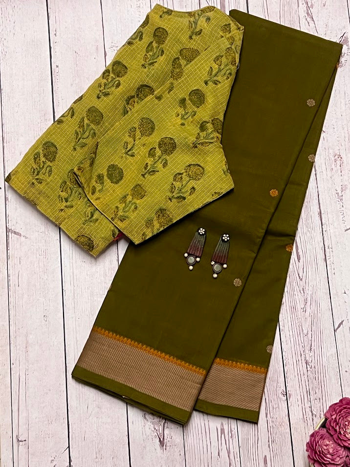 Leheriya bordered kanchi cotton saree
