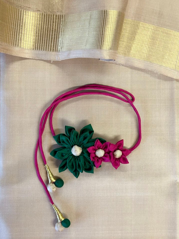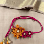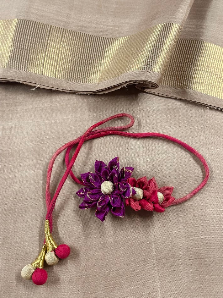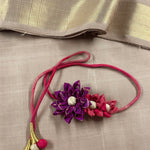 Dual tone crafted flowers Gajra neatly tucked on to the silk Dori with tassels.