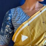 Blue cotton jwala blouse Handloom cotton Upcycled fabric scraps used in the making Handcrafted Pairs with all monotone contrasts Versatile blouse Pairs well with jewel tones To view more similar blouses, pls click onhttps://aavaranaa.com/blouses/
