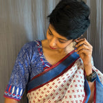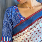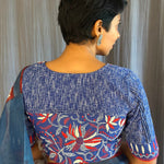 Blue kantha embroidered blouse Handwoven ikat cotton with hand embroidered kantha work 100% cotton Handcrafted Can be paired with summer colours To view more similar blouses, pls click onhttps://aavaranaa.com/blouses/