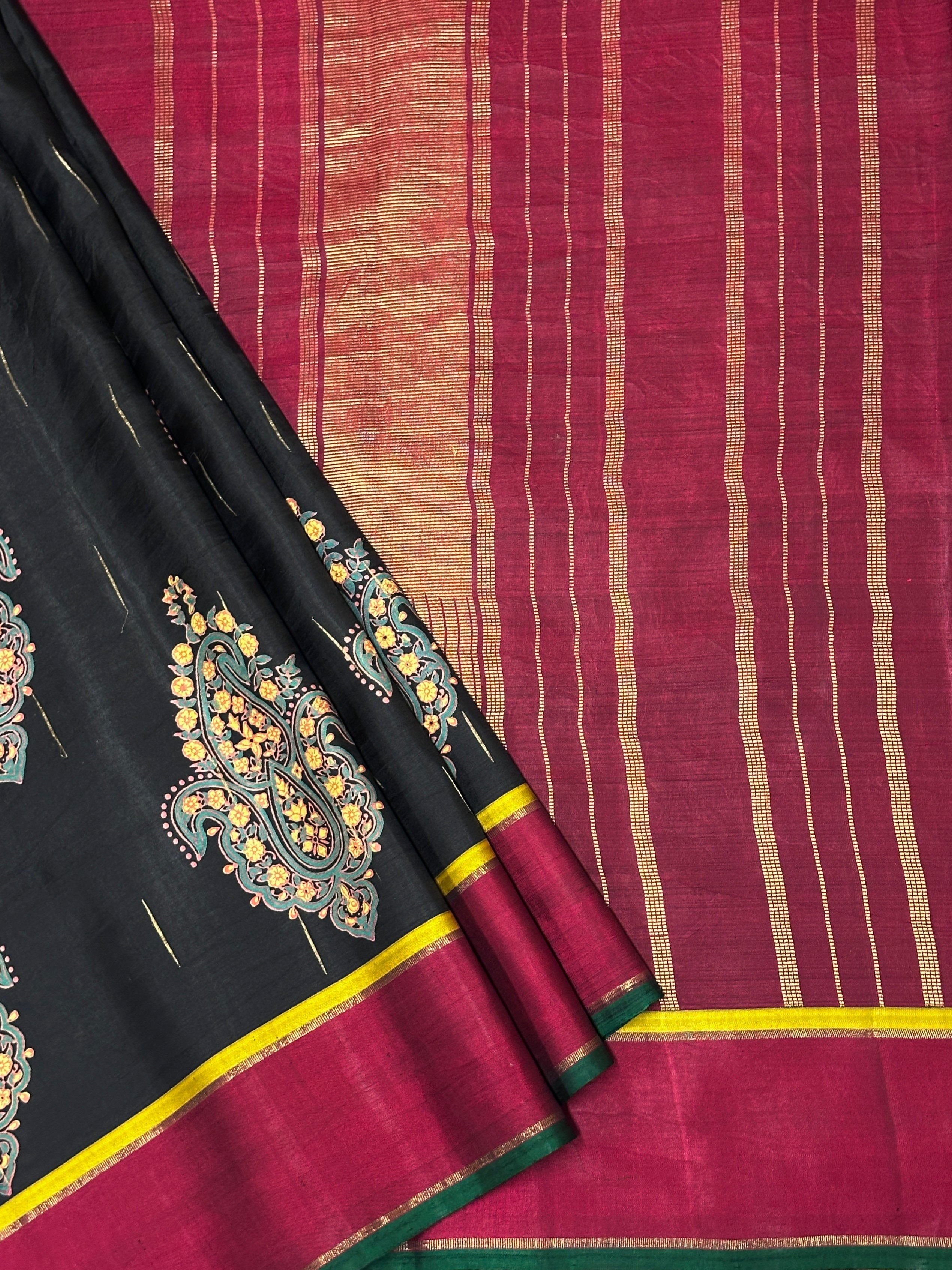 Mila Ajrakh Noir Kanchipuram Silk Saree