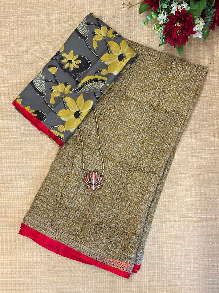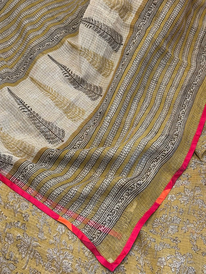 Mishrita Olive Foliate Kota Saree