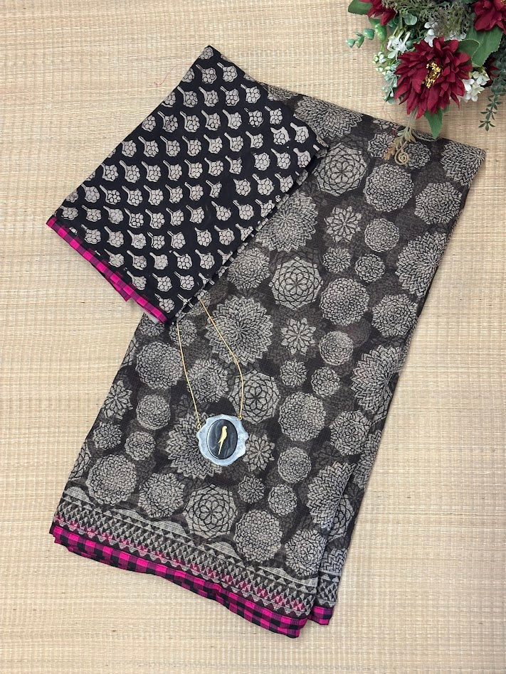 Mishrita Black Floral Kota Saree