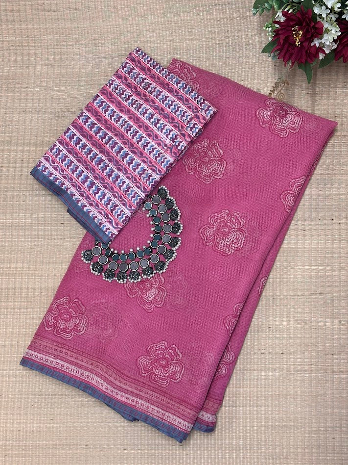 Mishrita Raspberry Kota Saree