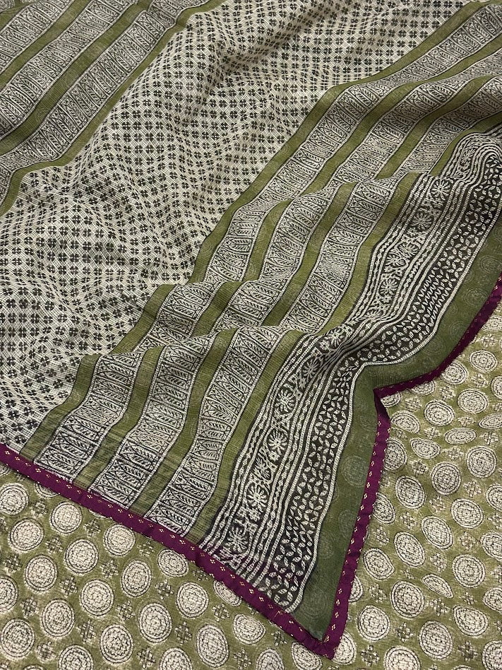 Mishrita Olive Geometric Kota Saree