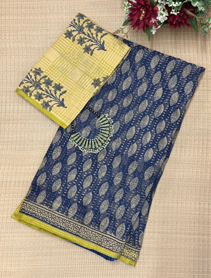 Mishrita Indigo Foliate Kota Saree