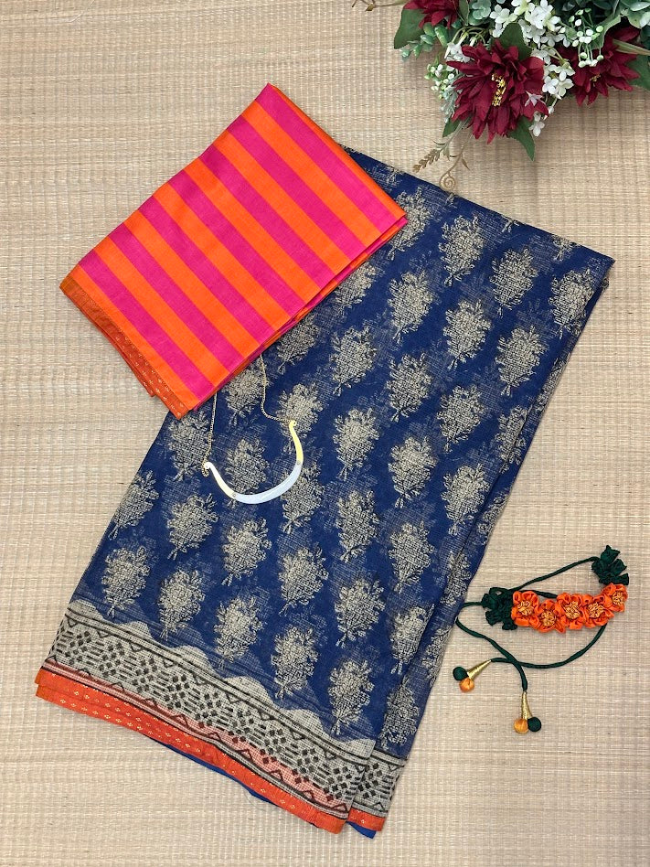 Mishrita Blue Printed Kota Saree