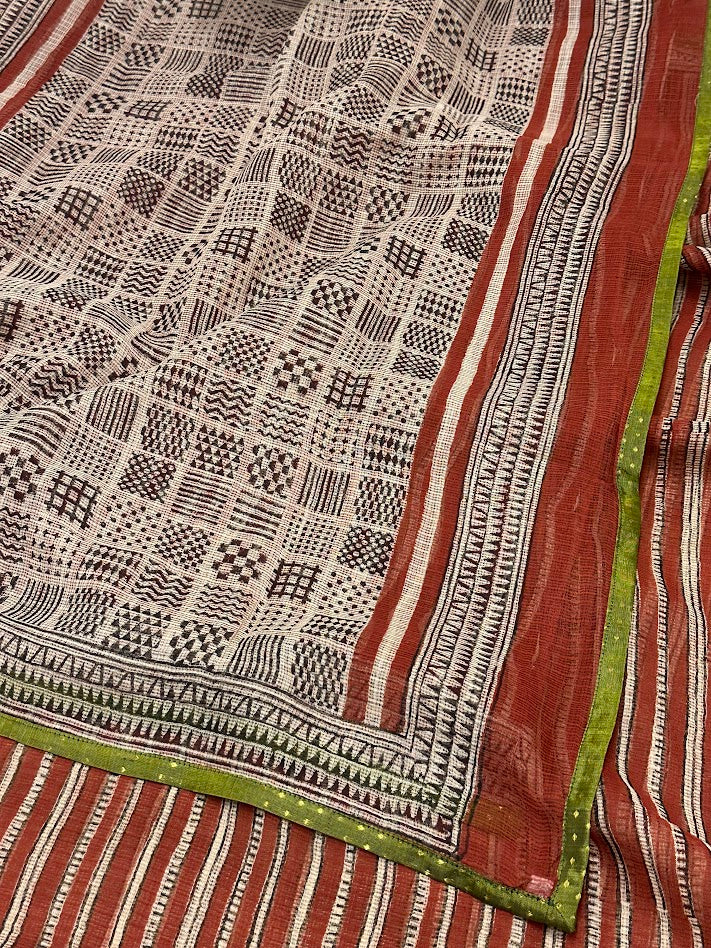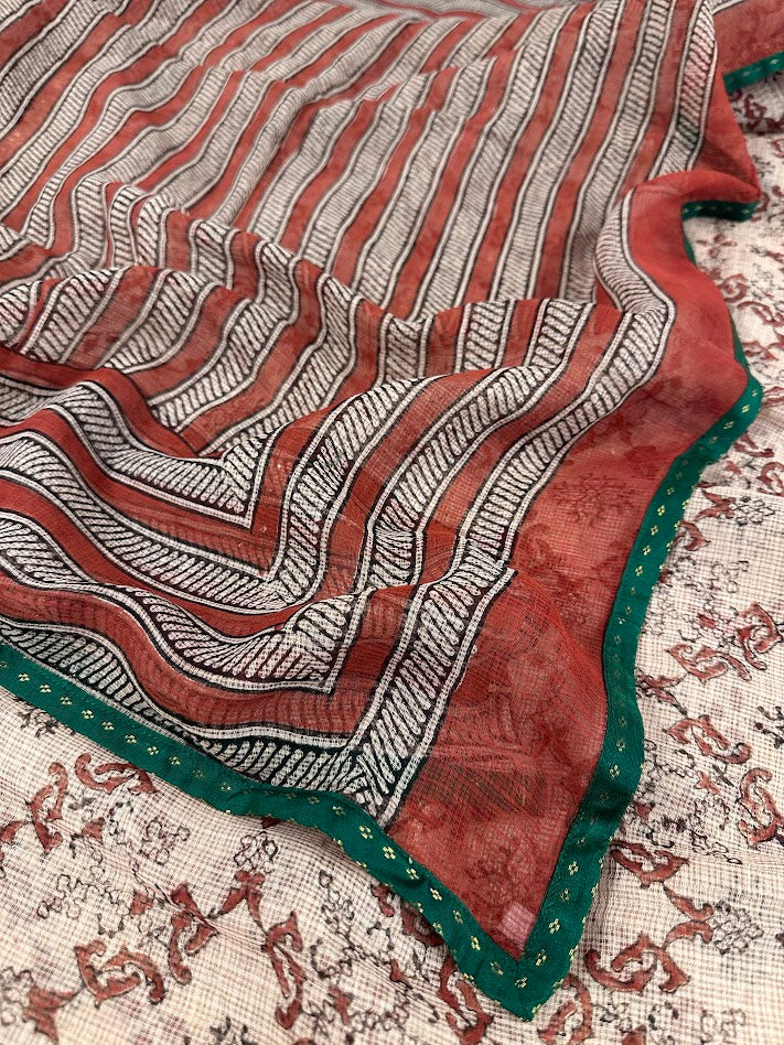 Mishrita Terracotta Striped Kota Saree