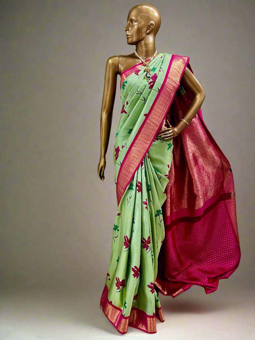 Mila korvai handprinted saree