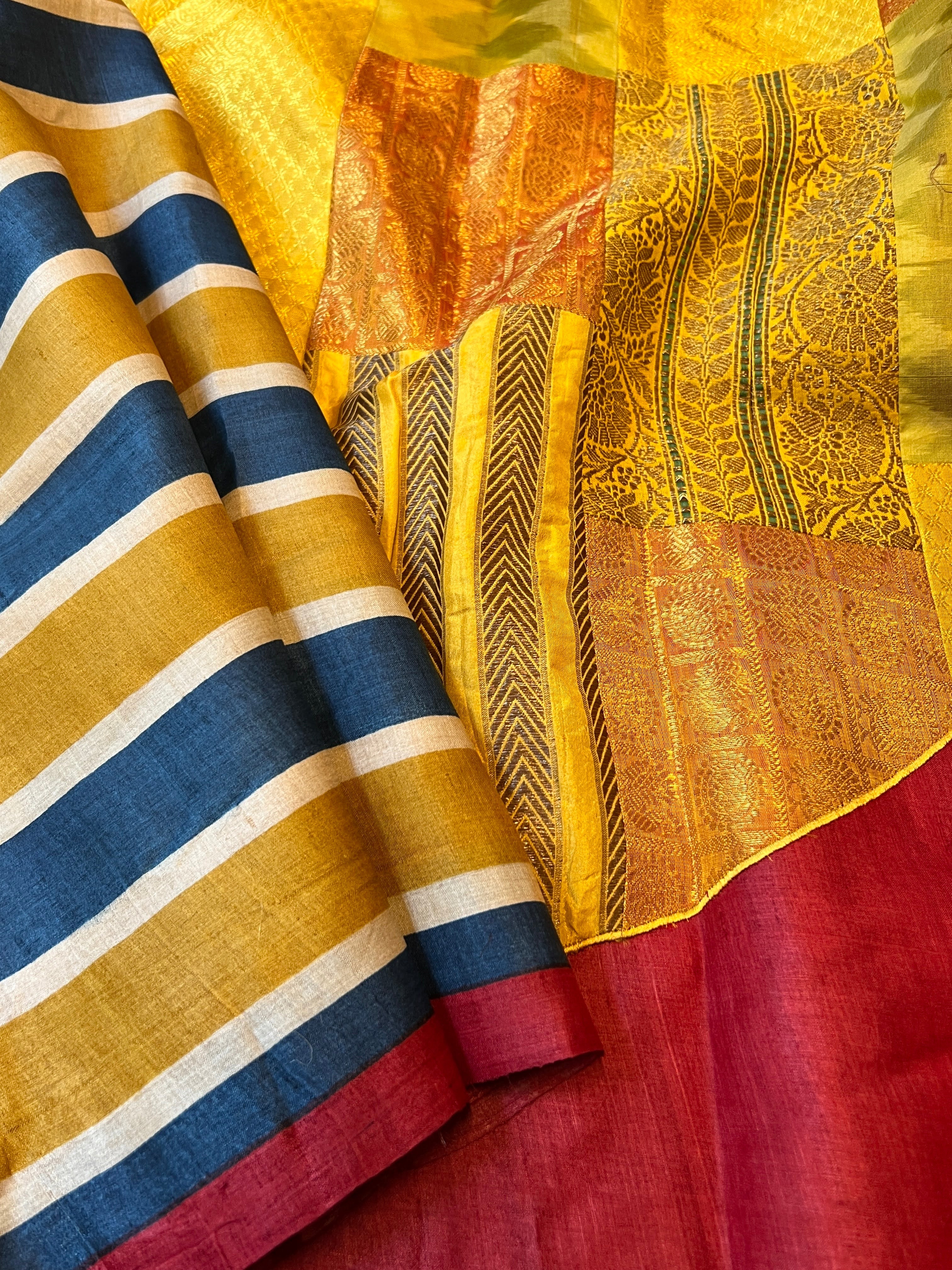 Love the Tussar and the up cycled fabric work on the pallu. Felt good wearing it. Lovely work on keeping the look minimal yet impactful
