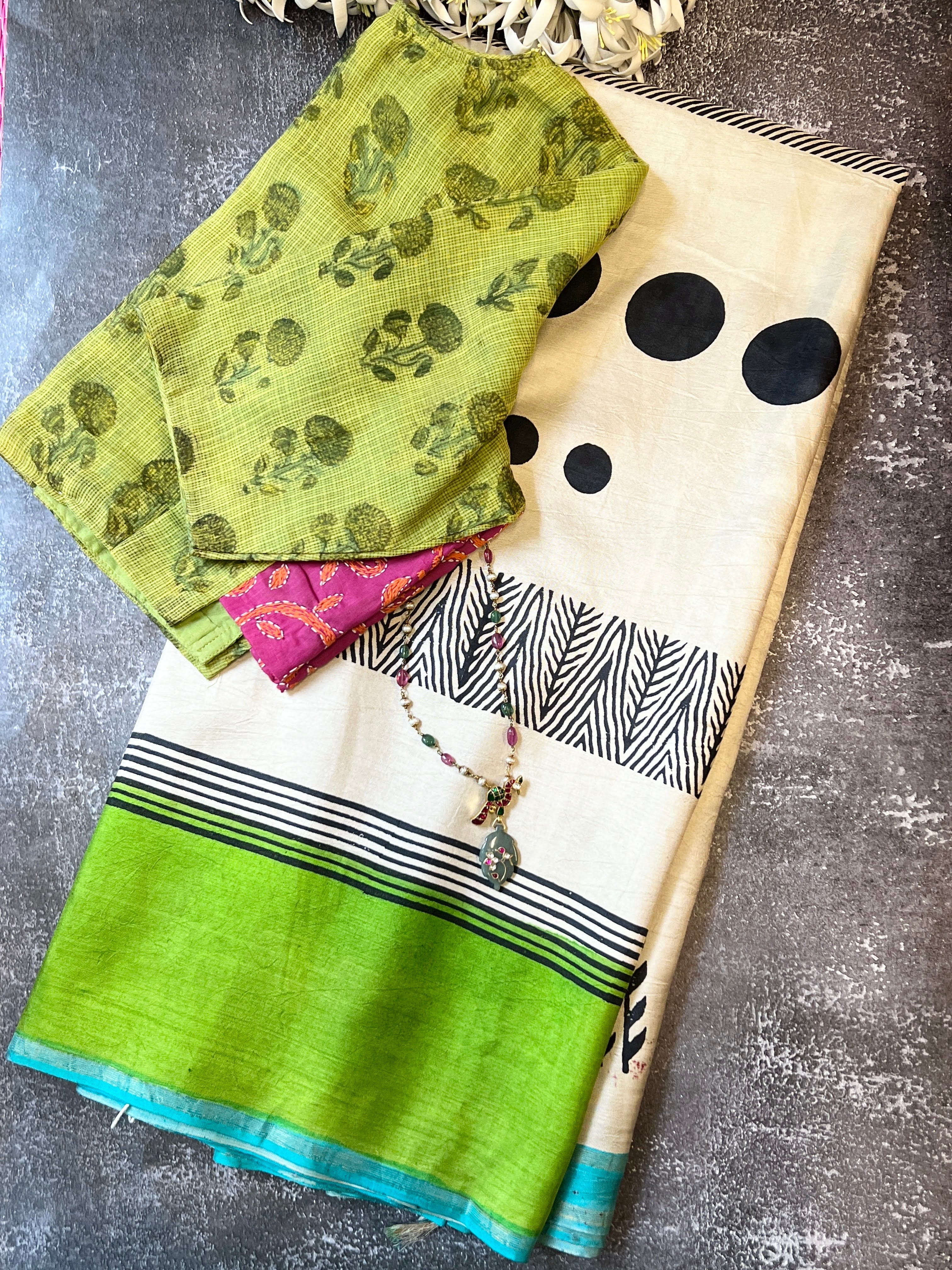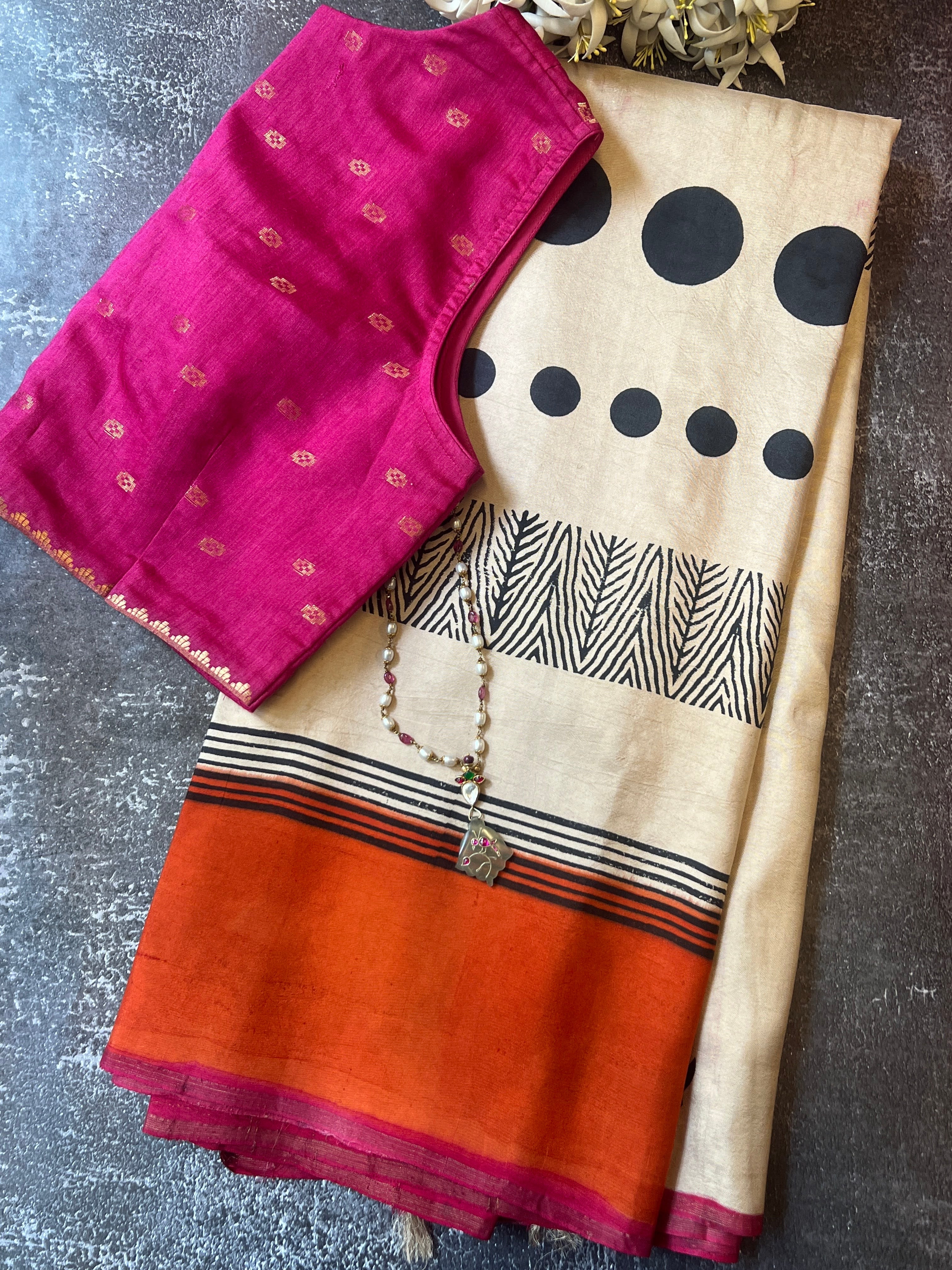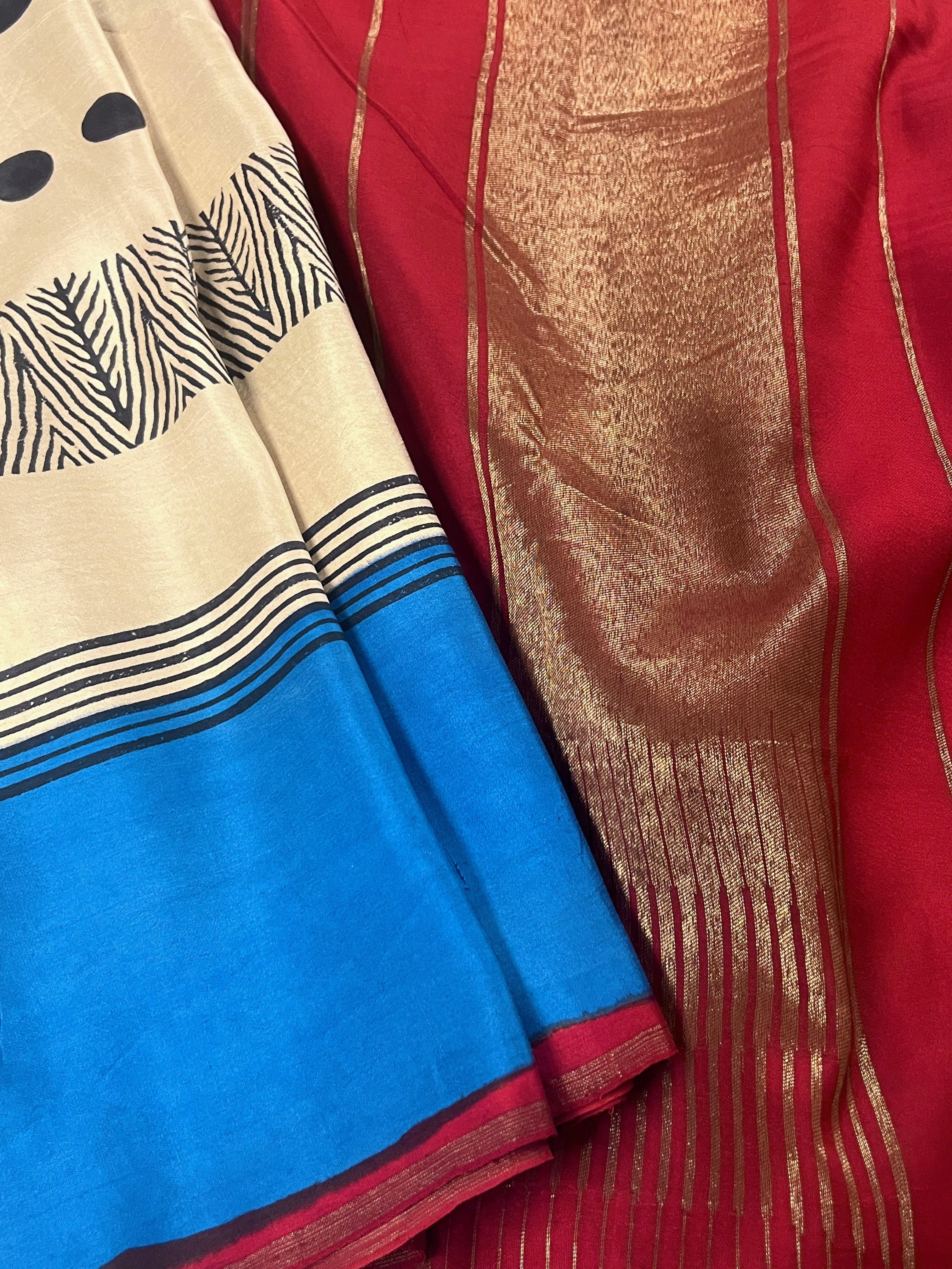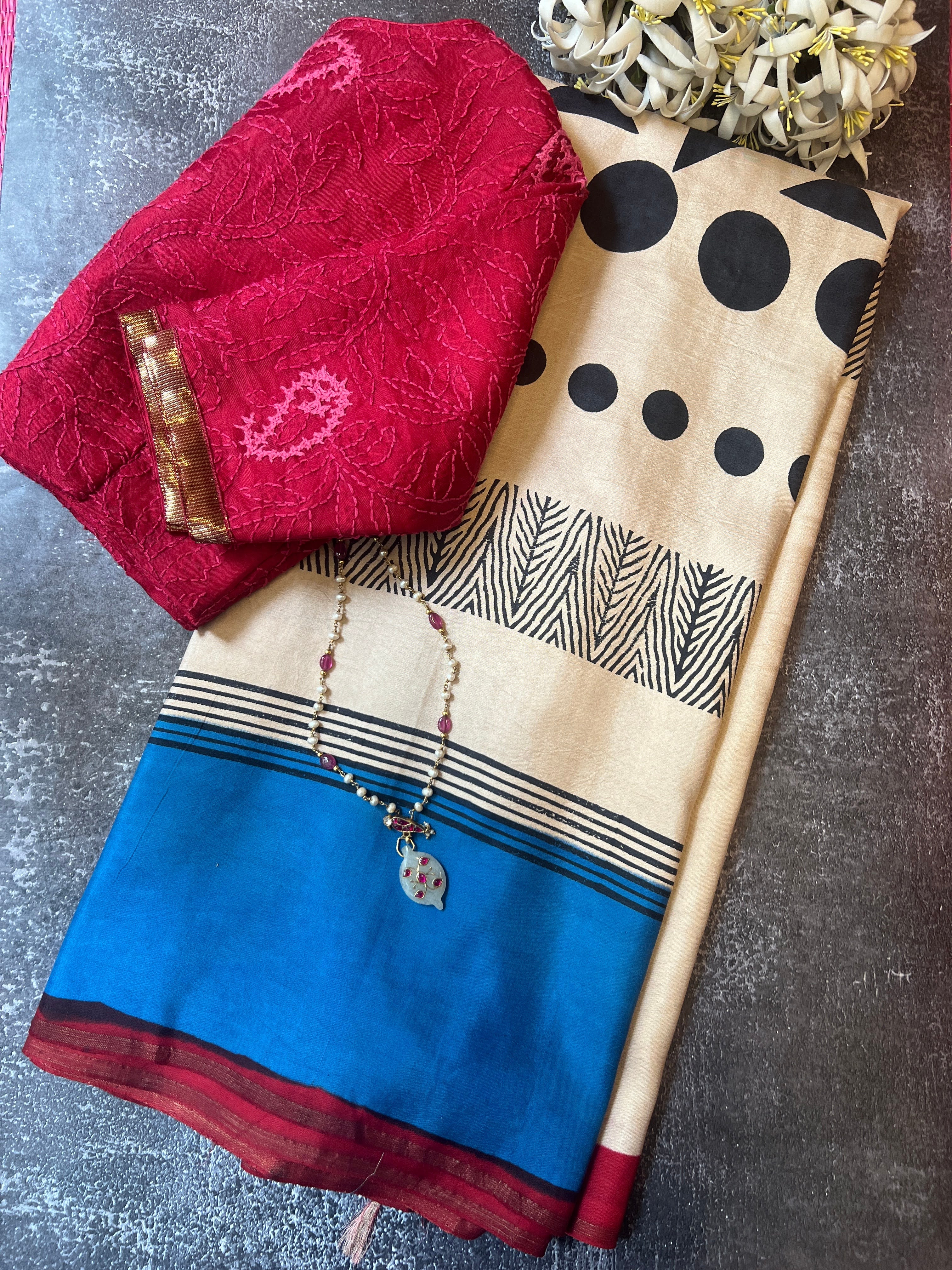 Contrast colour pallu and blouse piece