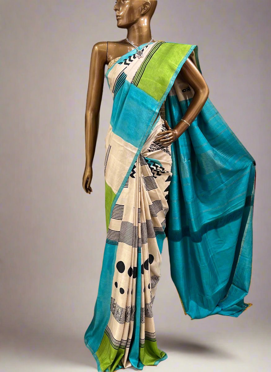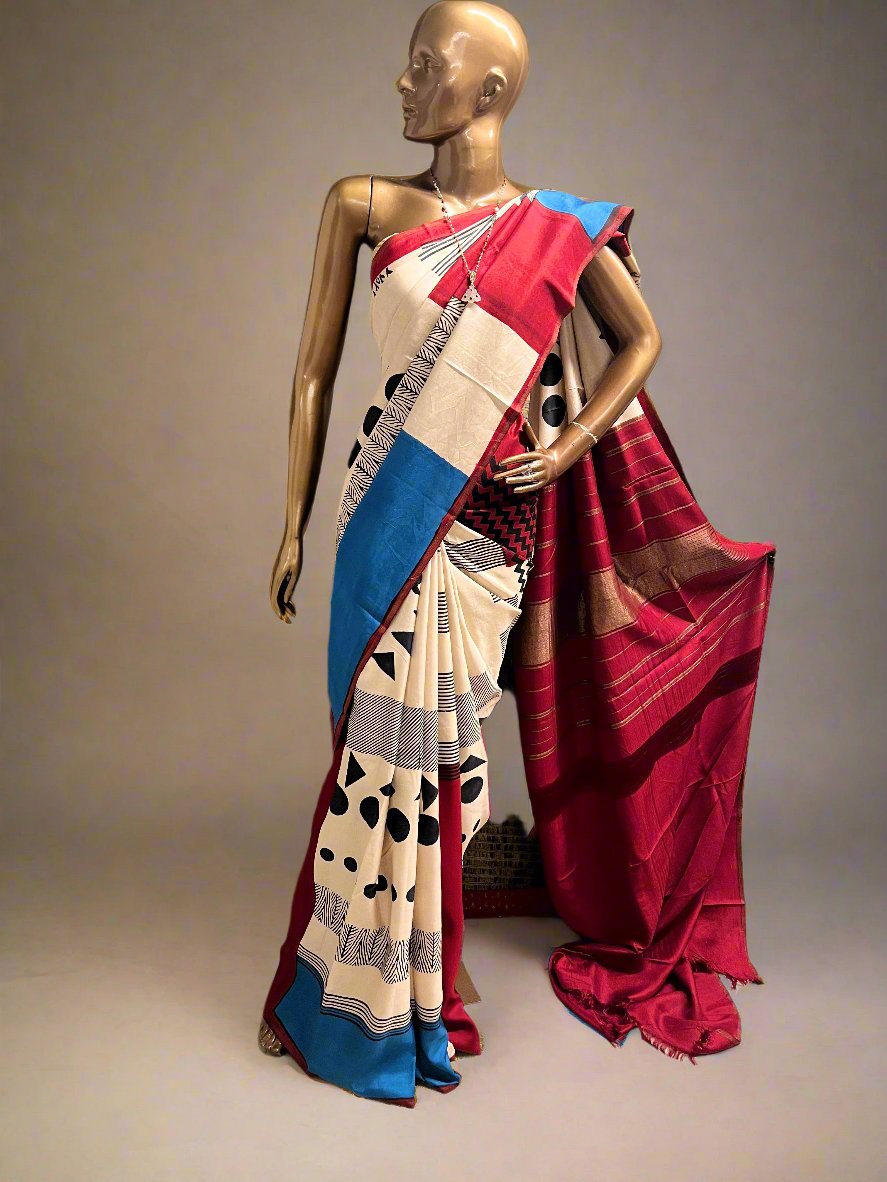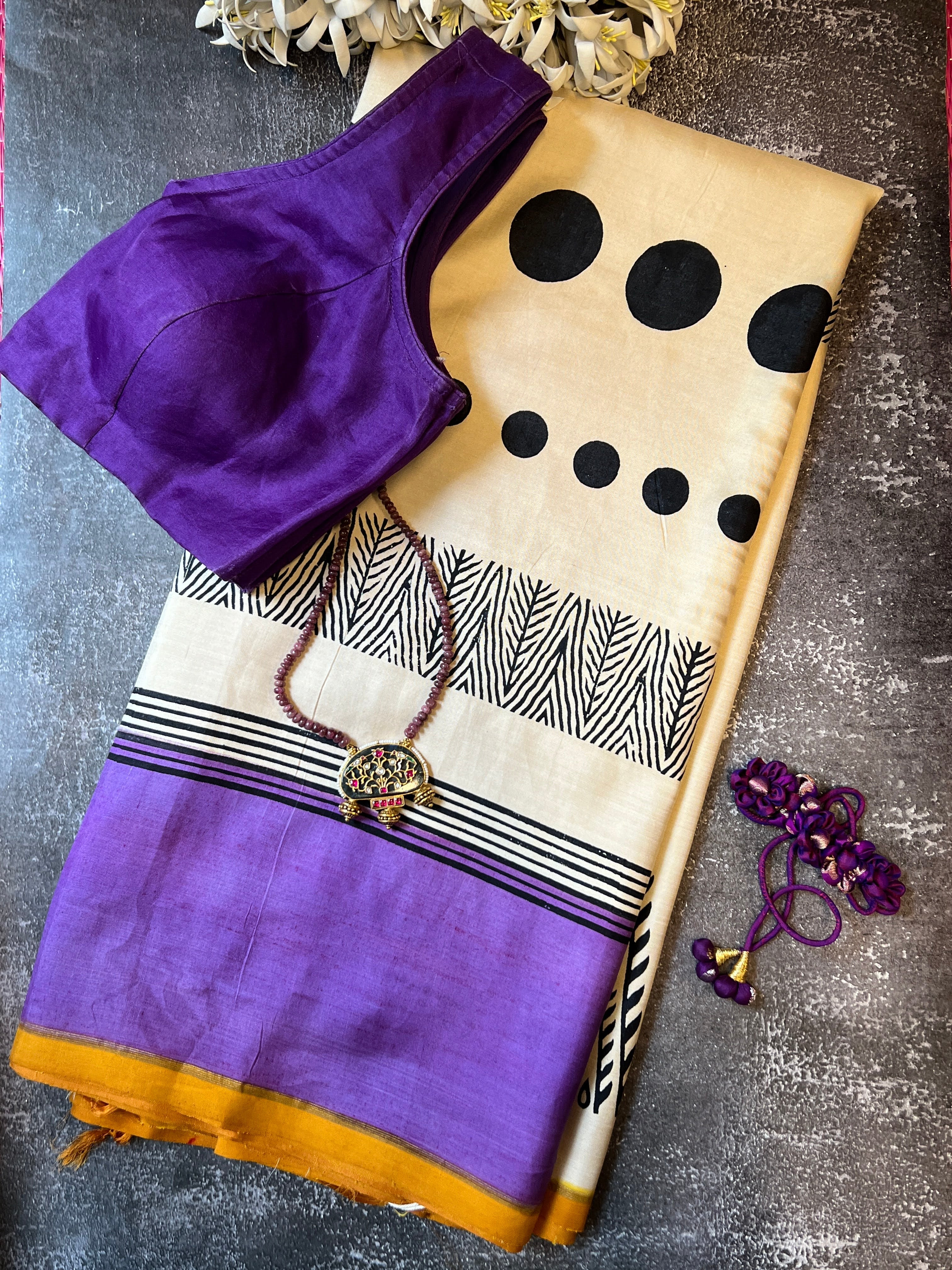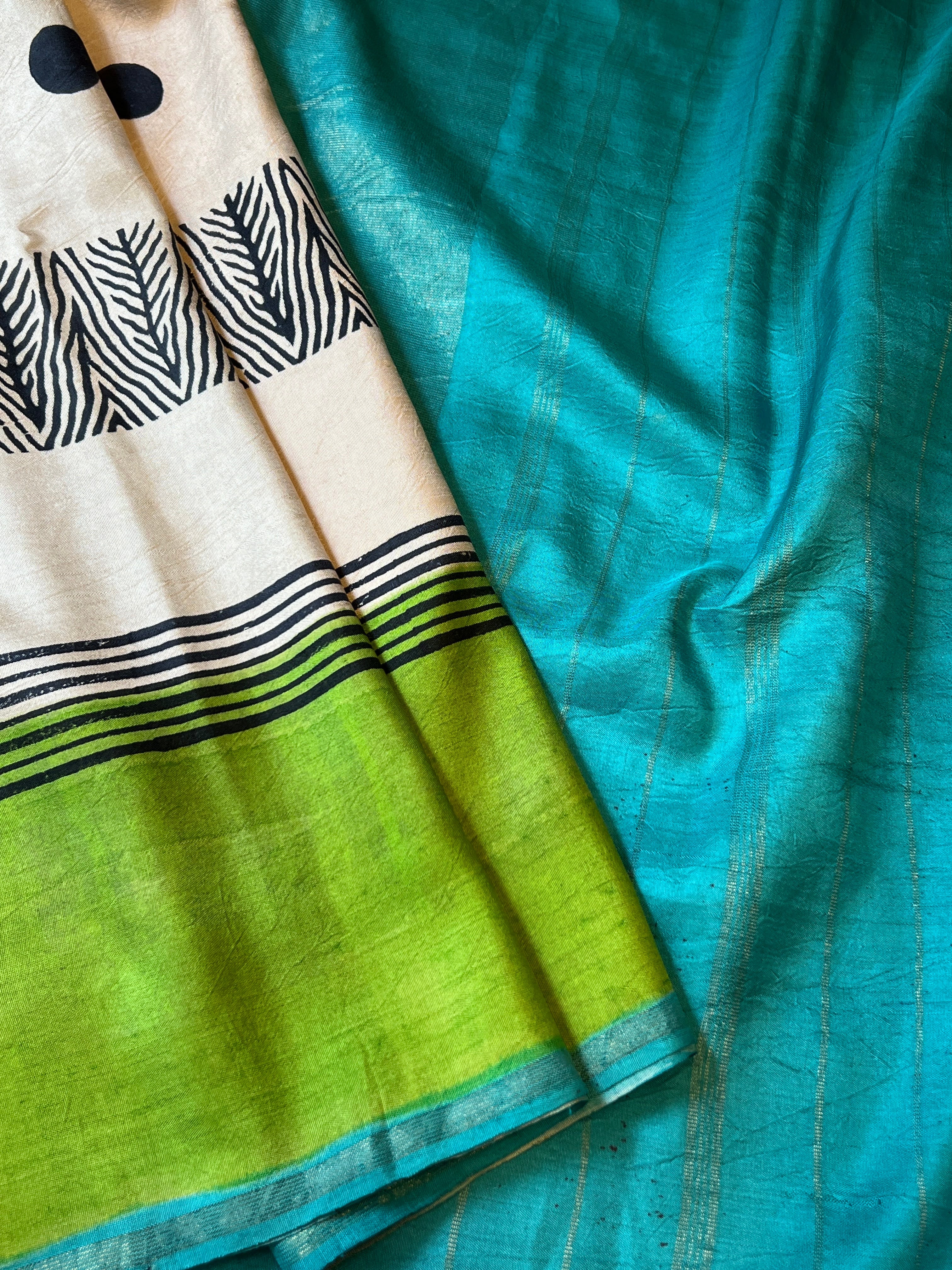 Contrast colour pallu and blouse piece