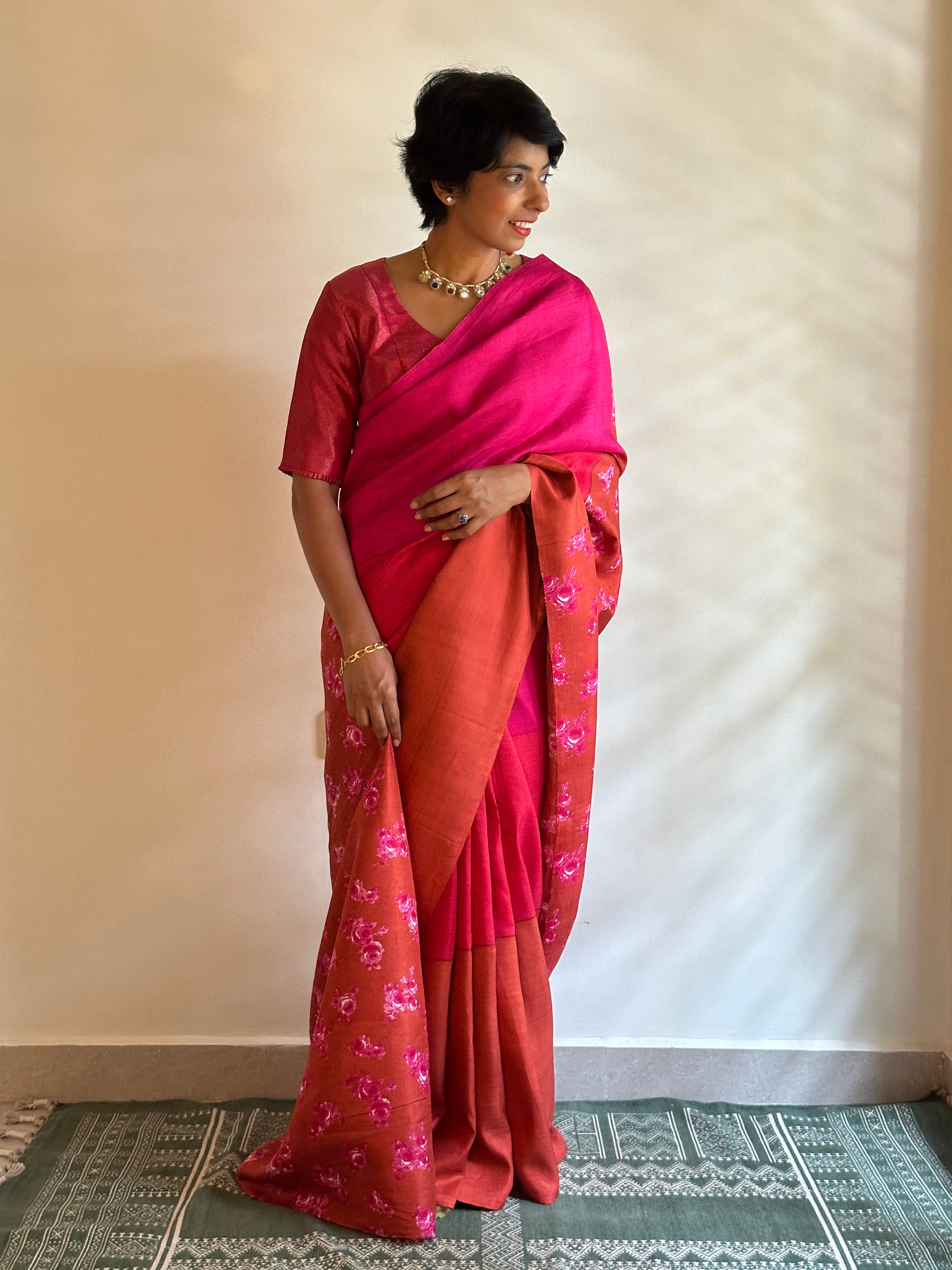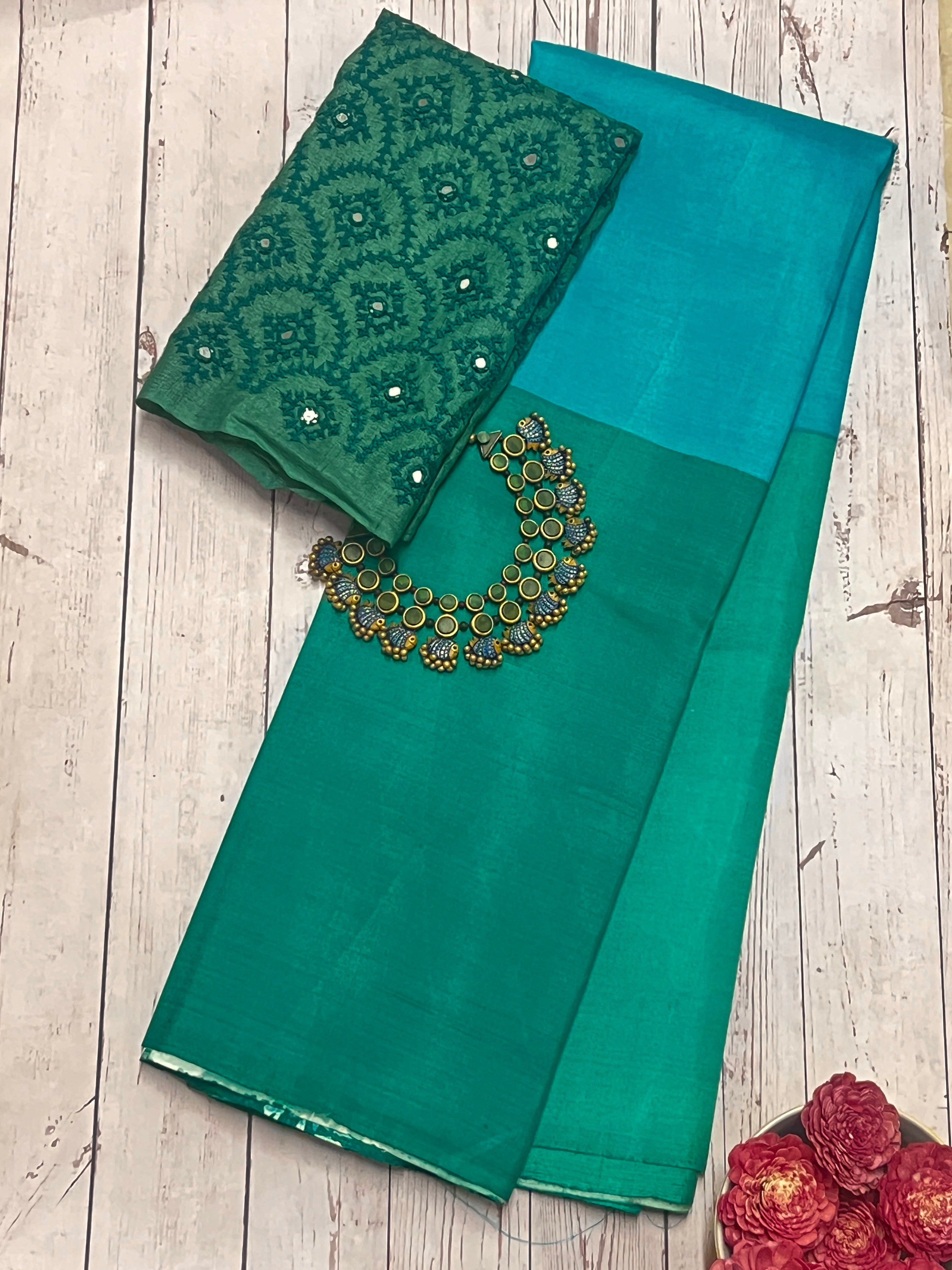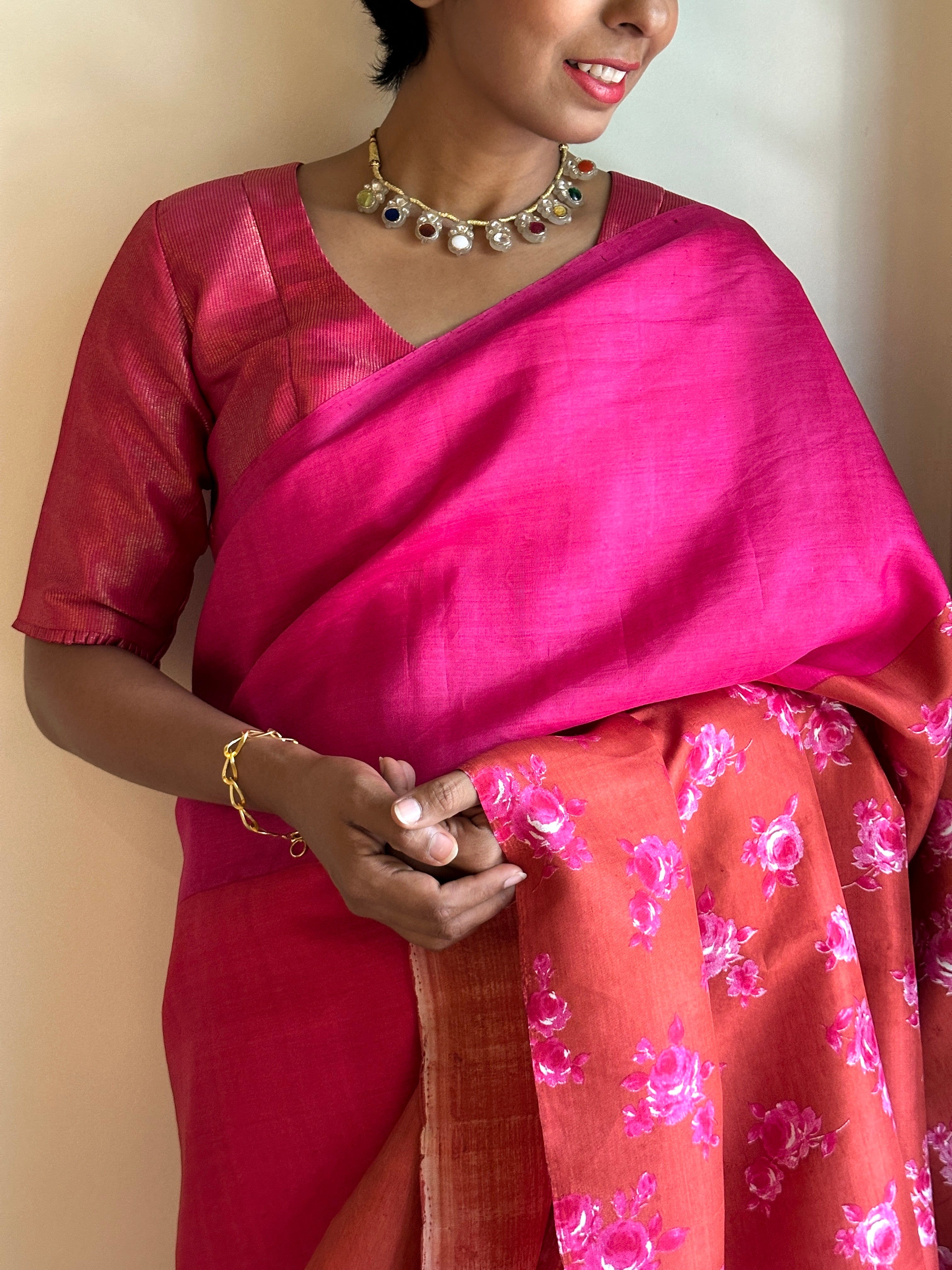 - Shaded body and floral pallu and blouse piece