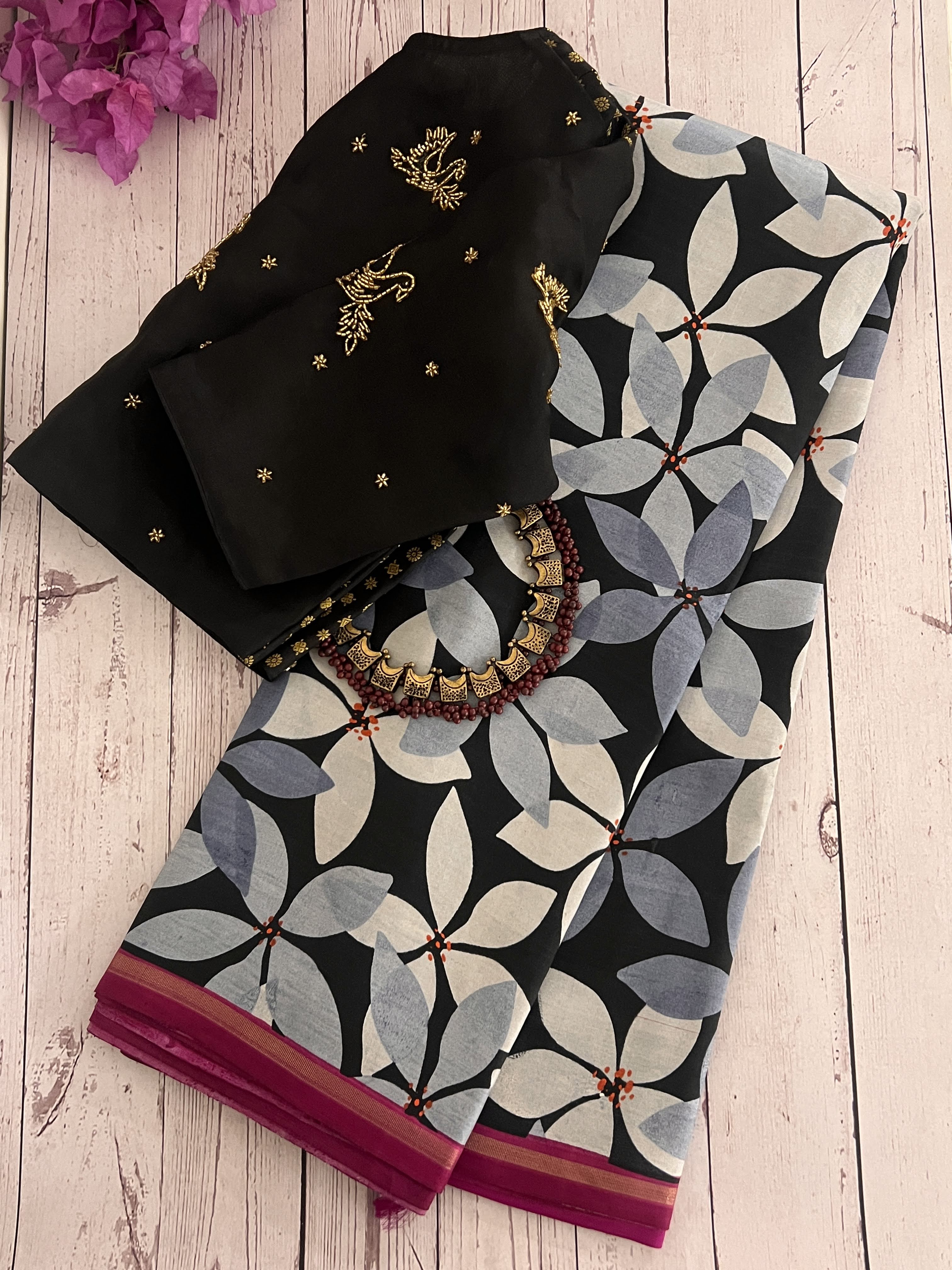 - Pink pallu and blouse piece