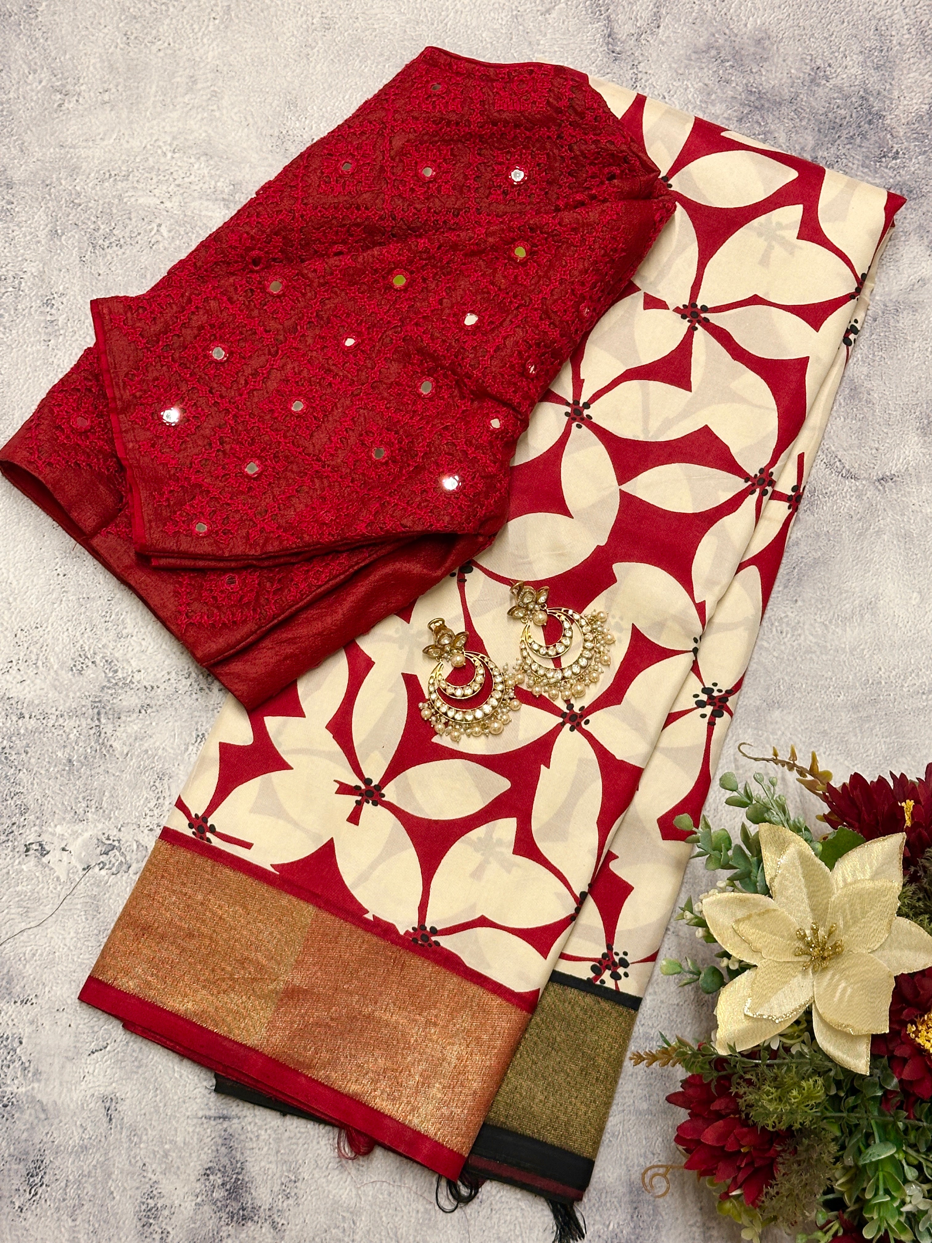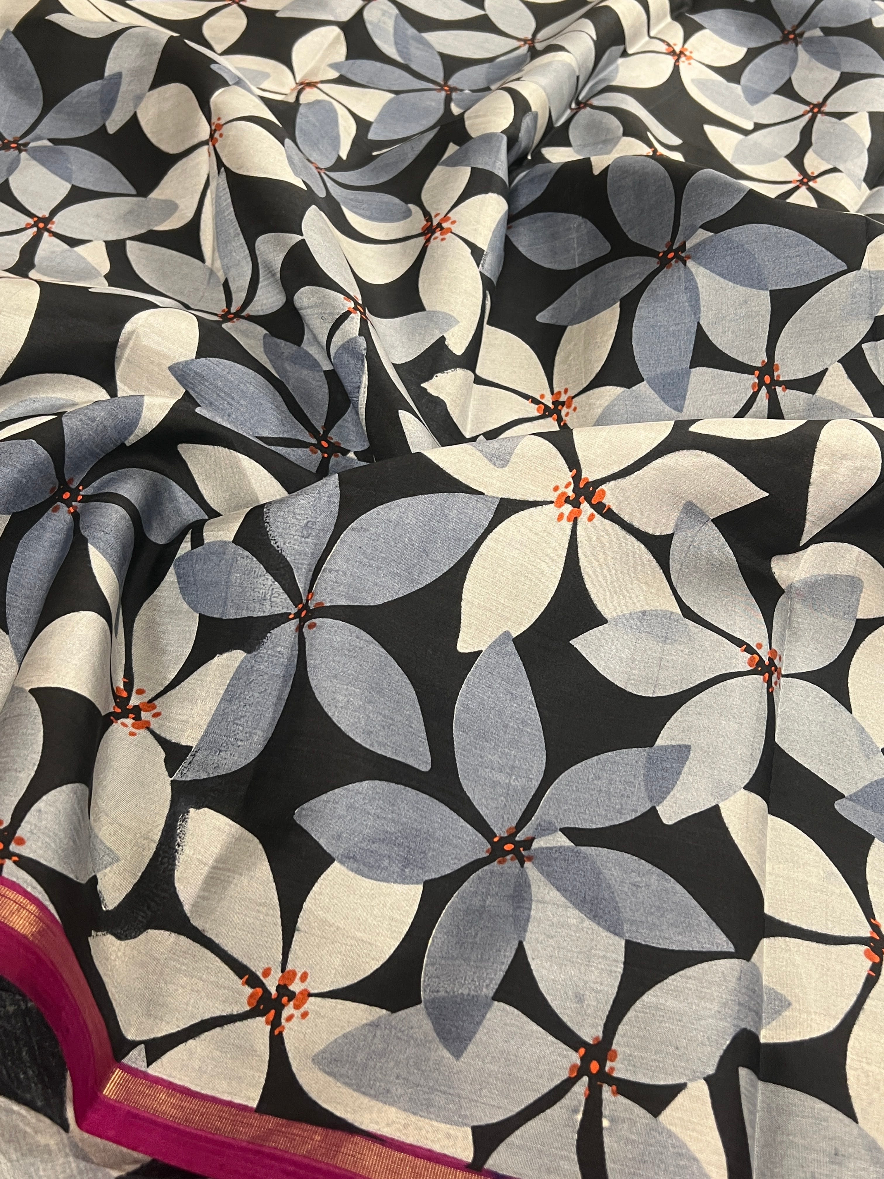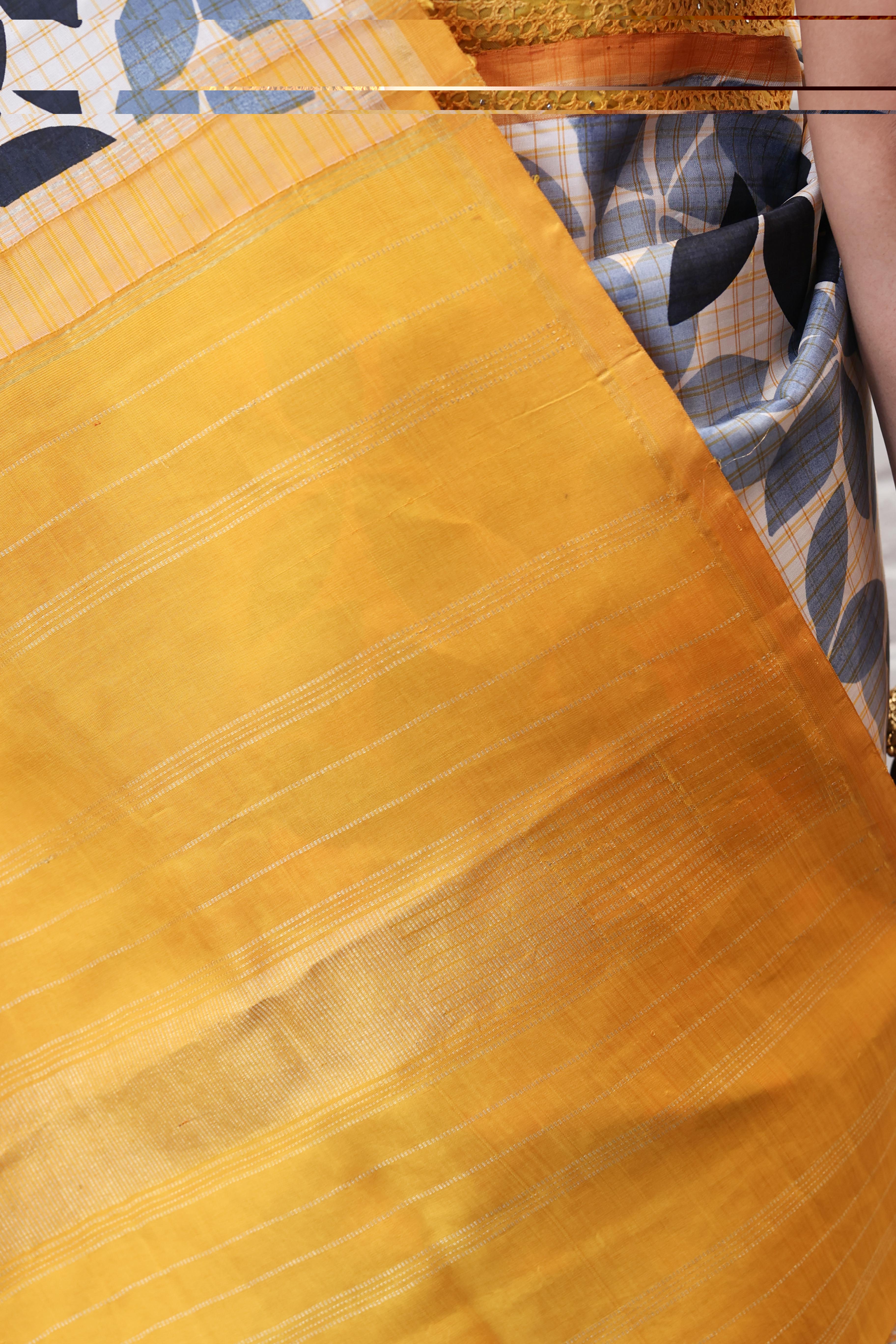 - Pure zari on the pallu and border
