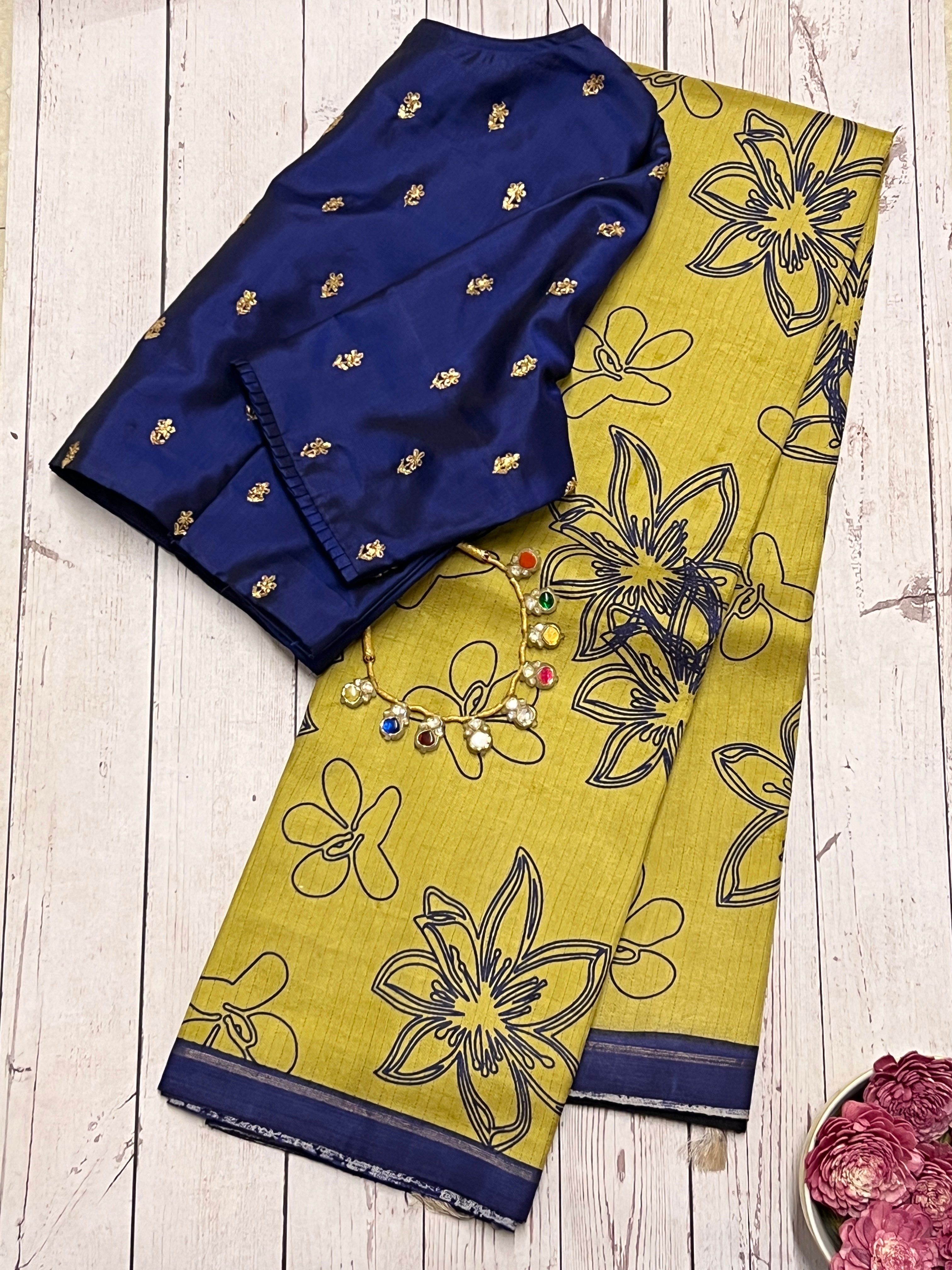 - Contrast pallu and blouse piece
