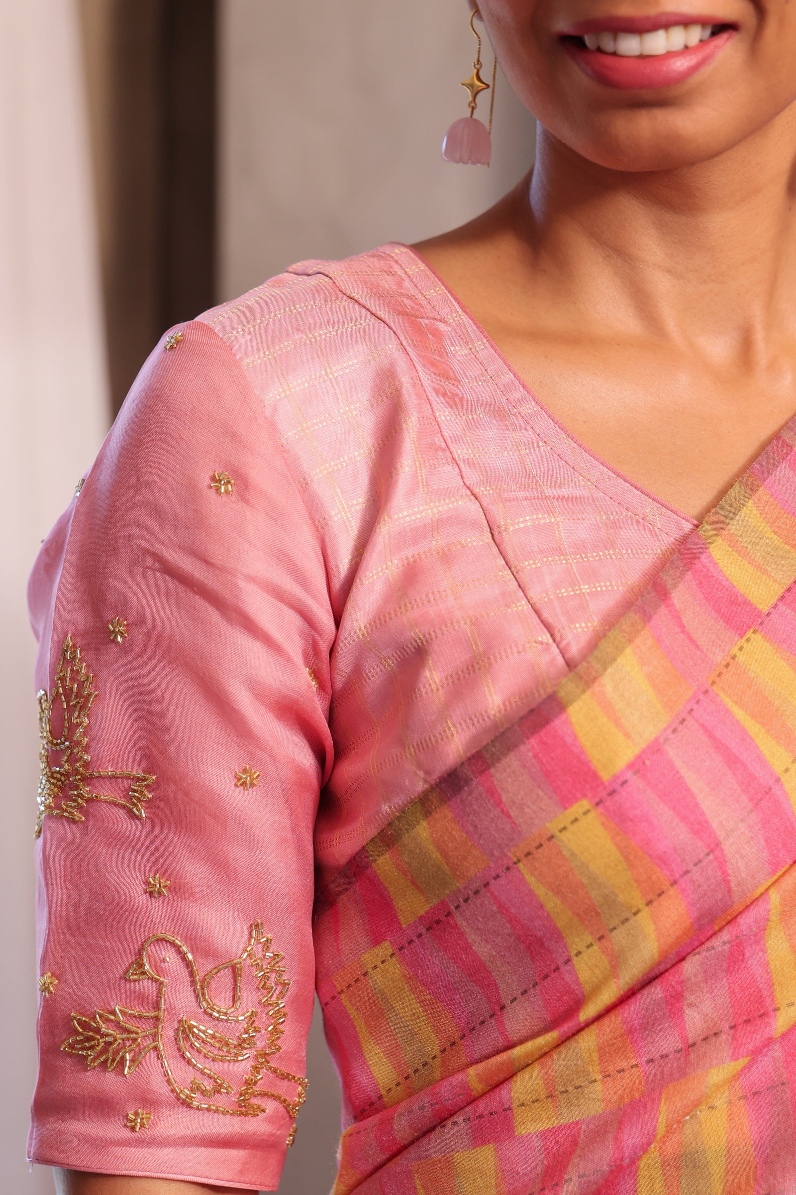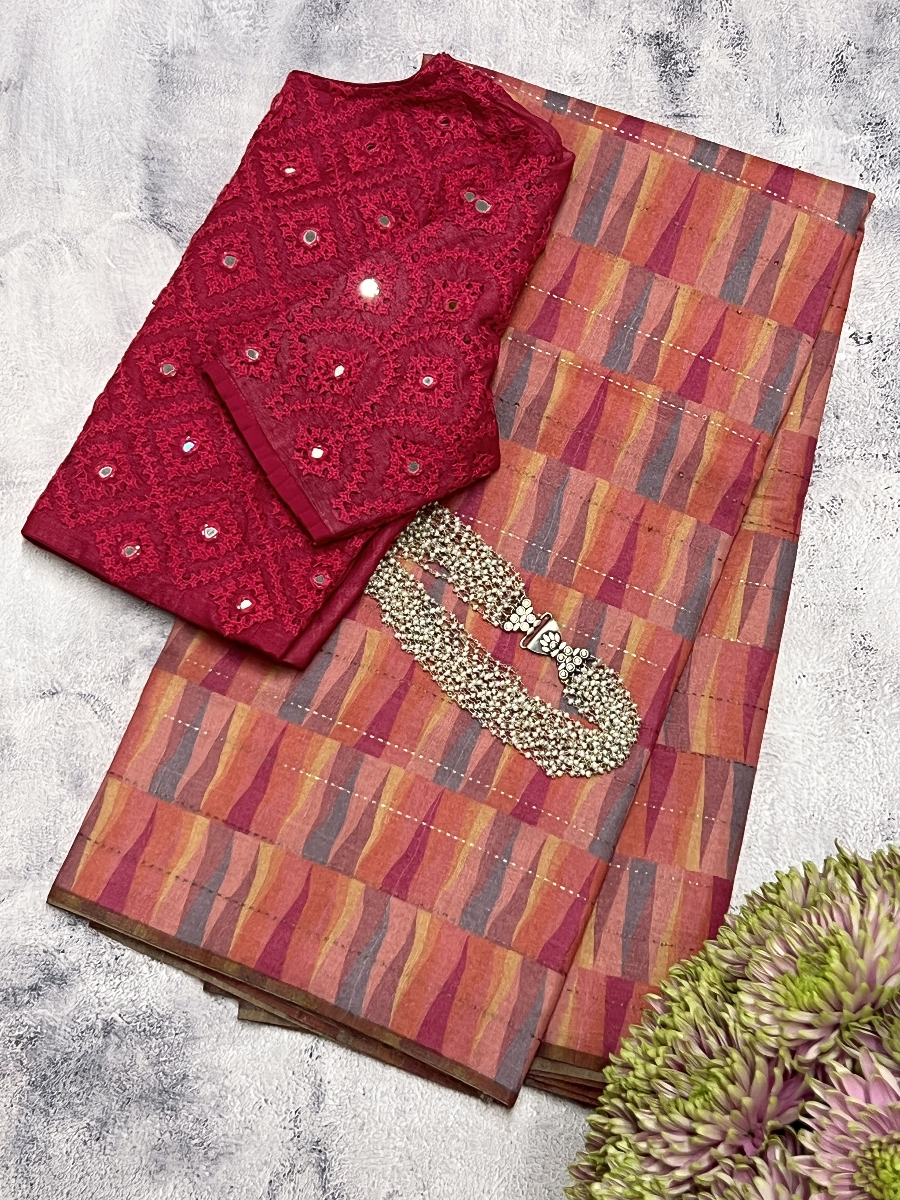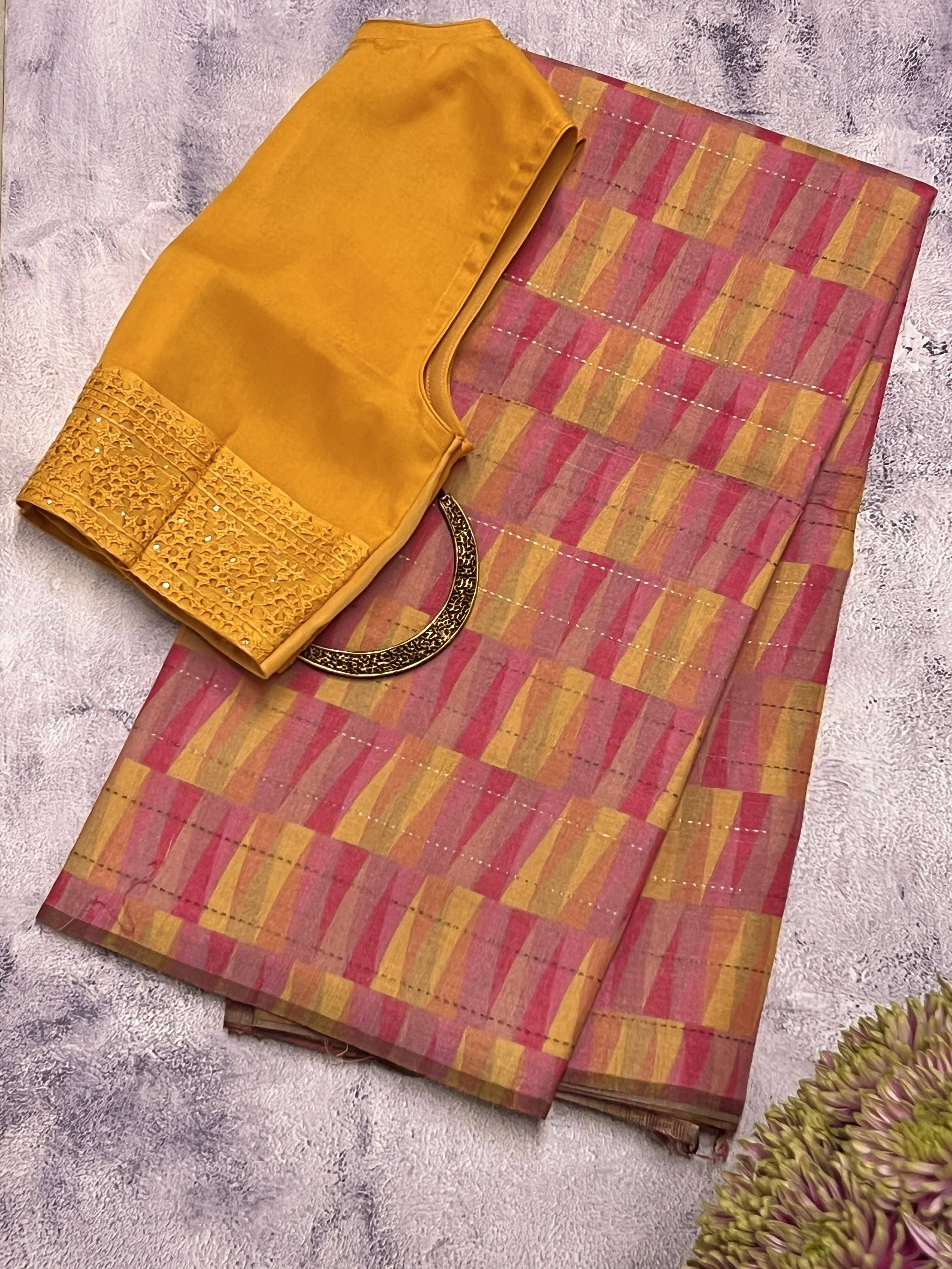 - Zari lined solid coloured blouse piece