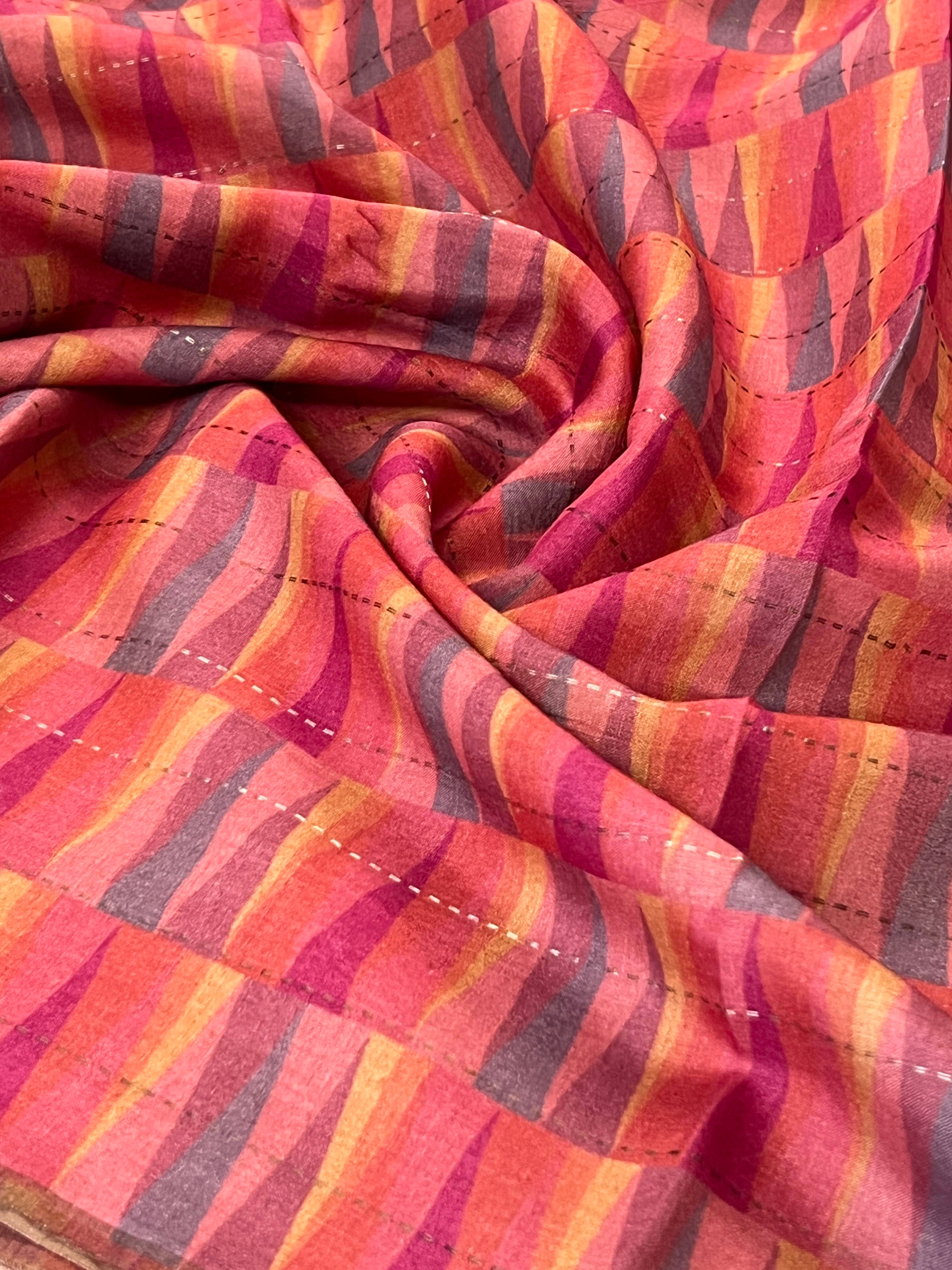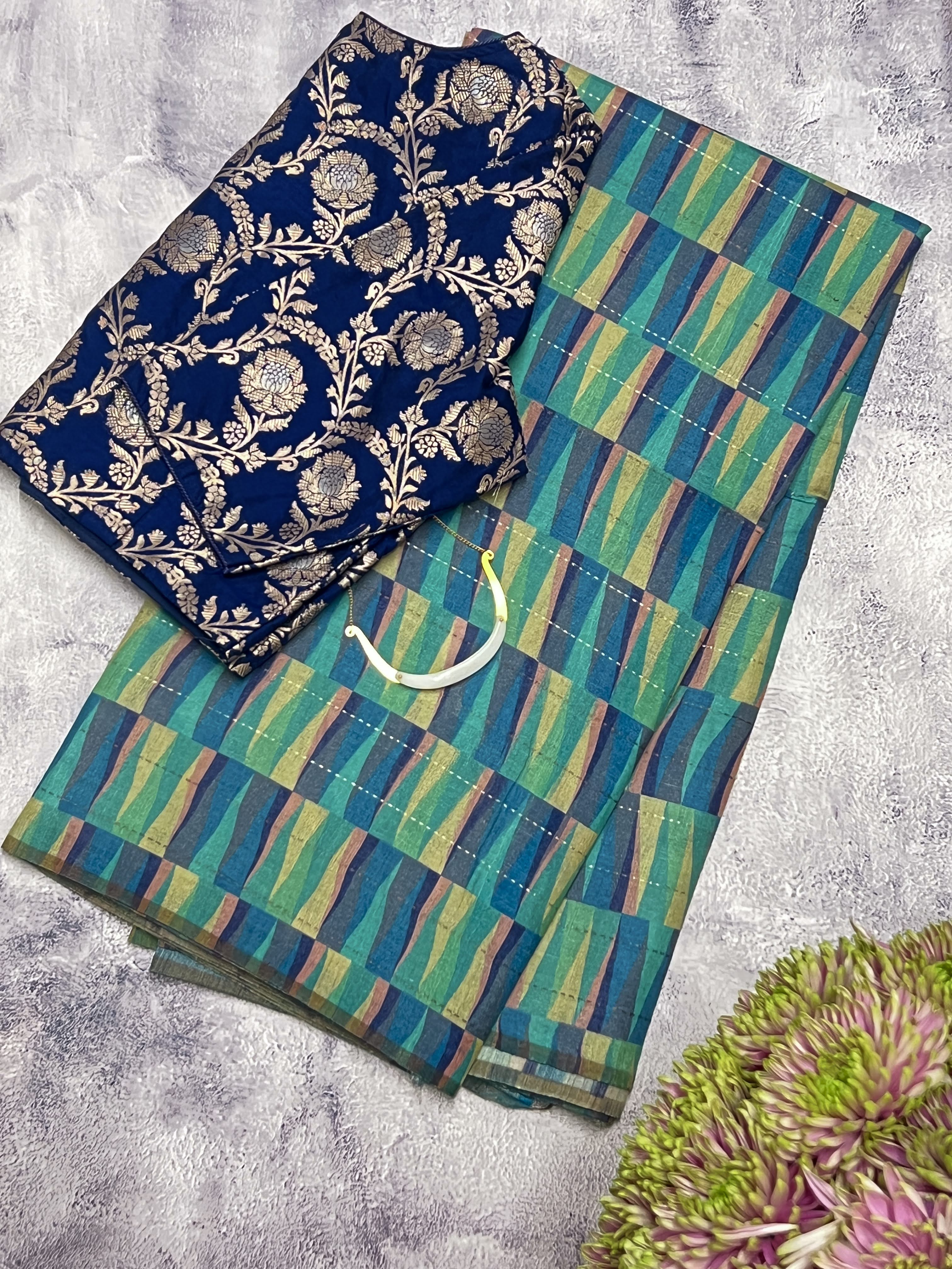 Ombre printed tussar saree