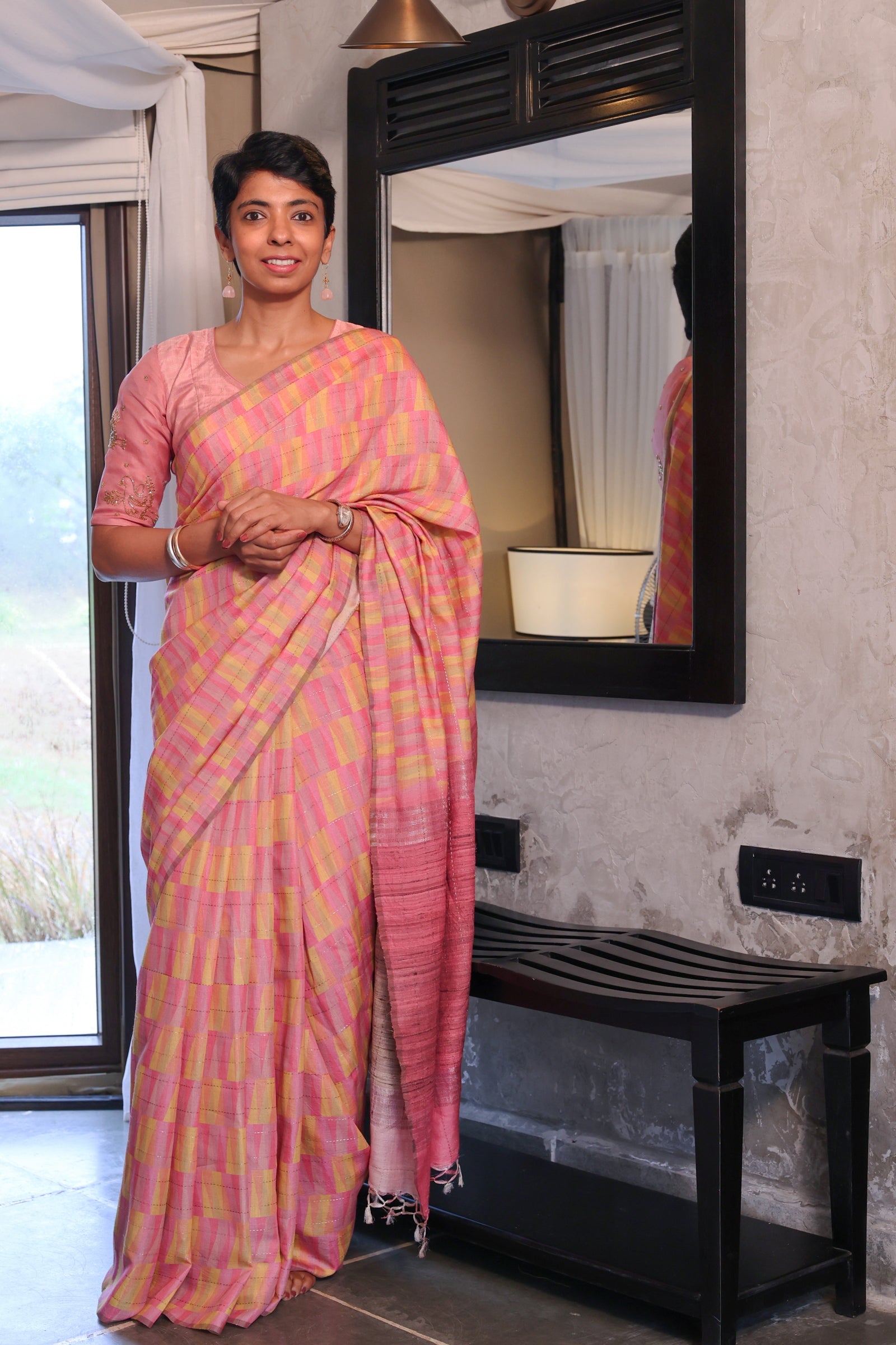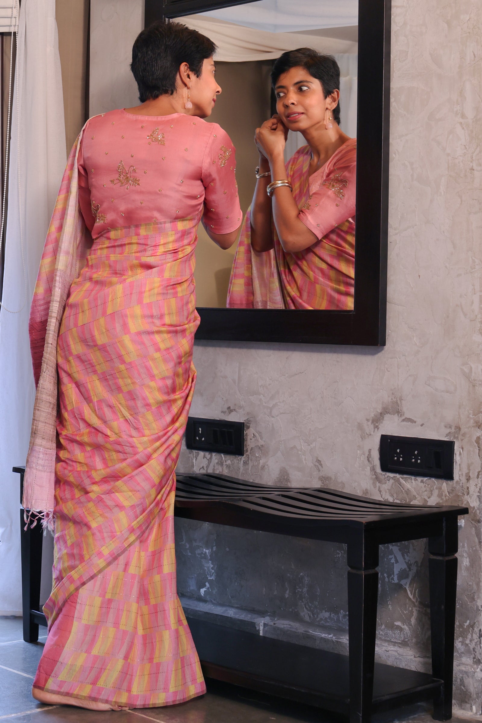 - Zari lined pallu