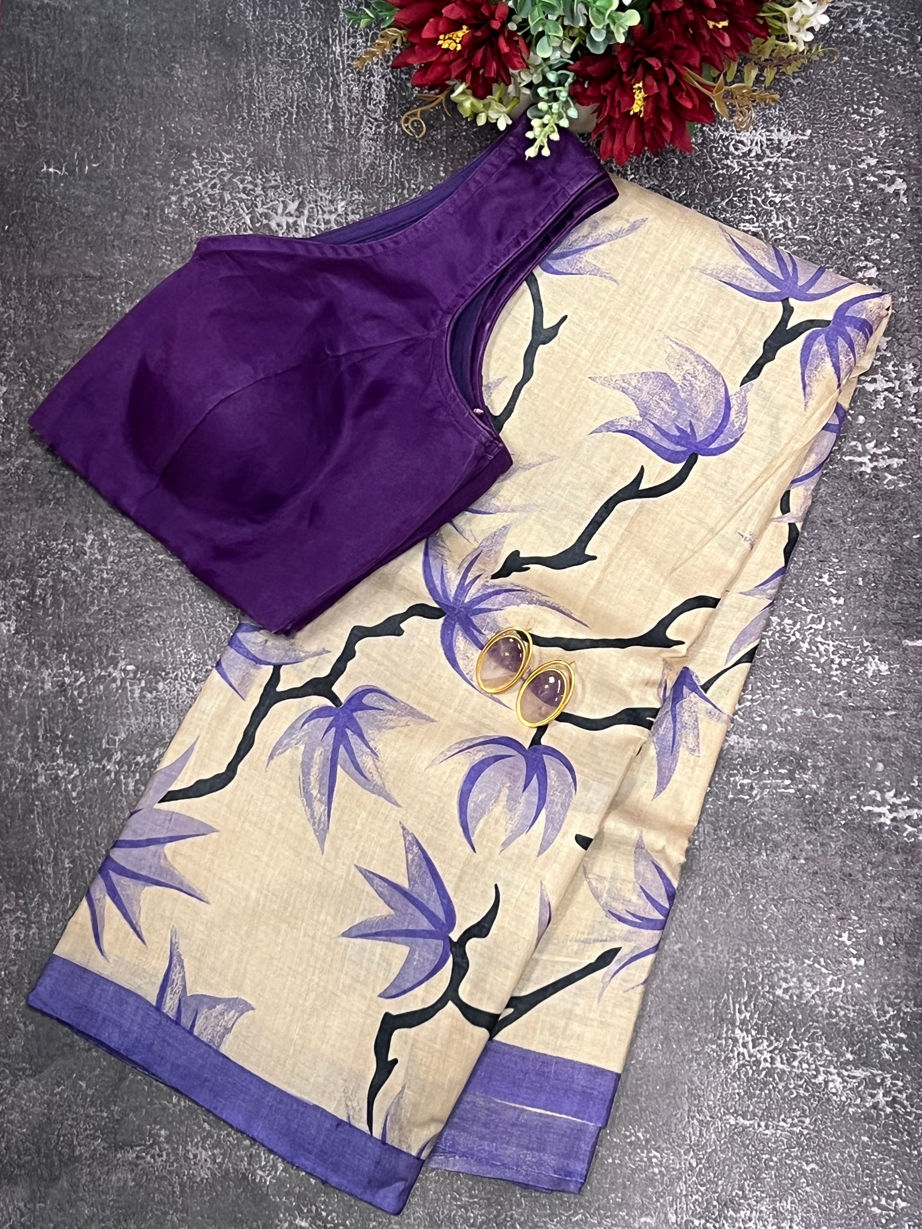 - Contrast pallu and blouse piece