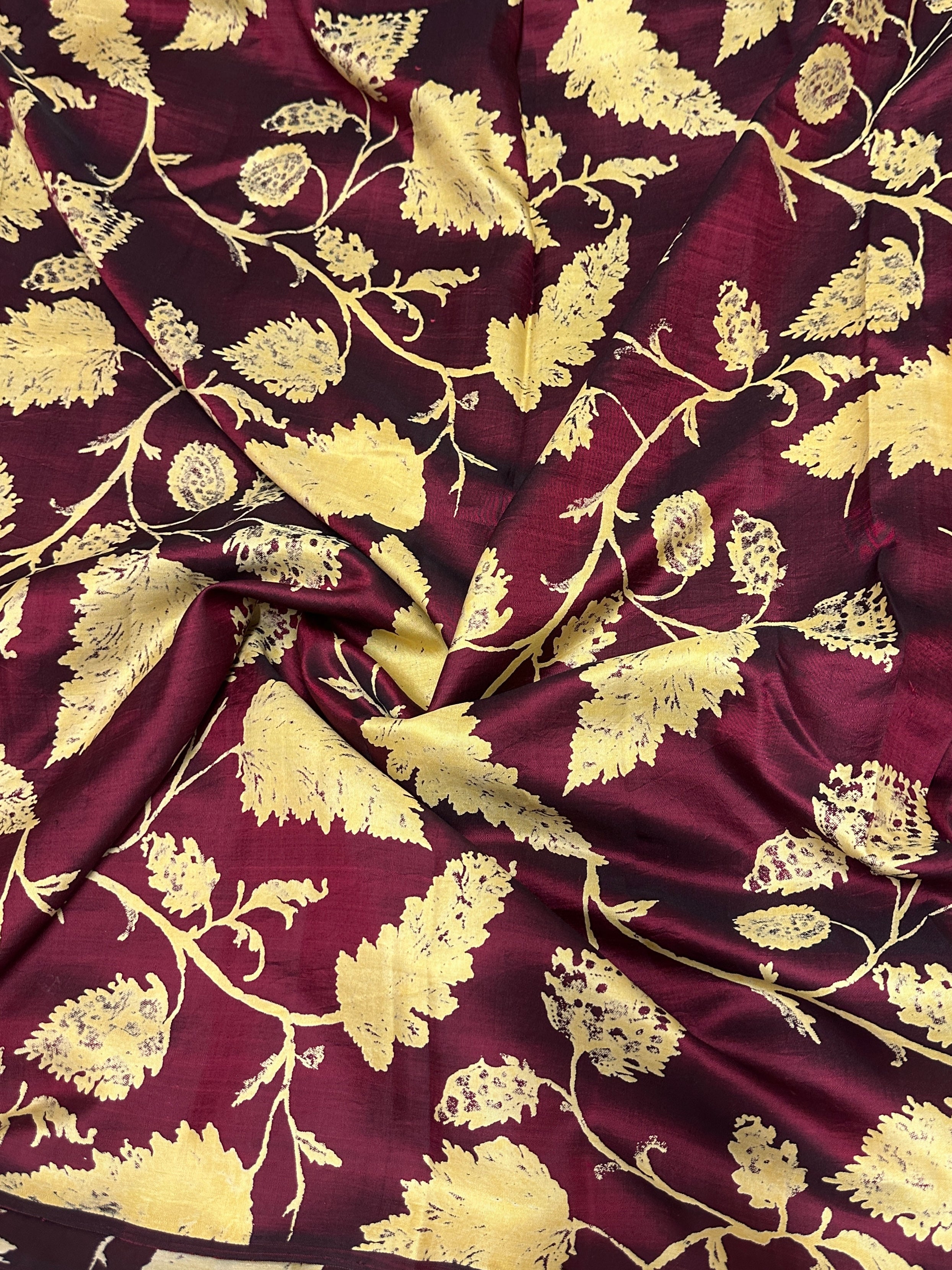 Mila maple leaf printed kanchi silk fabric