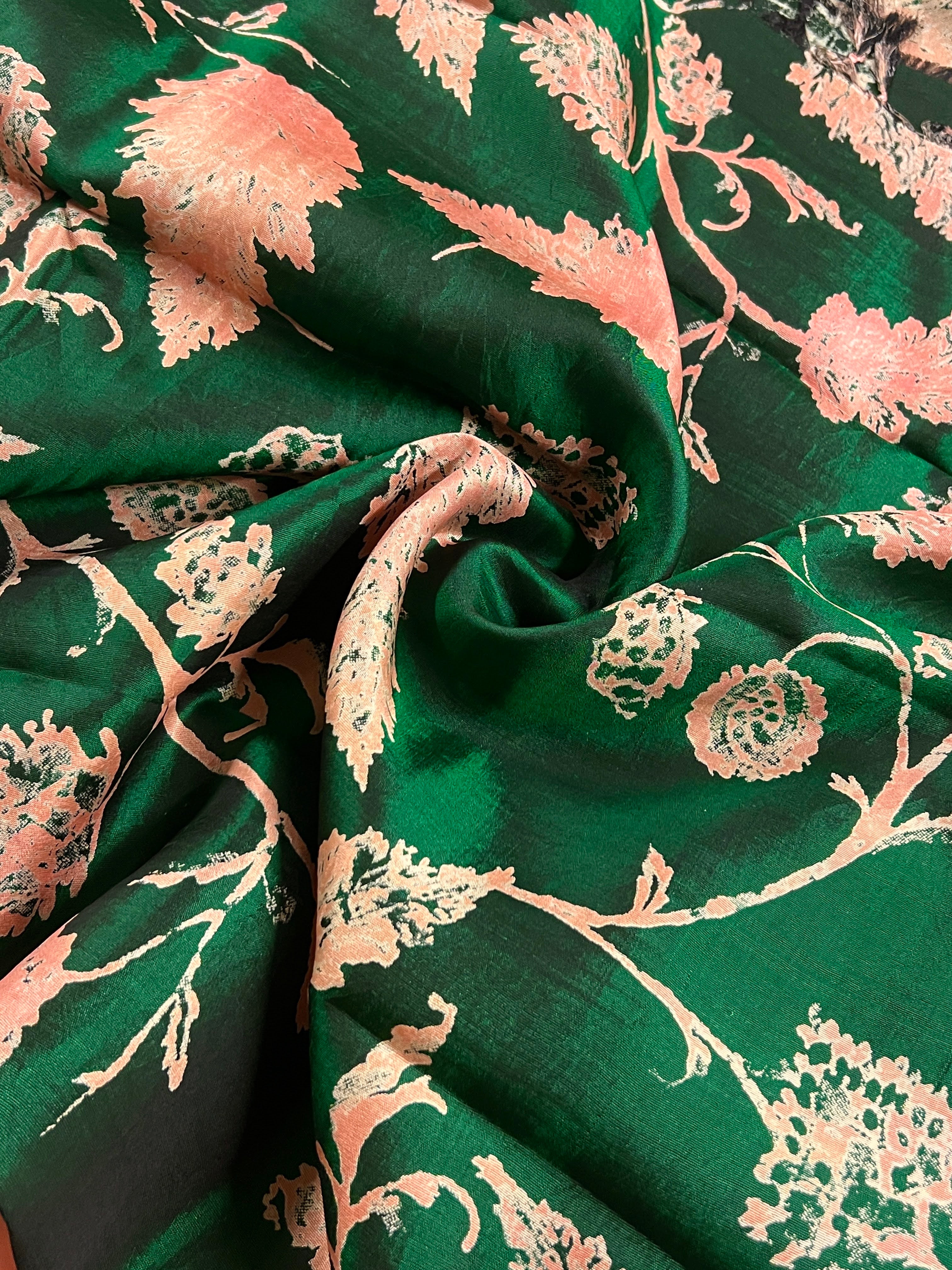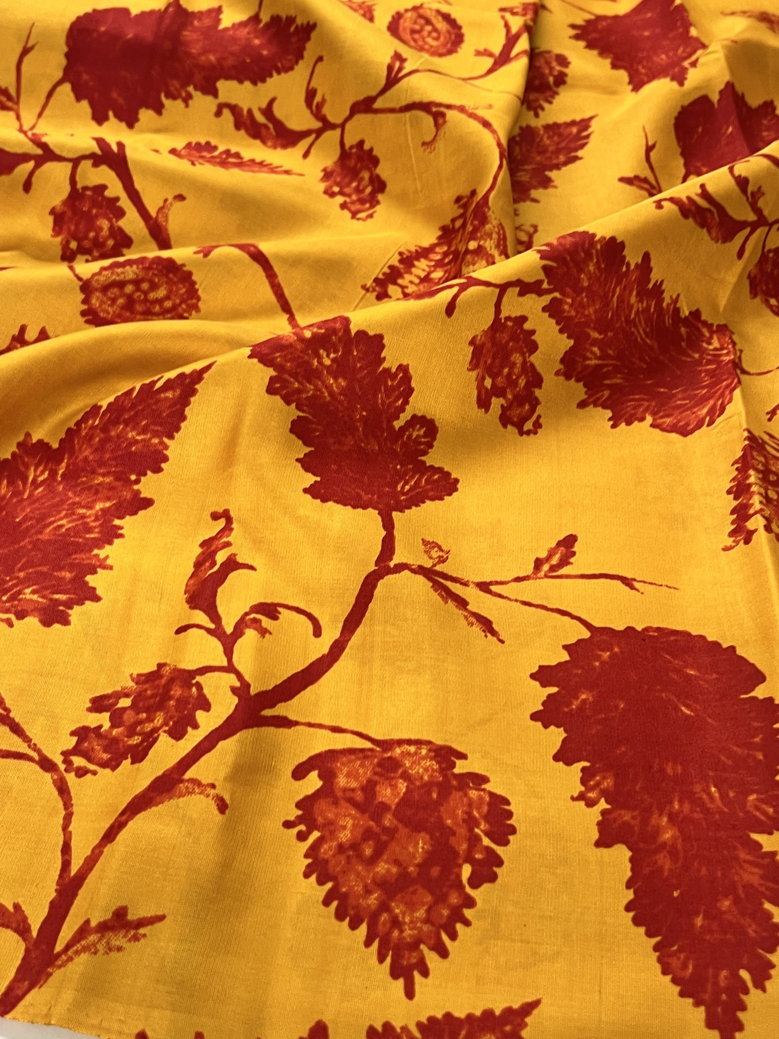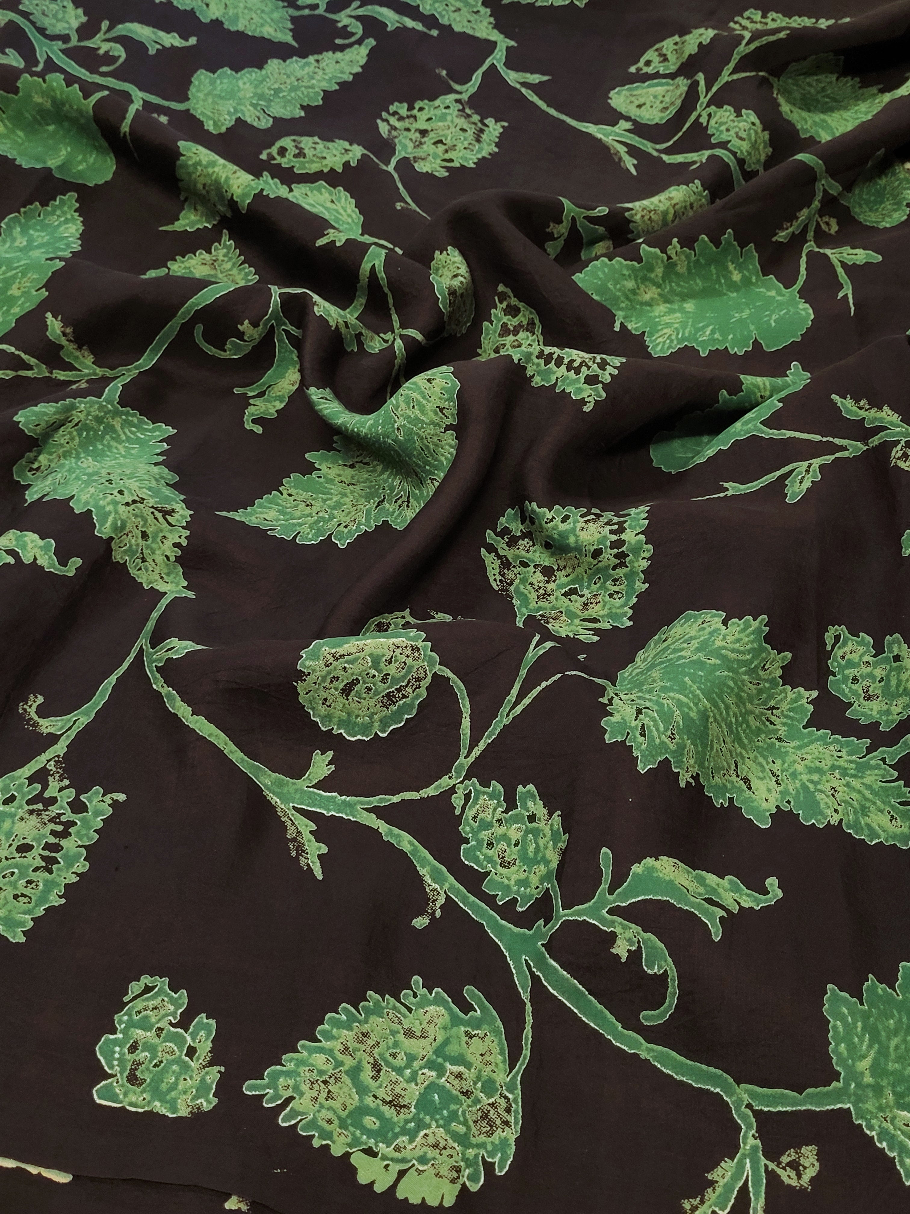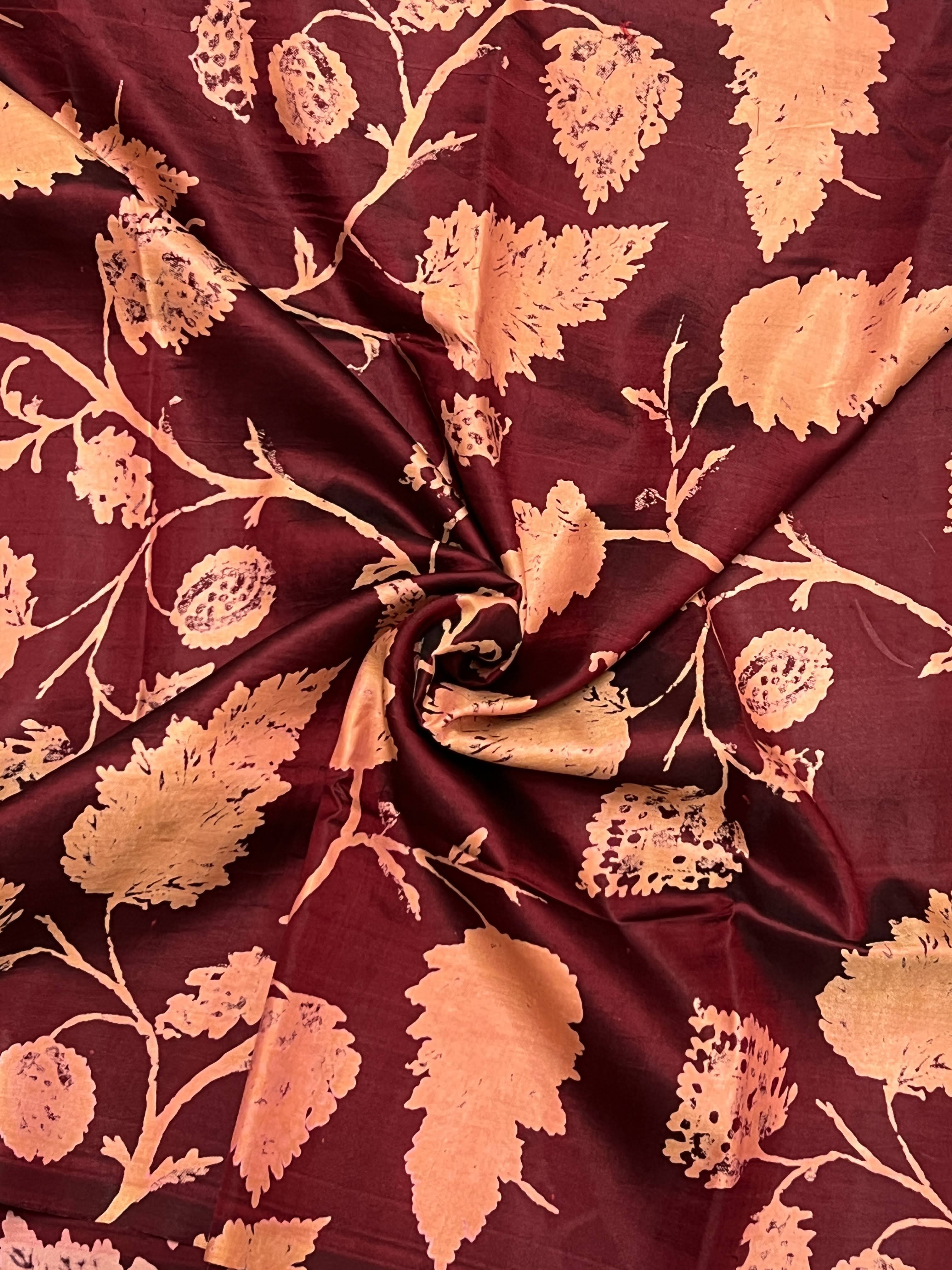 Mila maple leaf printed kanchi silk fabric
