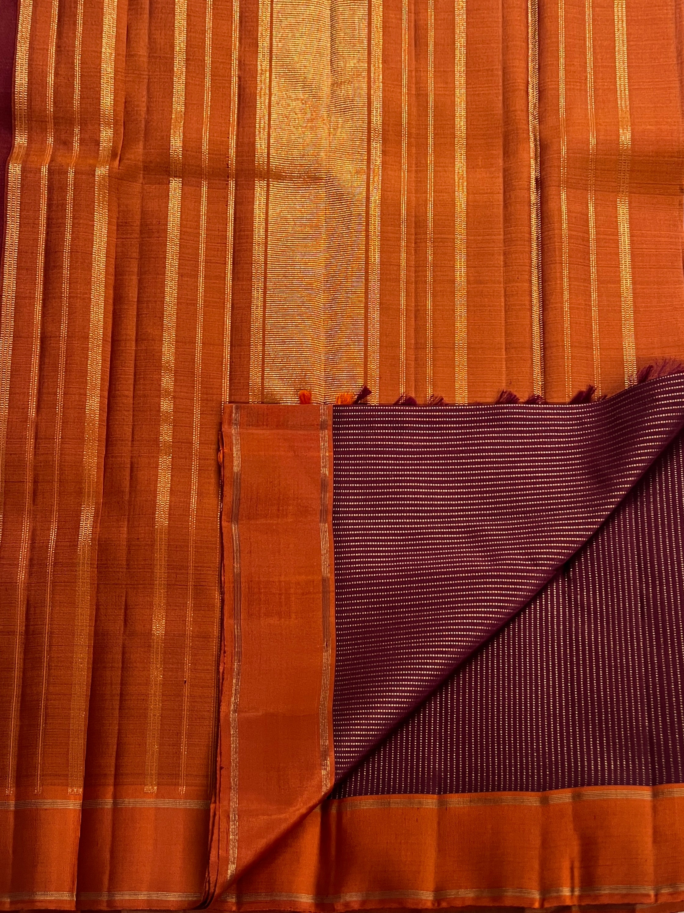• Vertical lines woven in the beaded pattern with a striking contrast pallu
