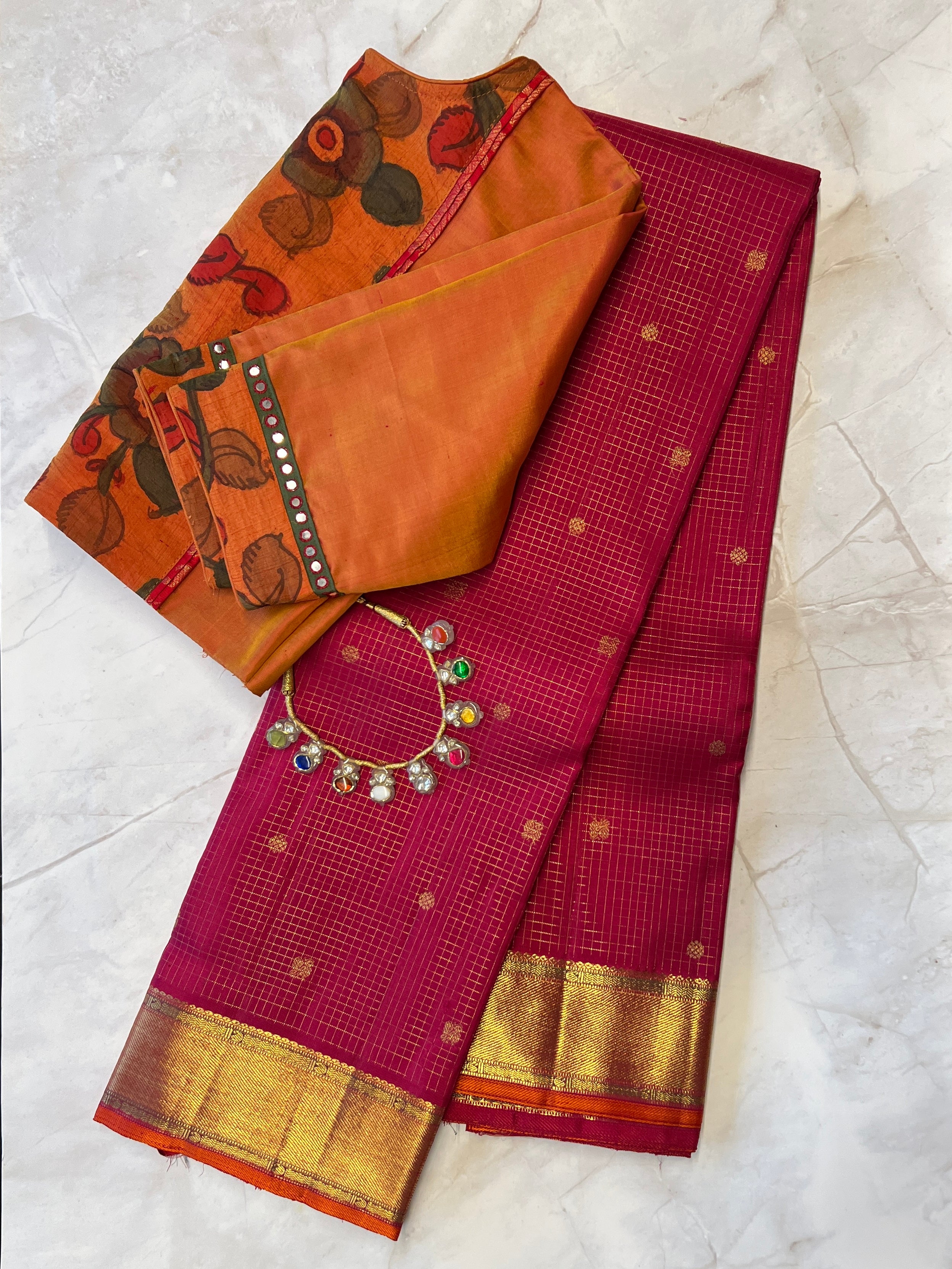 - Mayil (peacock) and Chakram (circular) motifs scattered in between.