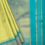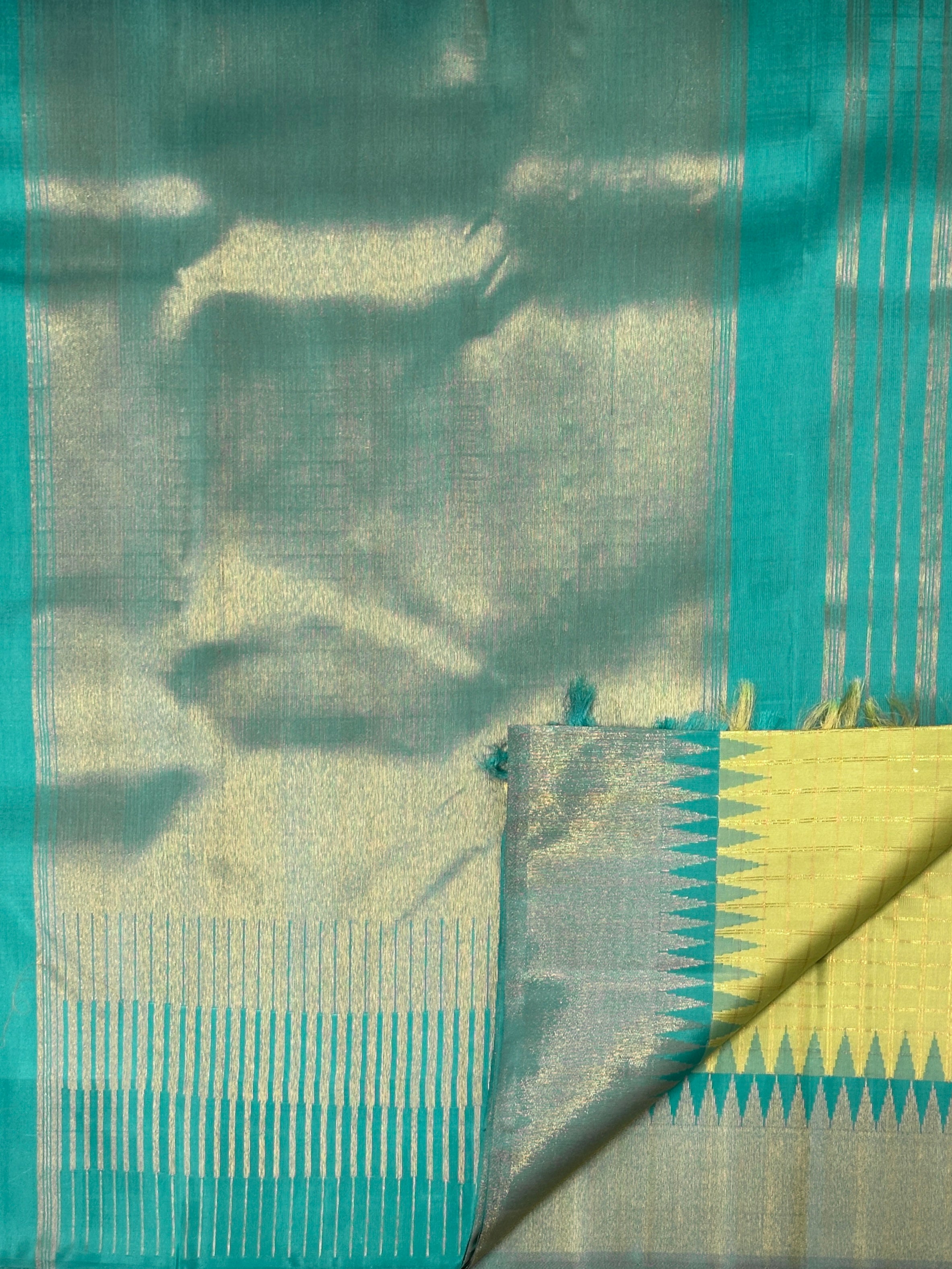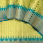 Beautifully woven with temple-inspired motifs, seamlessly interlinking the body and pallu for a distinctive look.