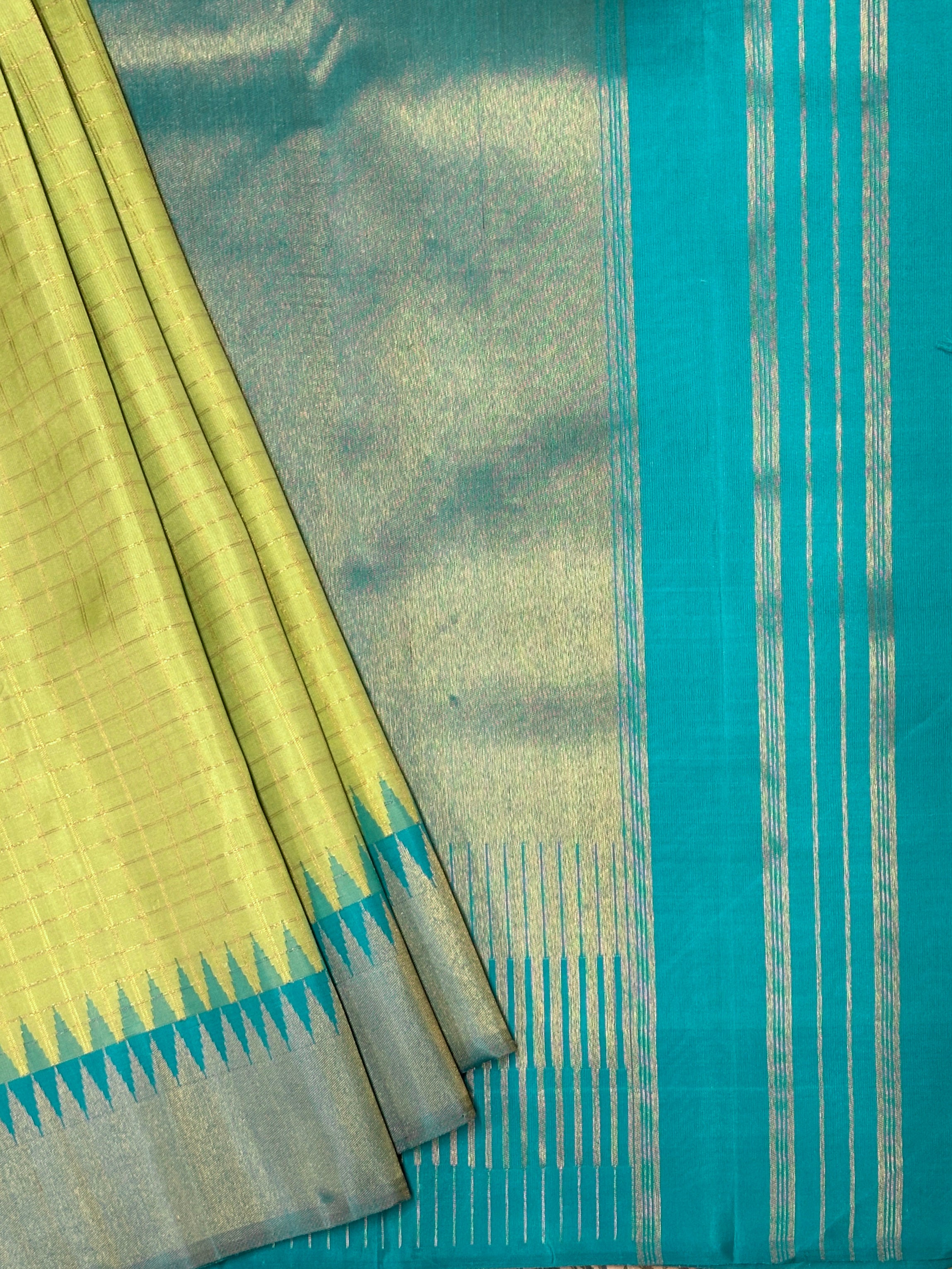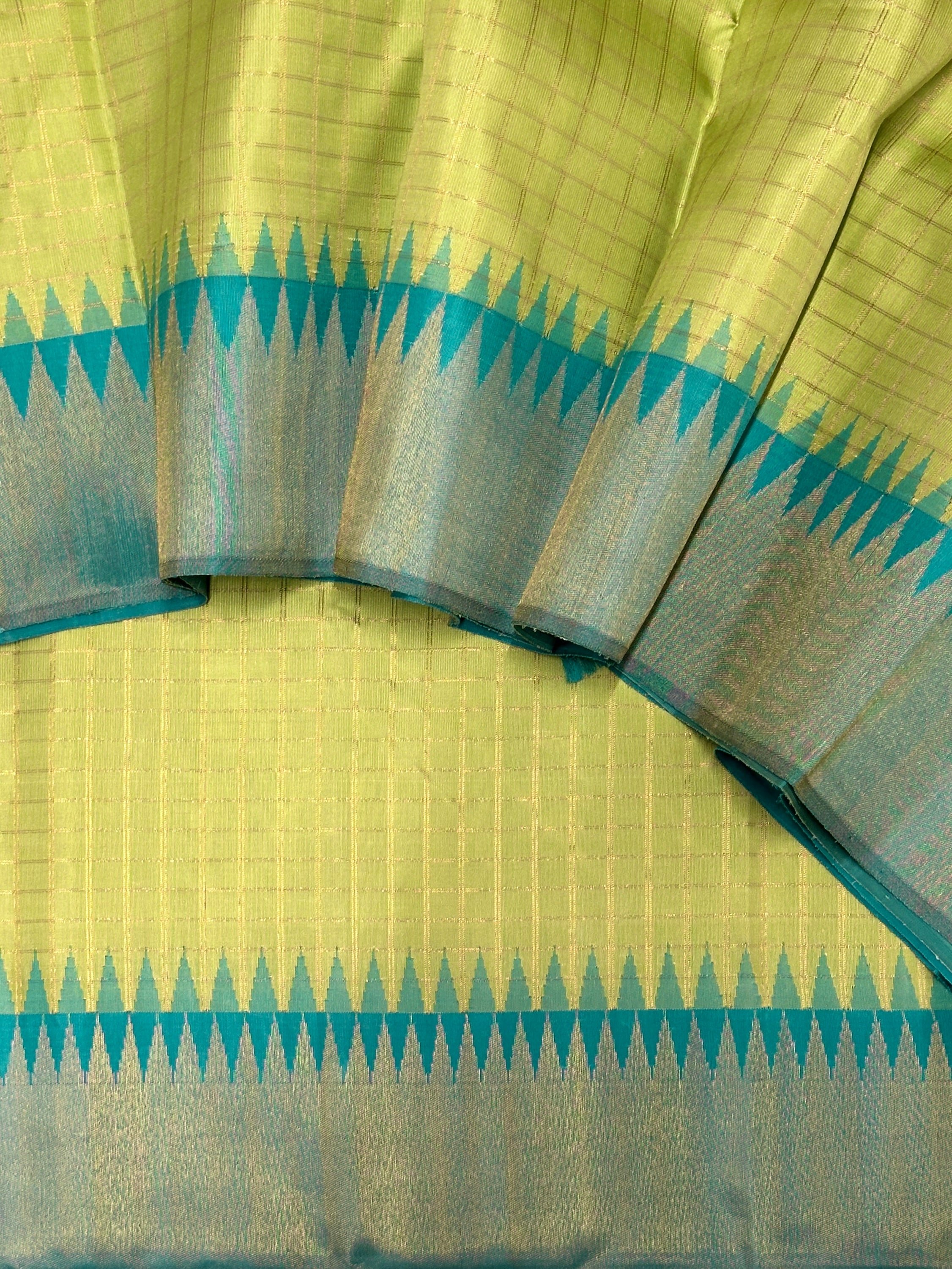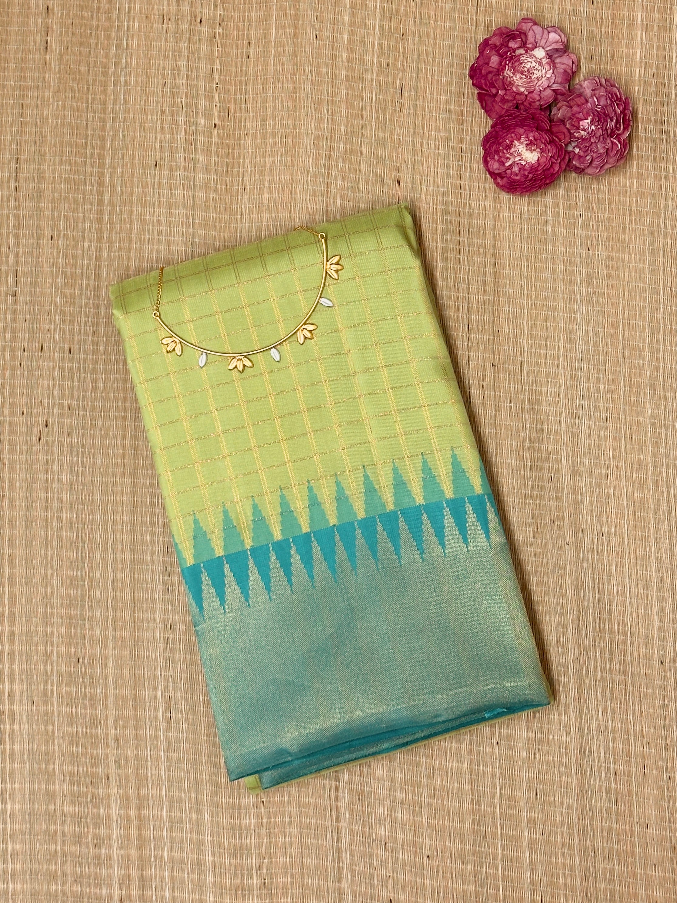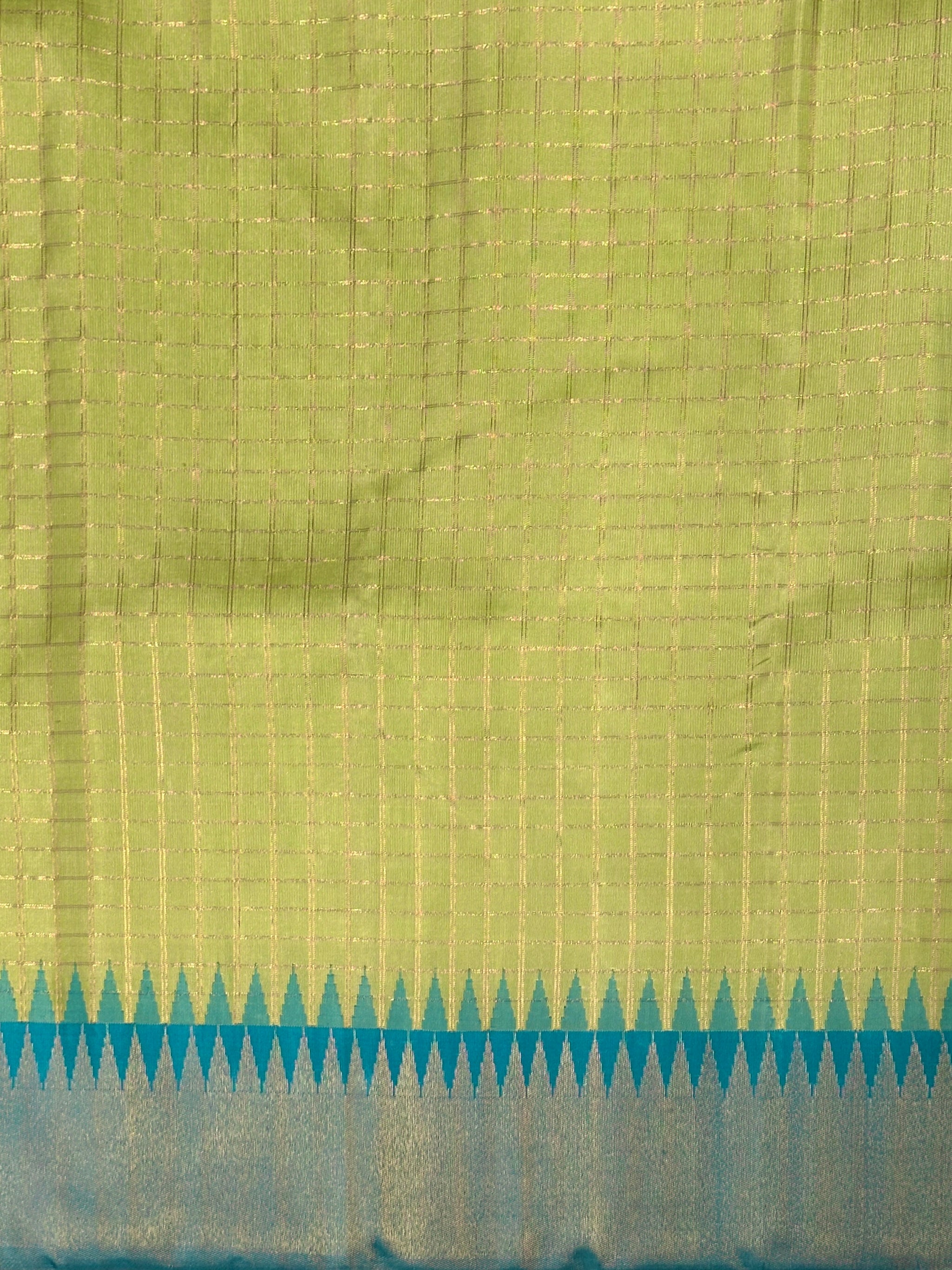 Features Twin-line Zari checks across the body for a classic, rich texture.