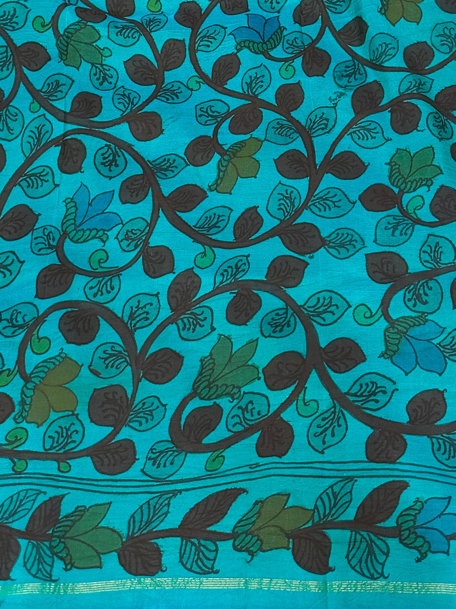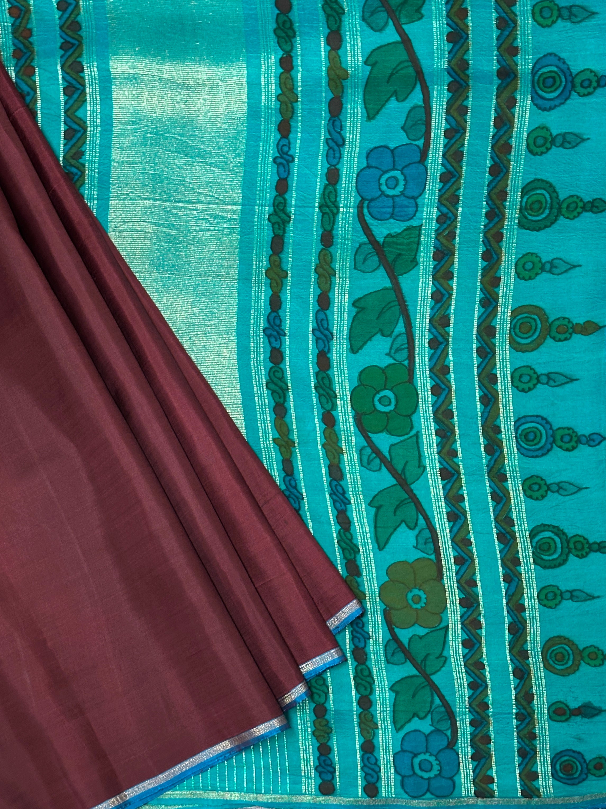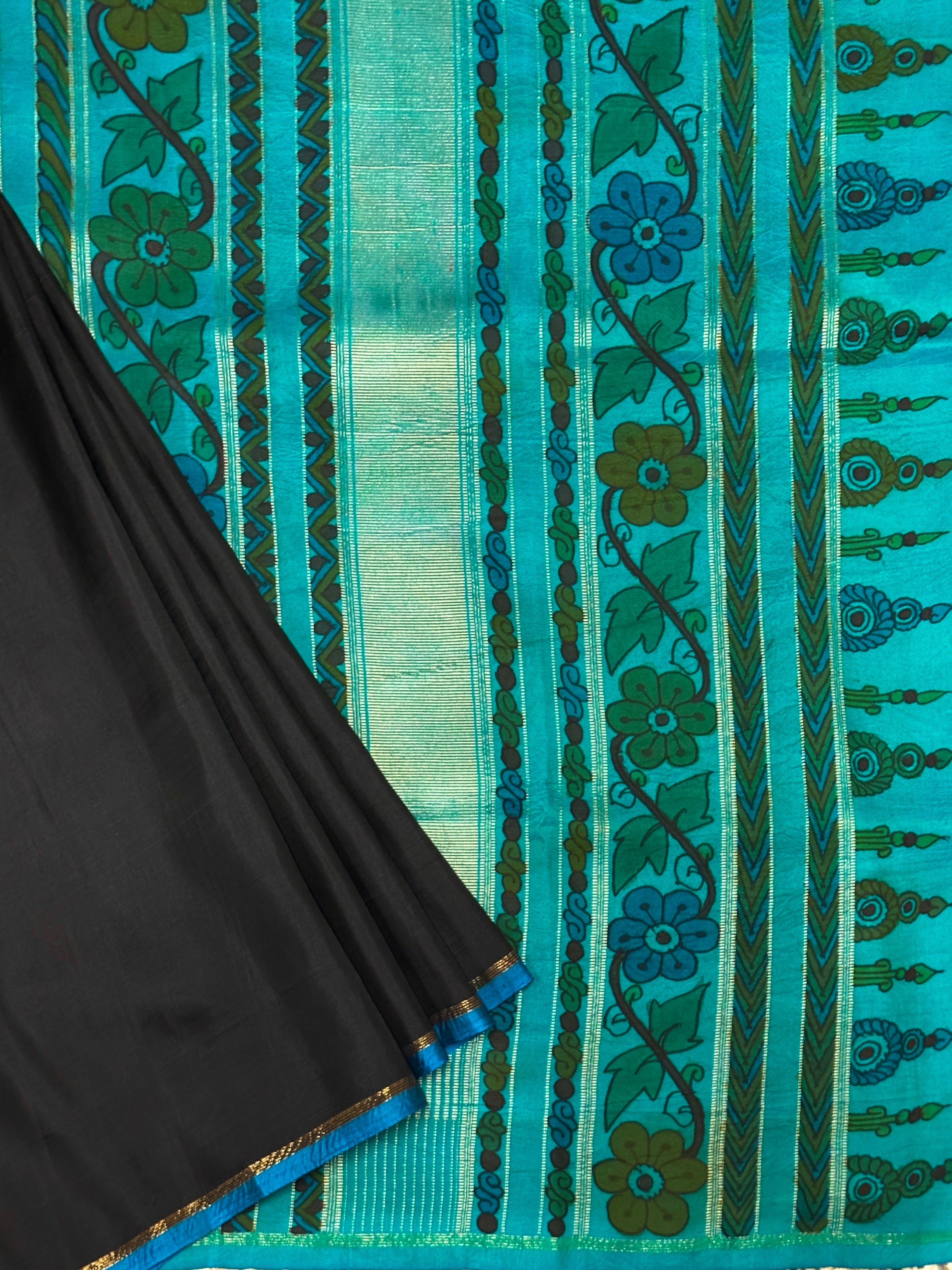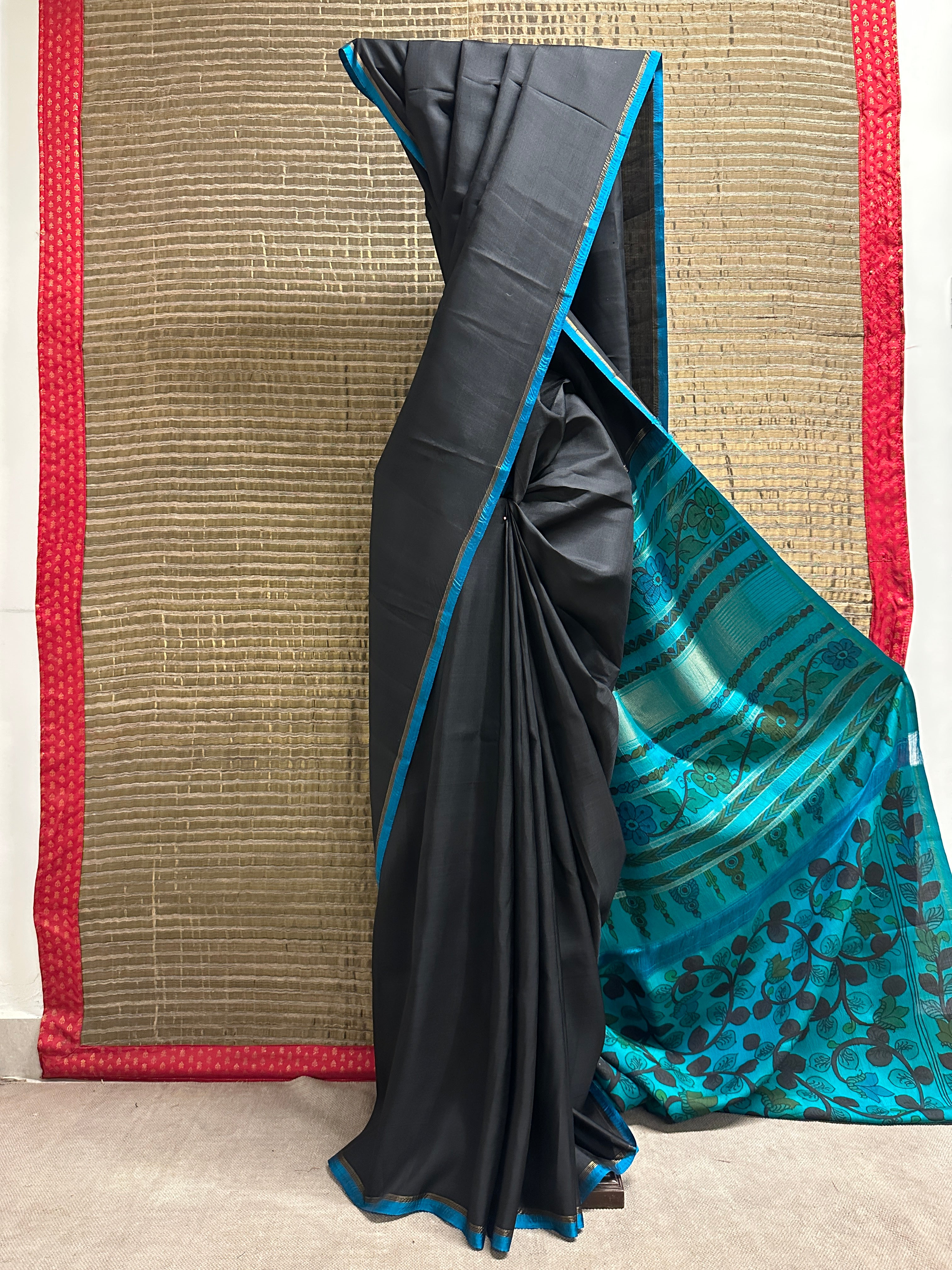 - Hand painted kalamkari on the pallu and blouse piece