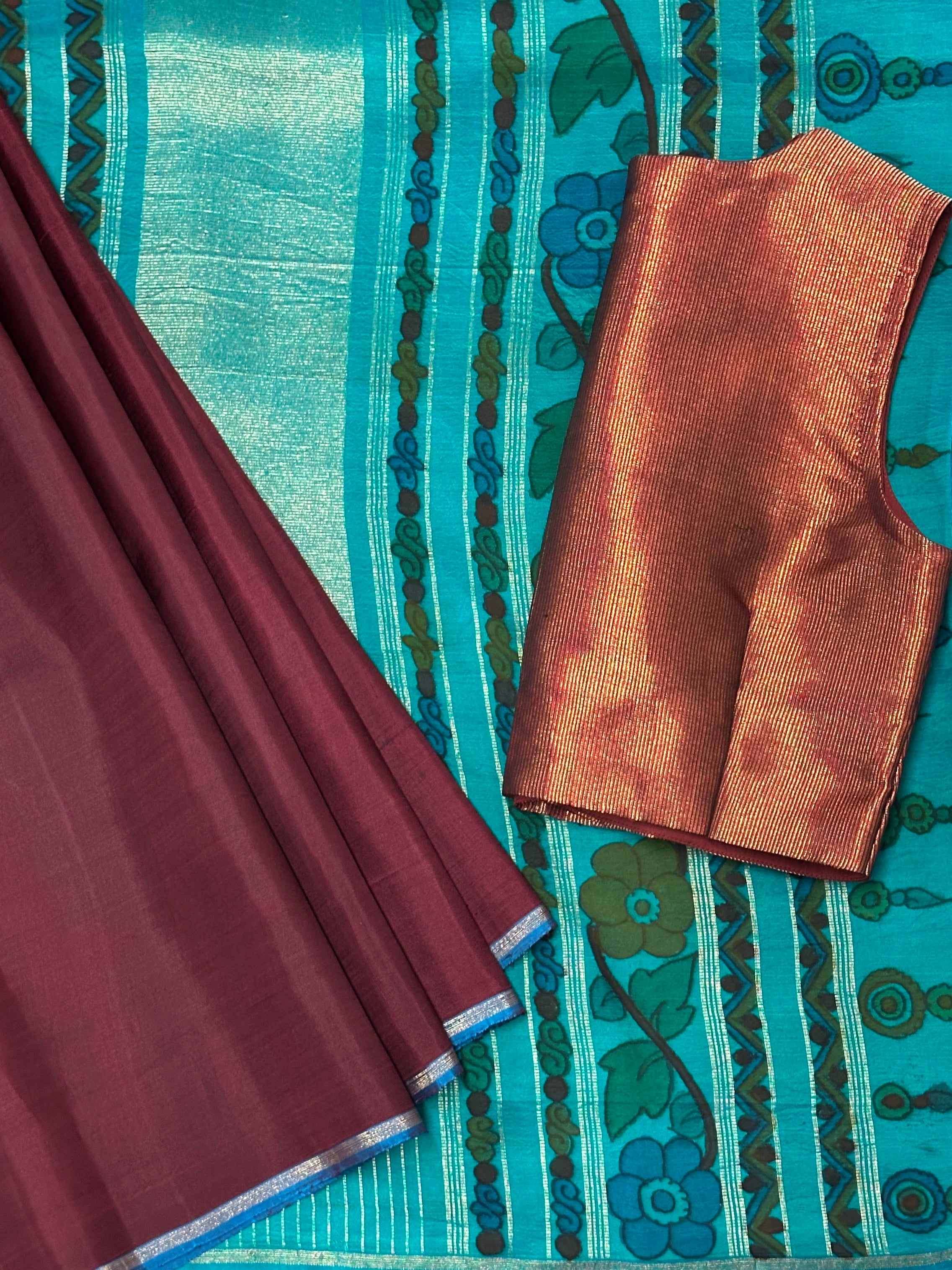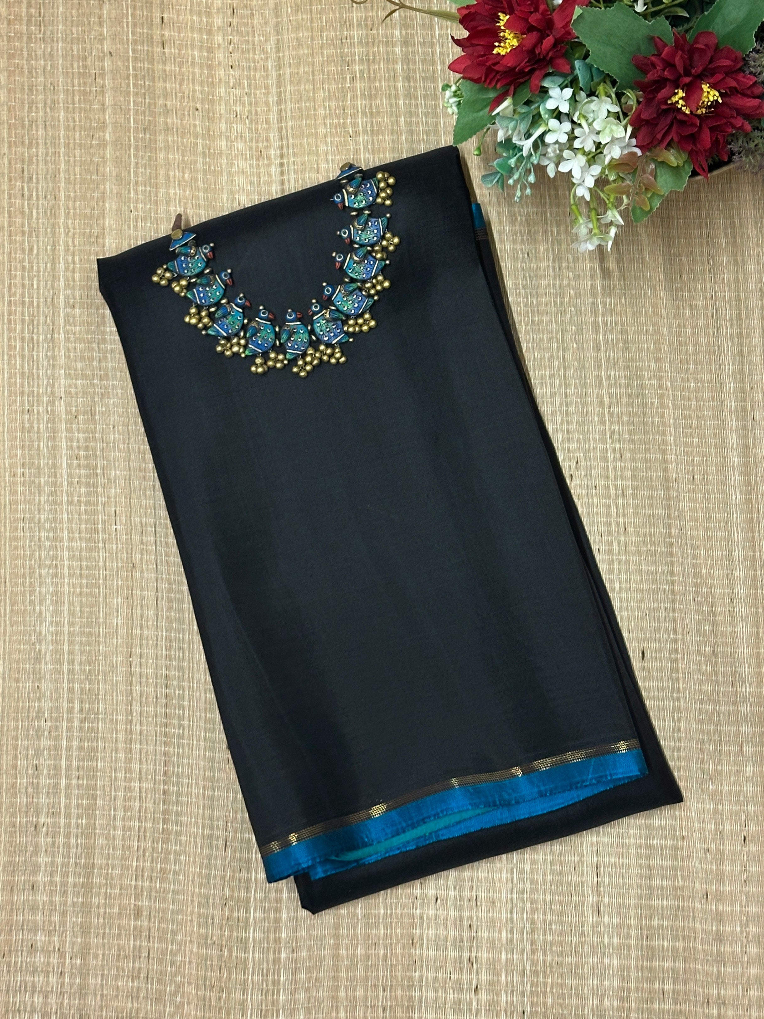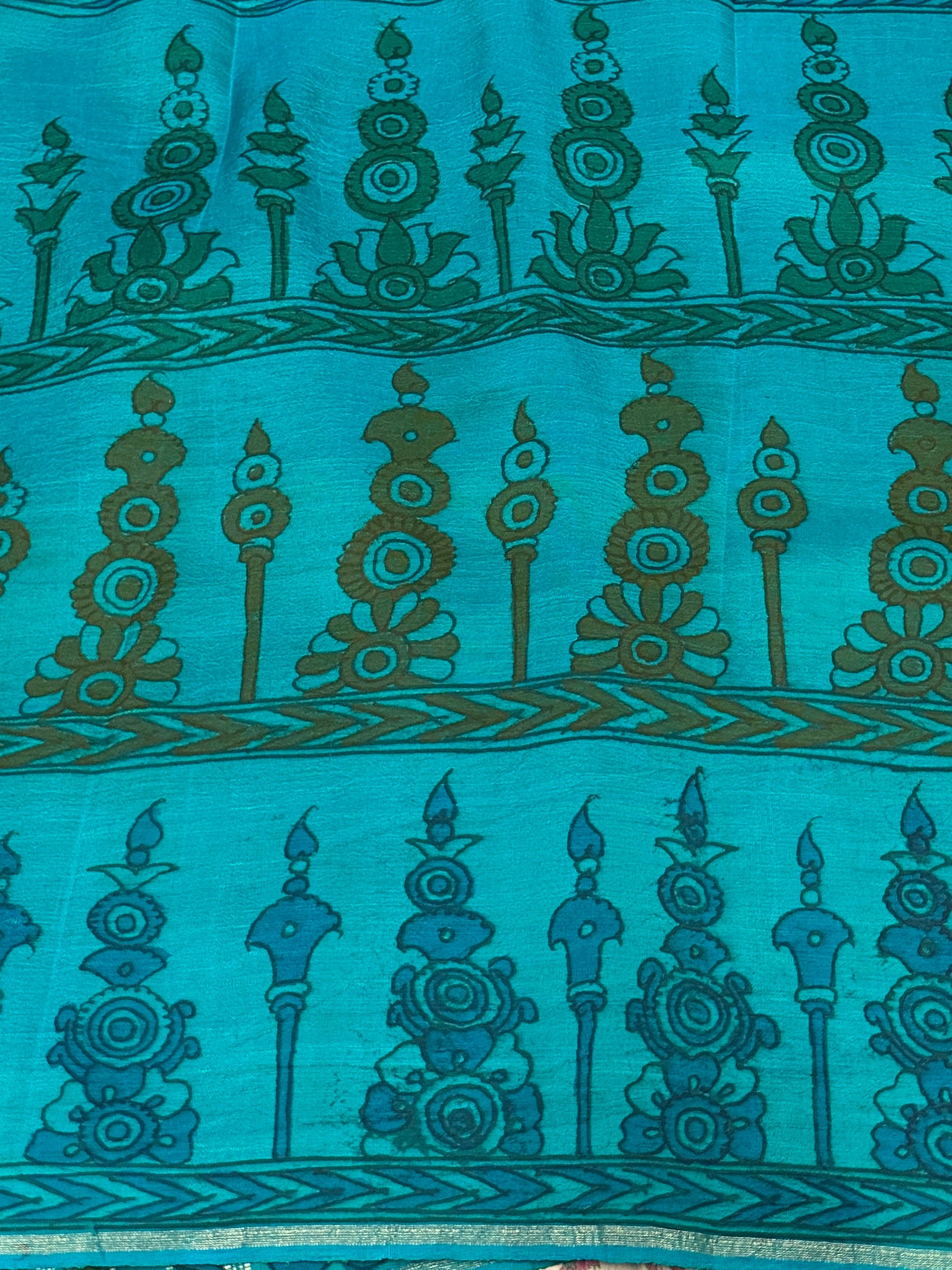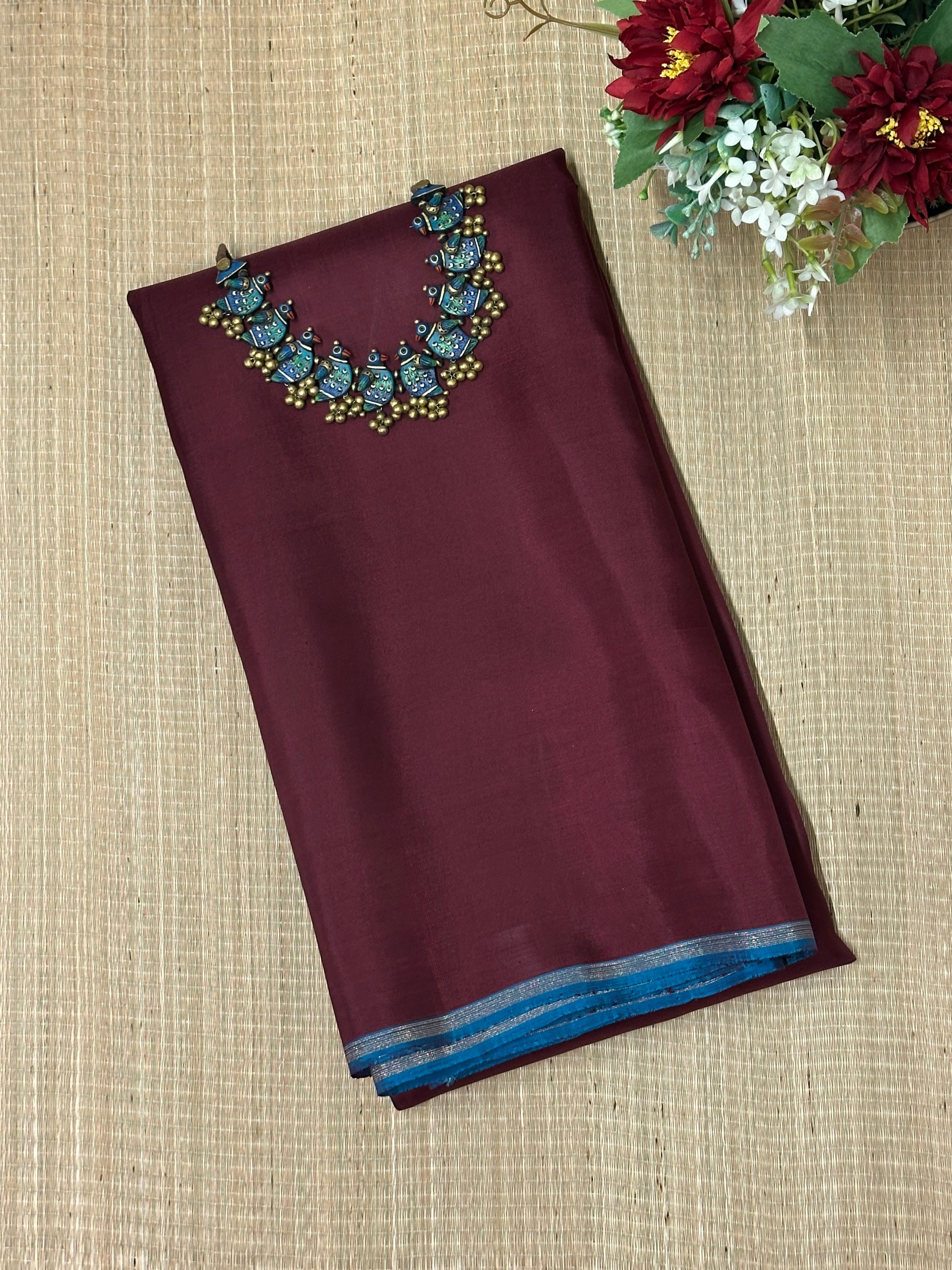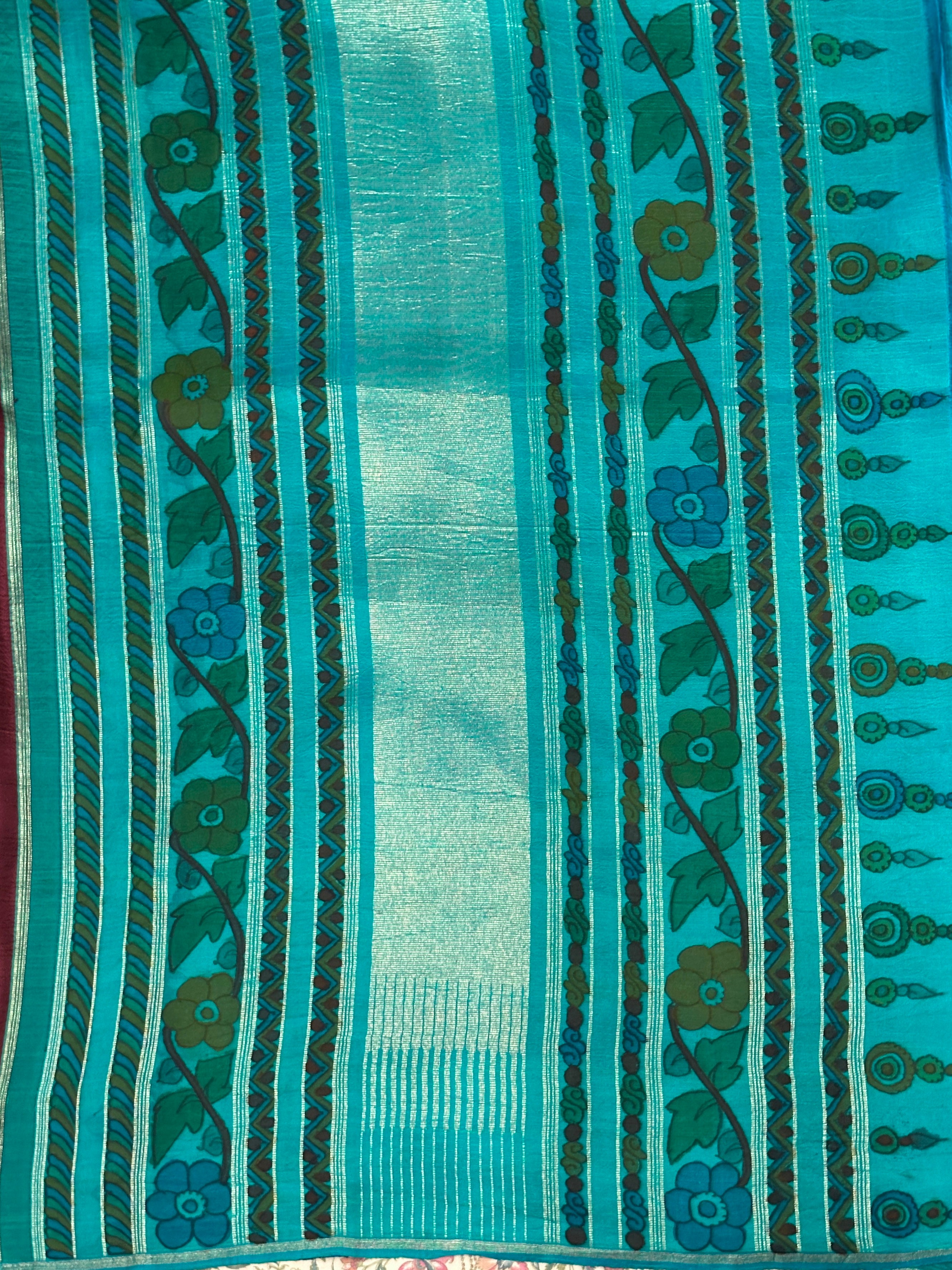 - Hand painted kalamkari on the pallu and blouse piece