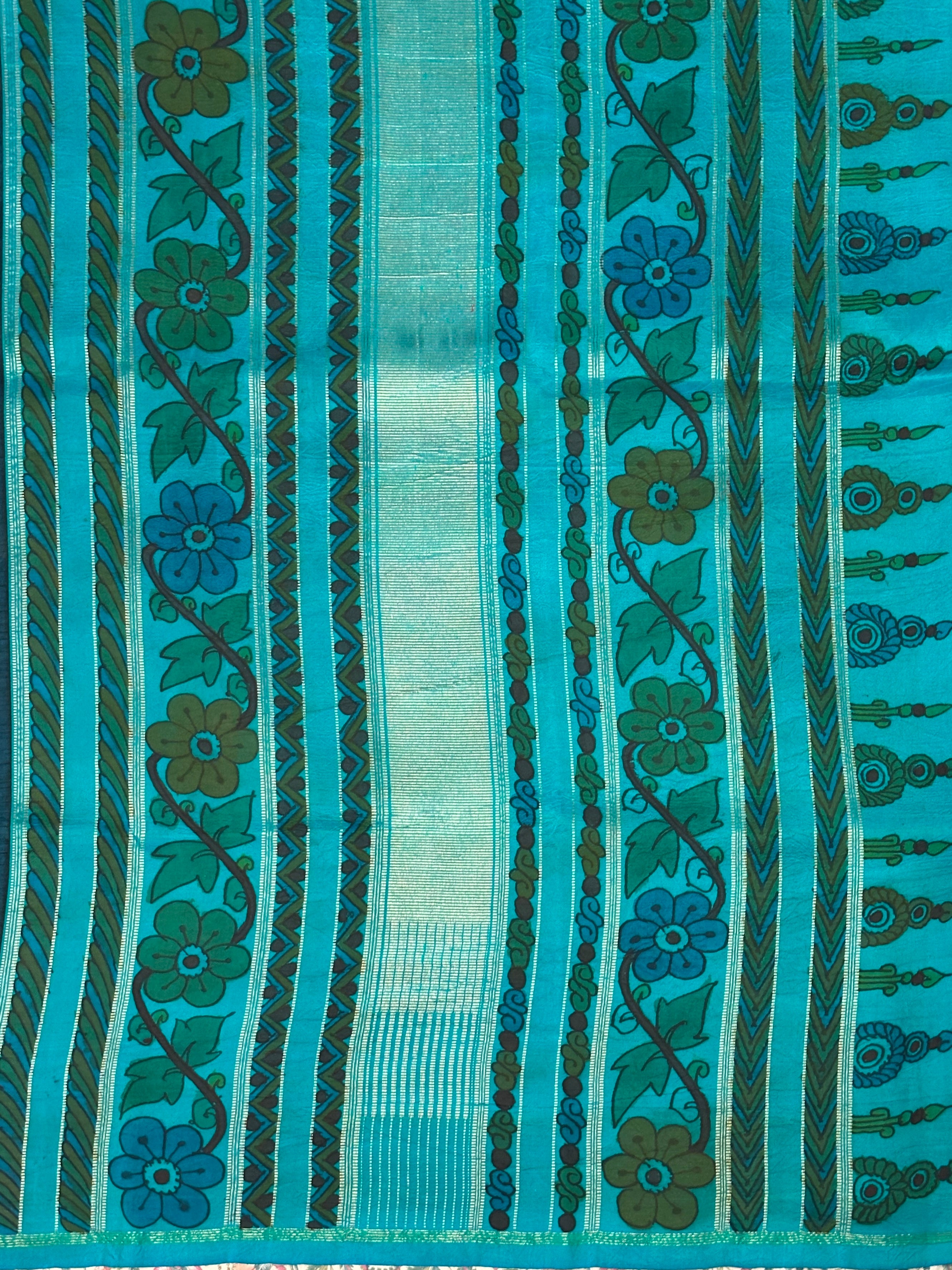 Kalpataru Teal Pallu Hand Painted Saree