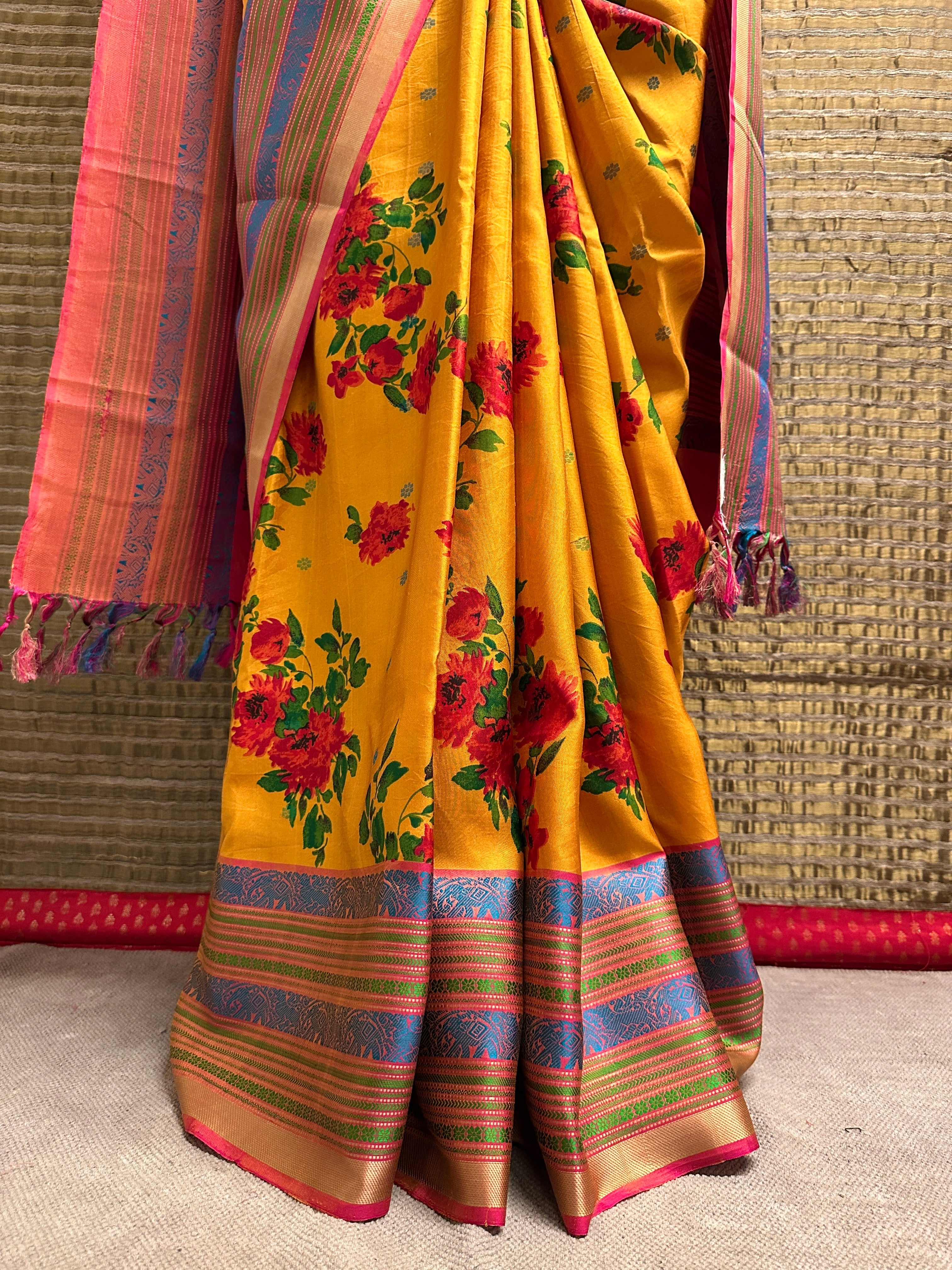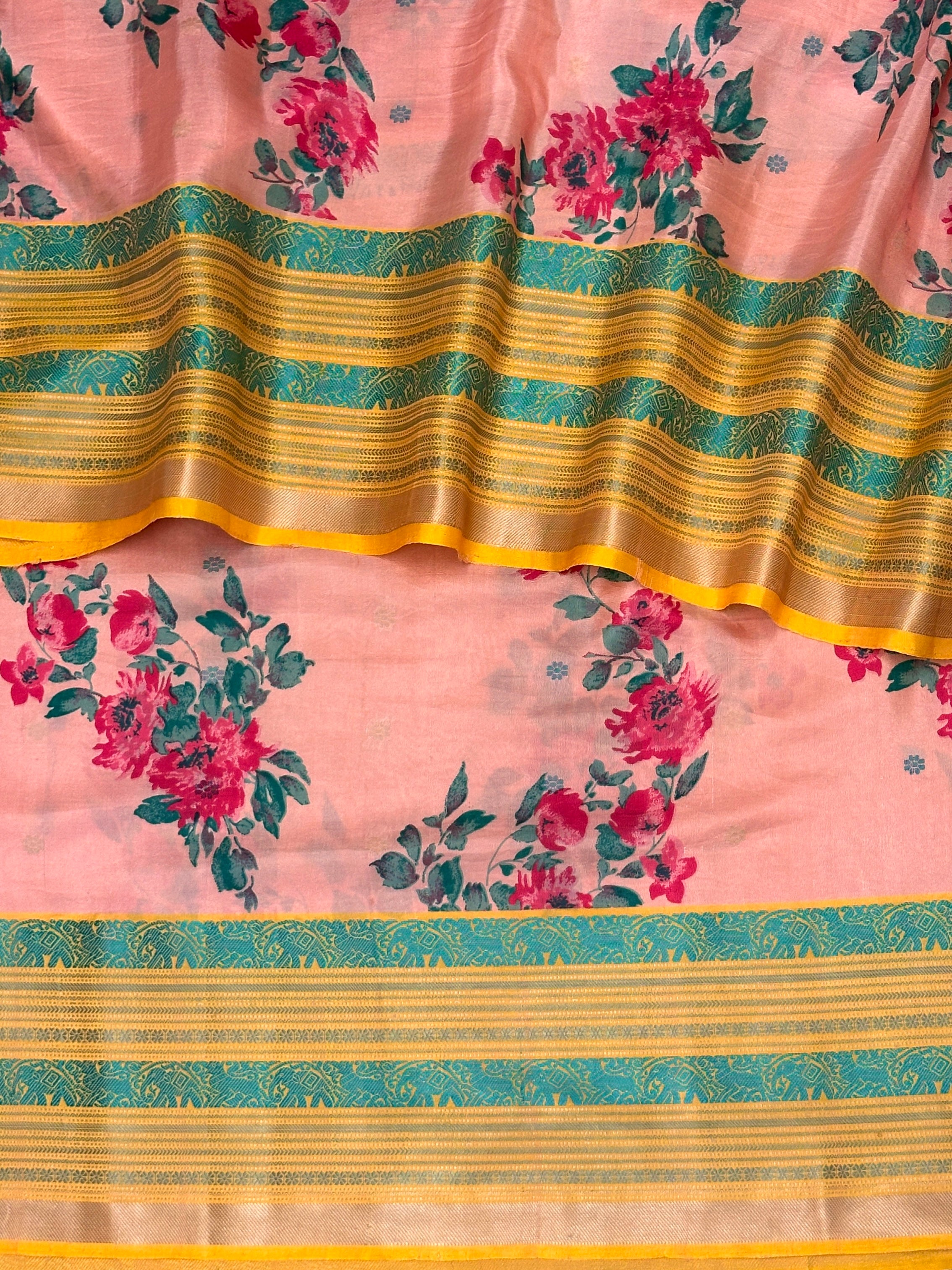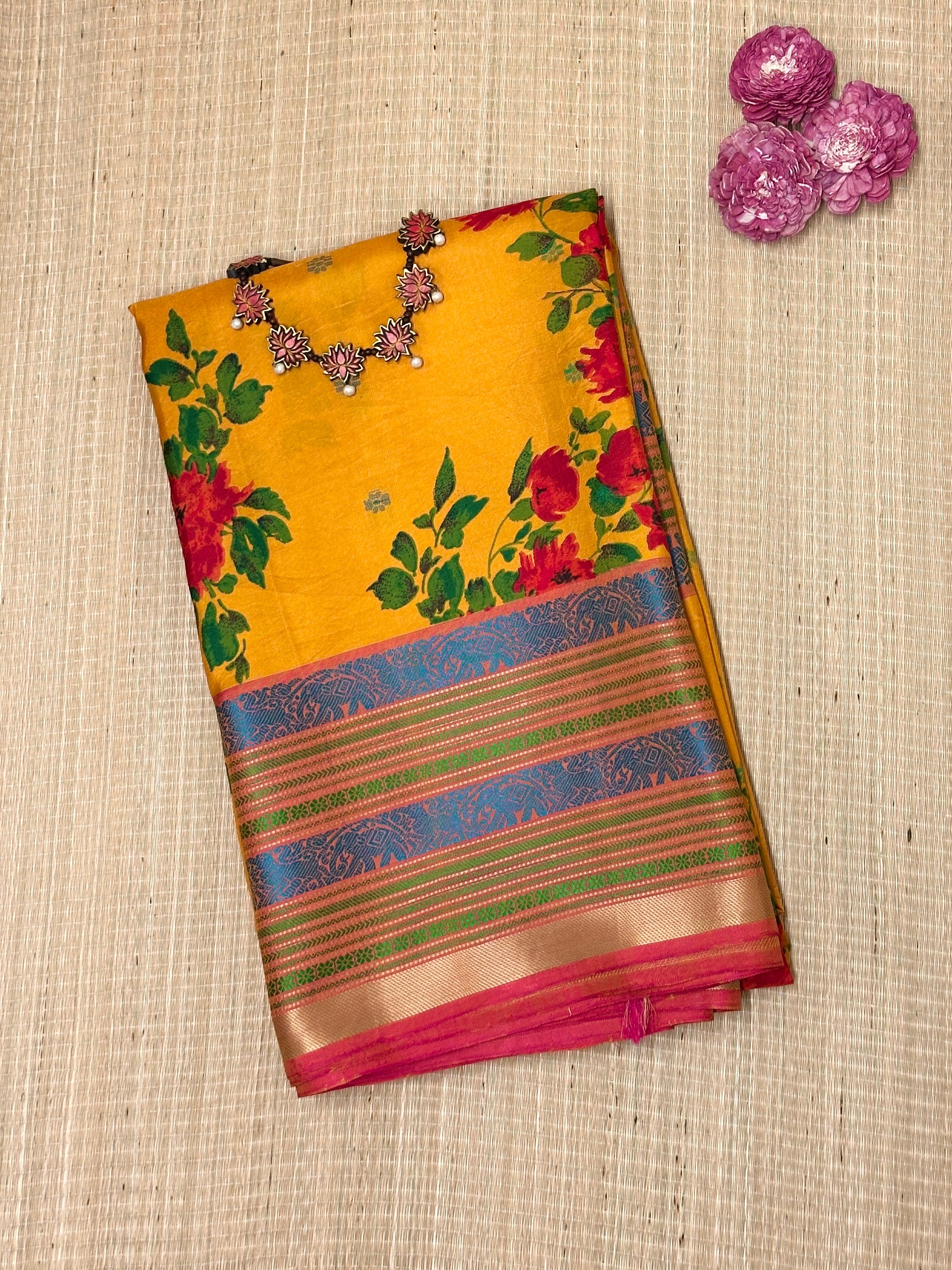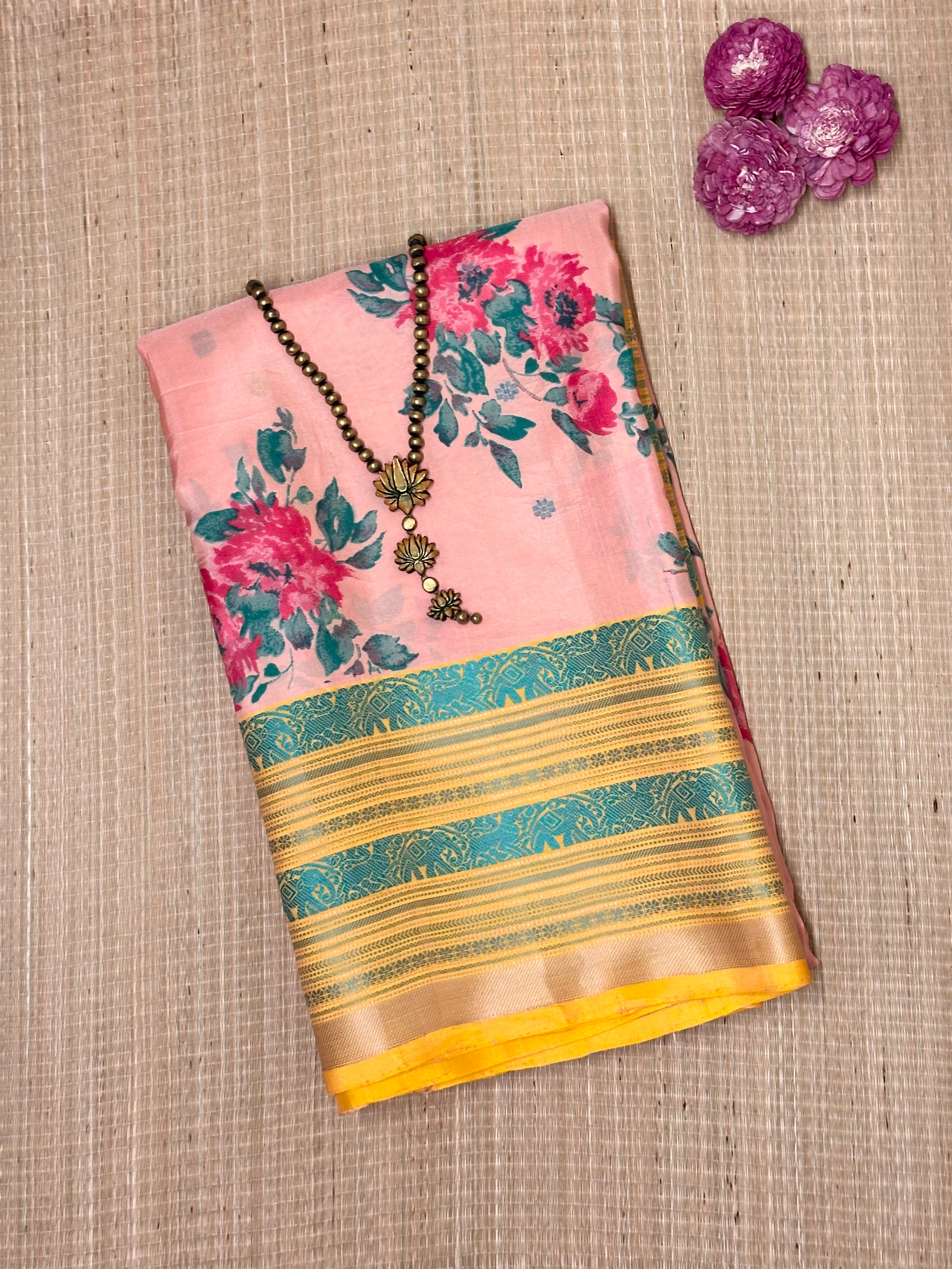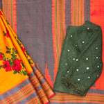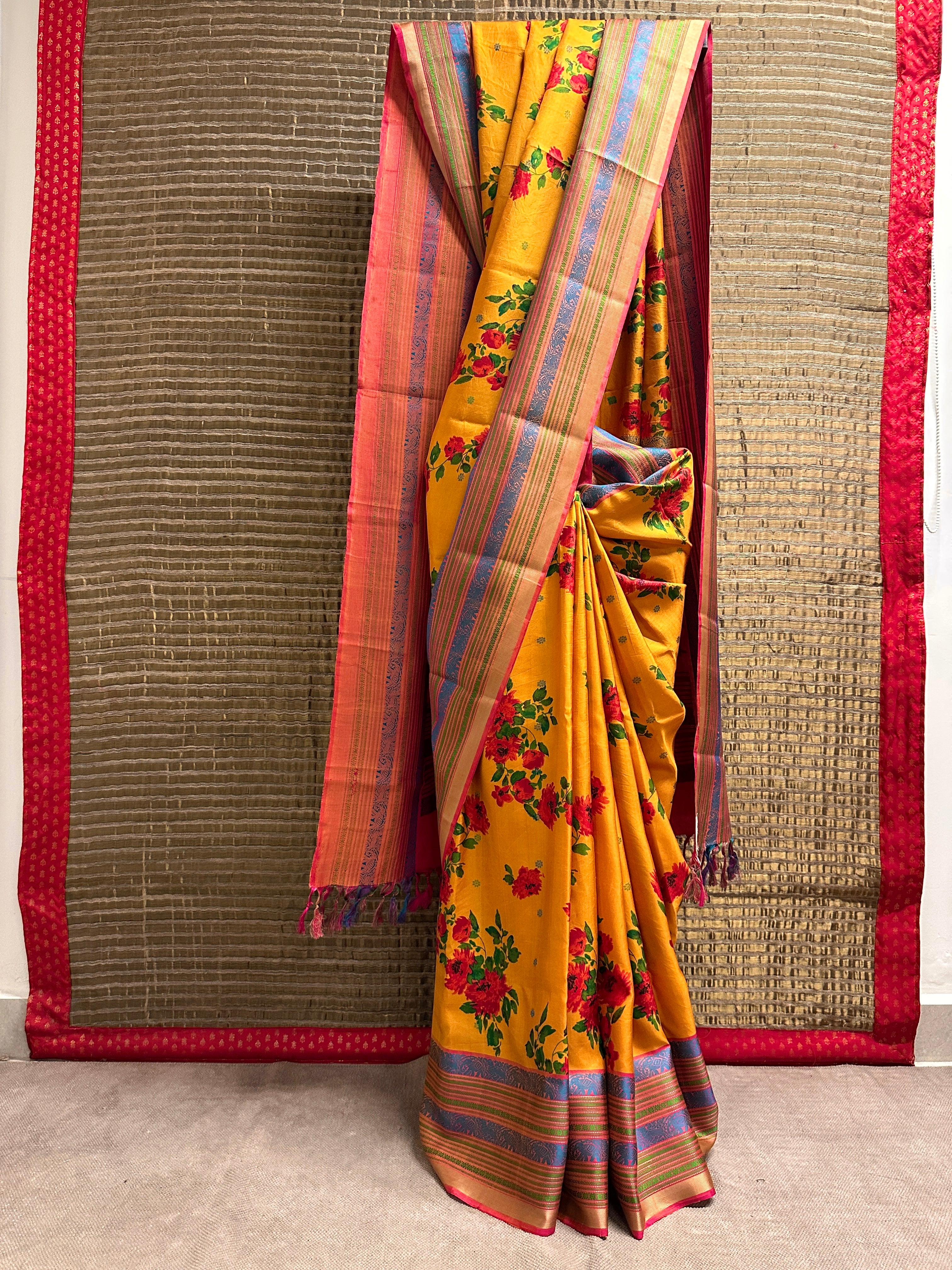Comes with contrasting silk blouse that complements the saree perfectly.