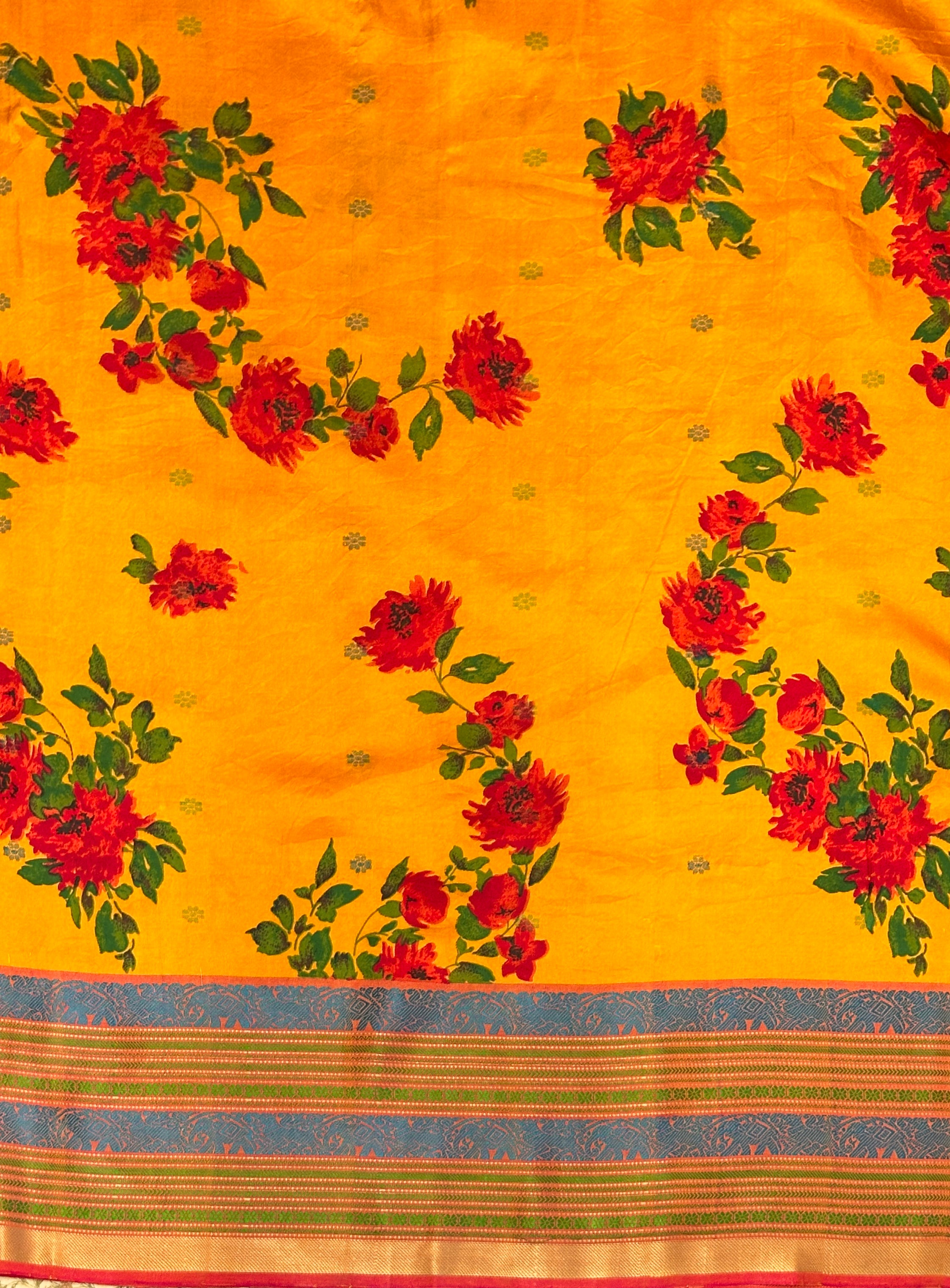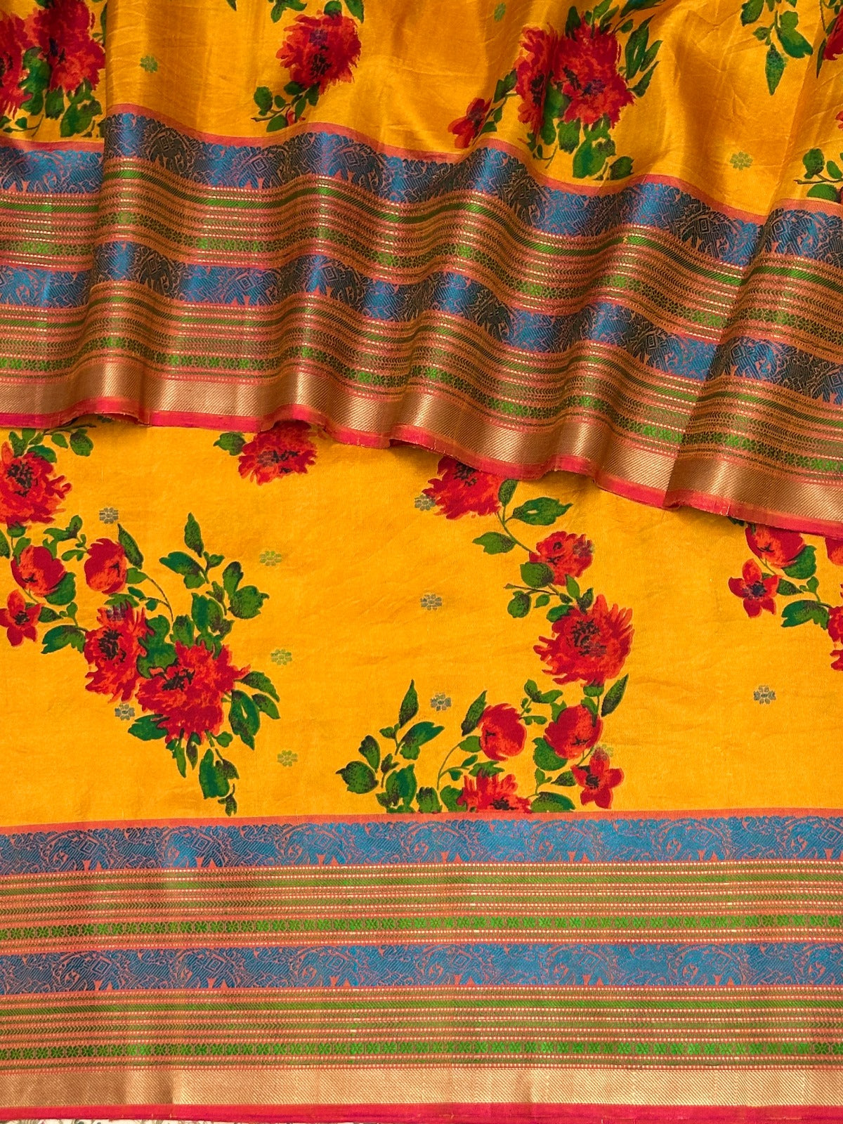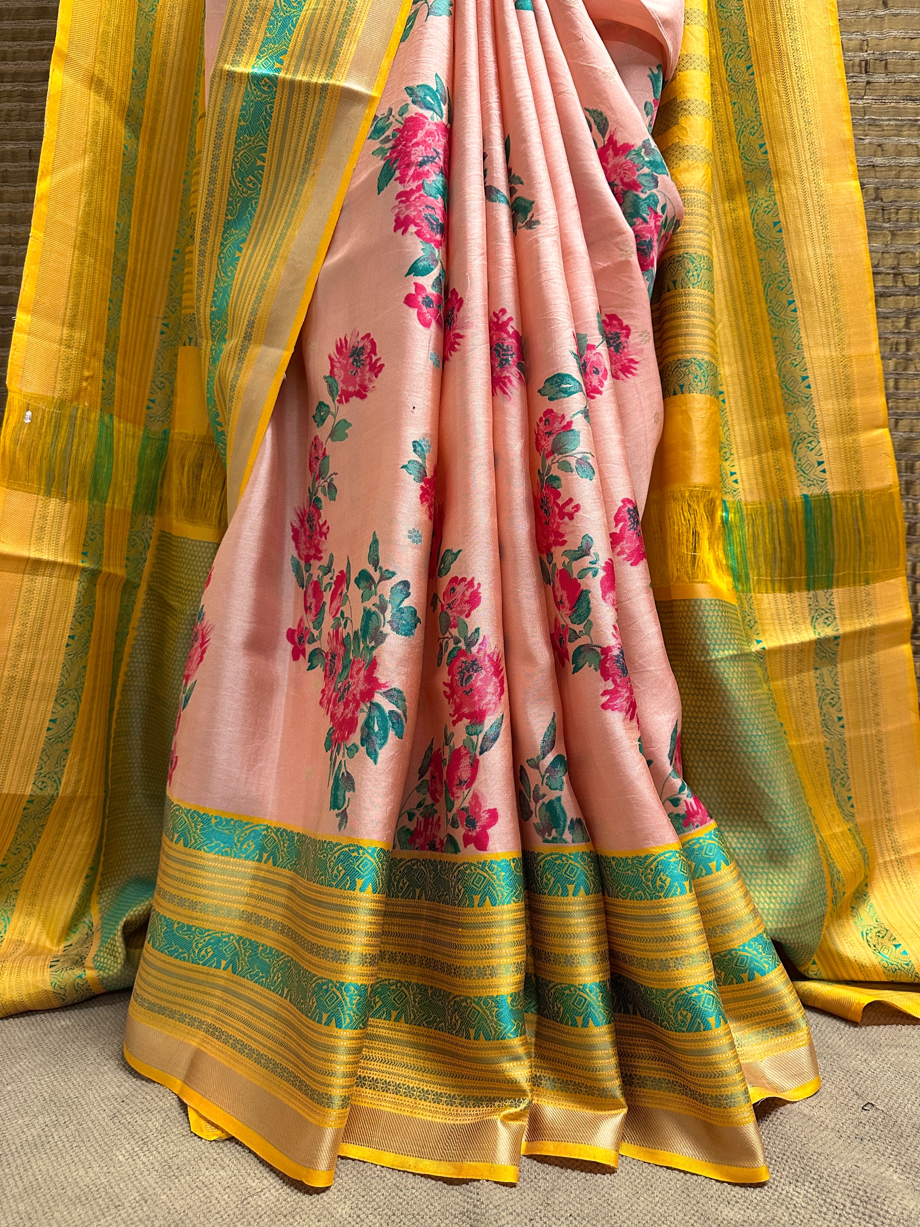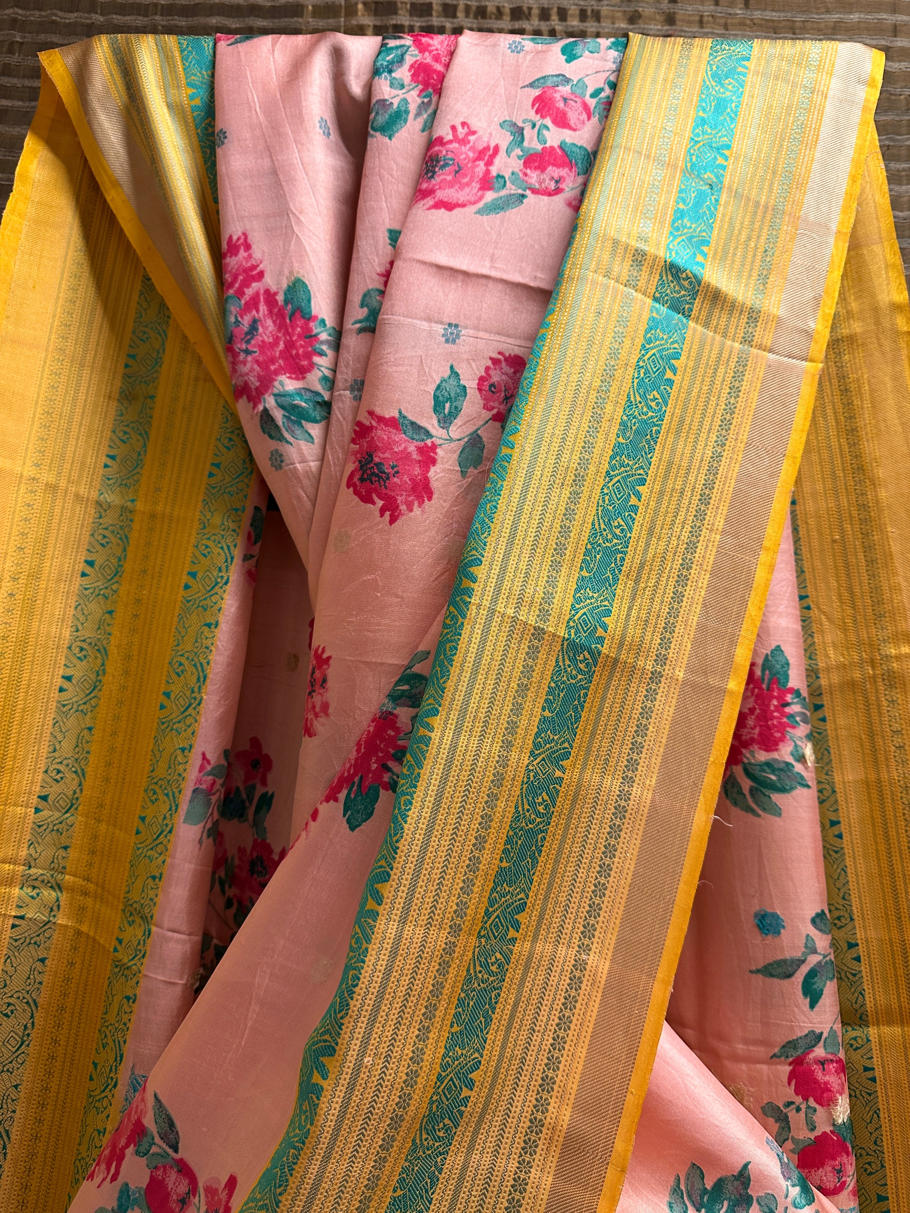 Comes with contrasting silk blouse that complements the saree perfectly.