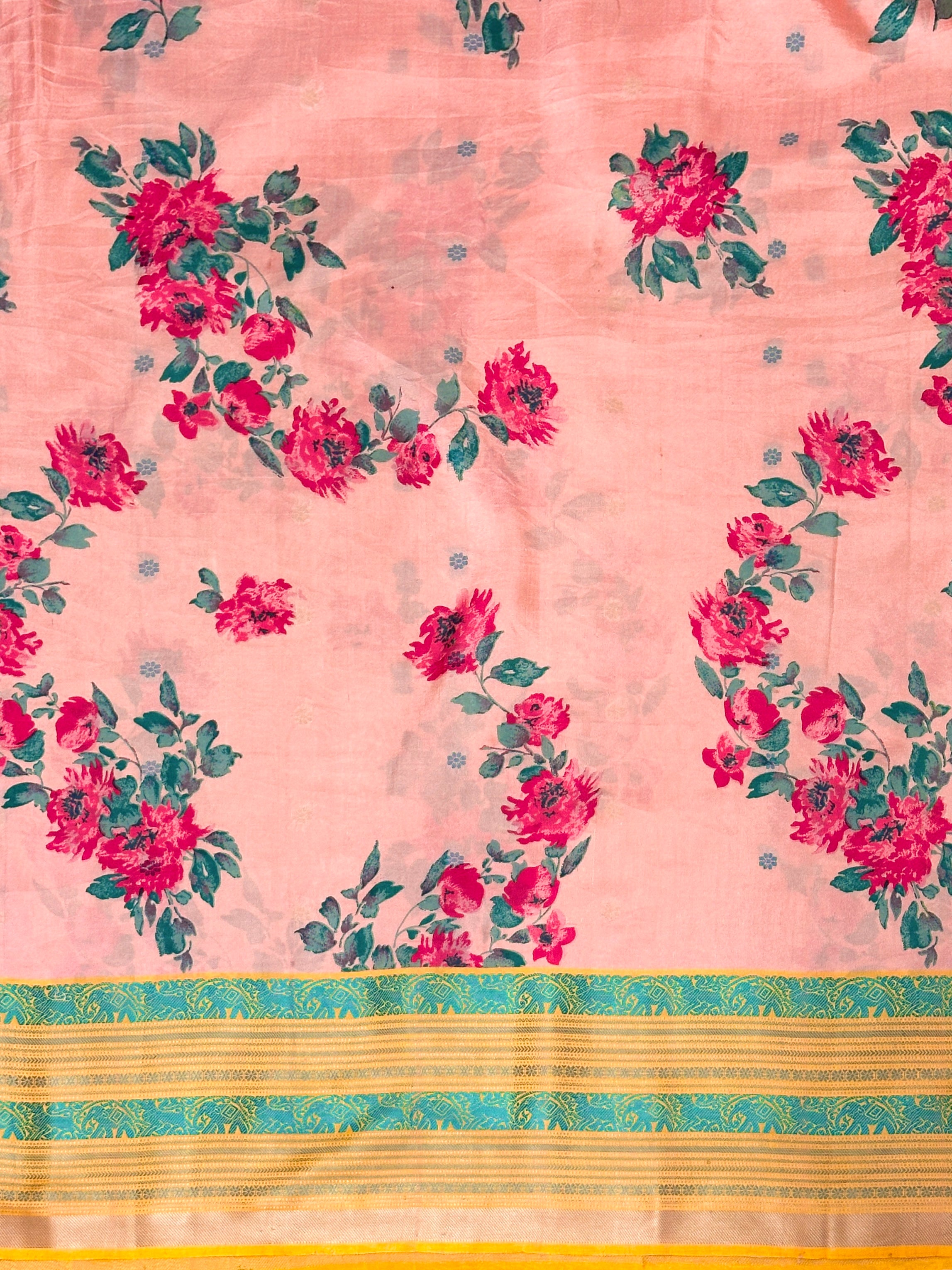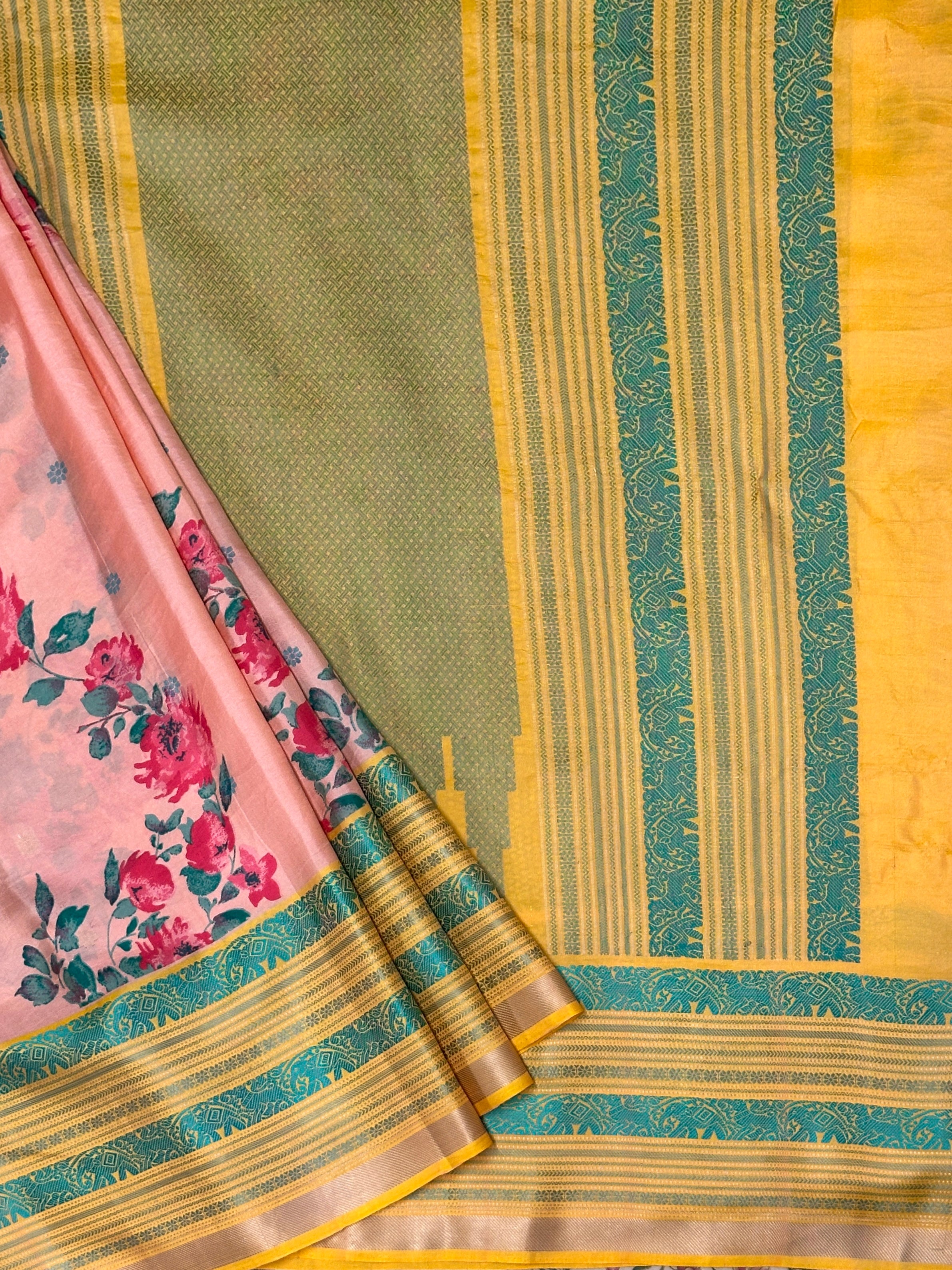Luxurious thread-woven border featuring elegant elephant motifs.