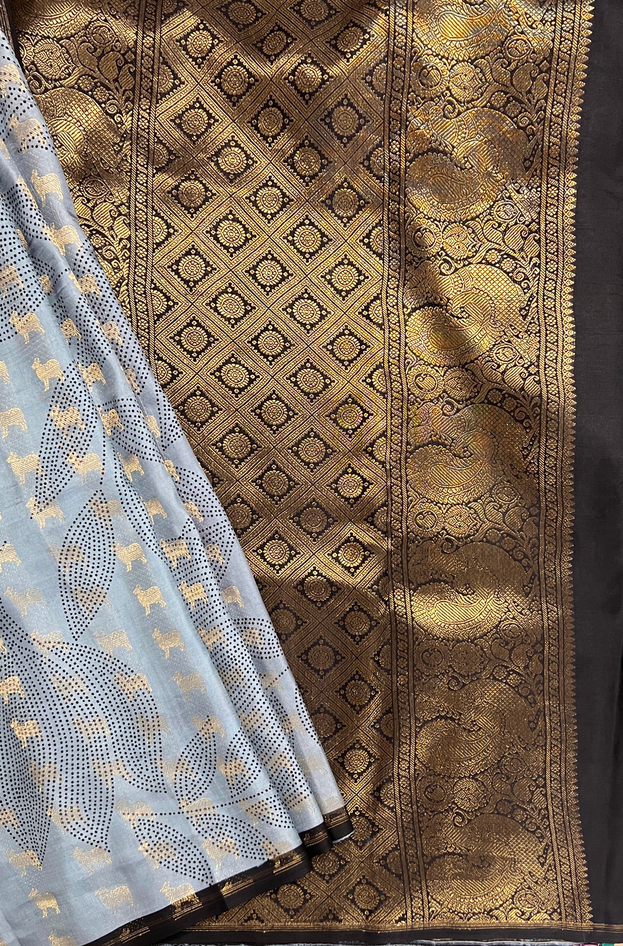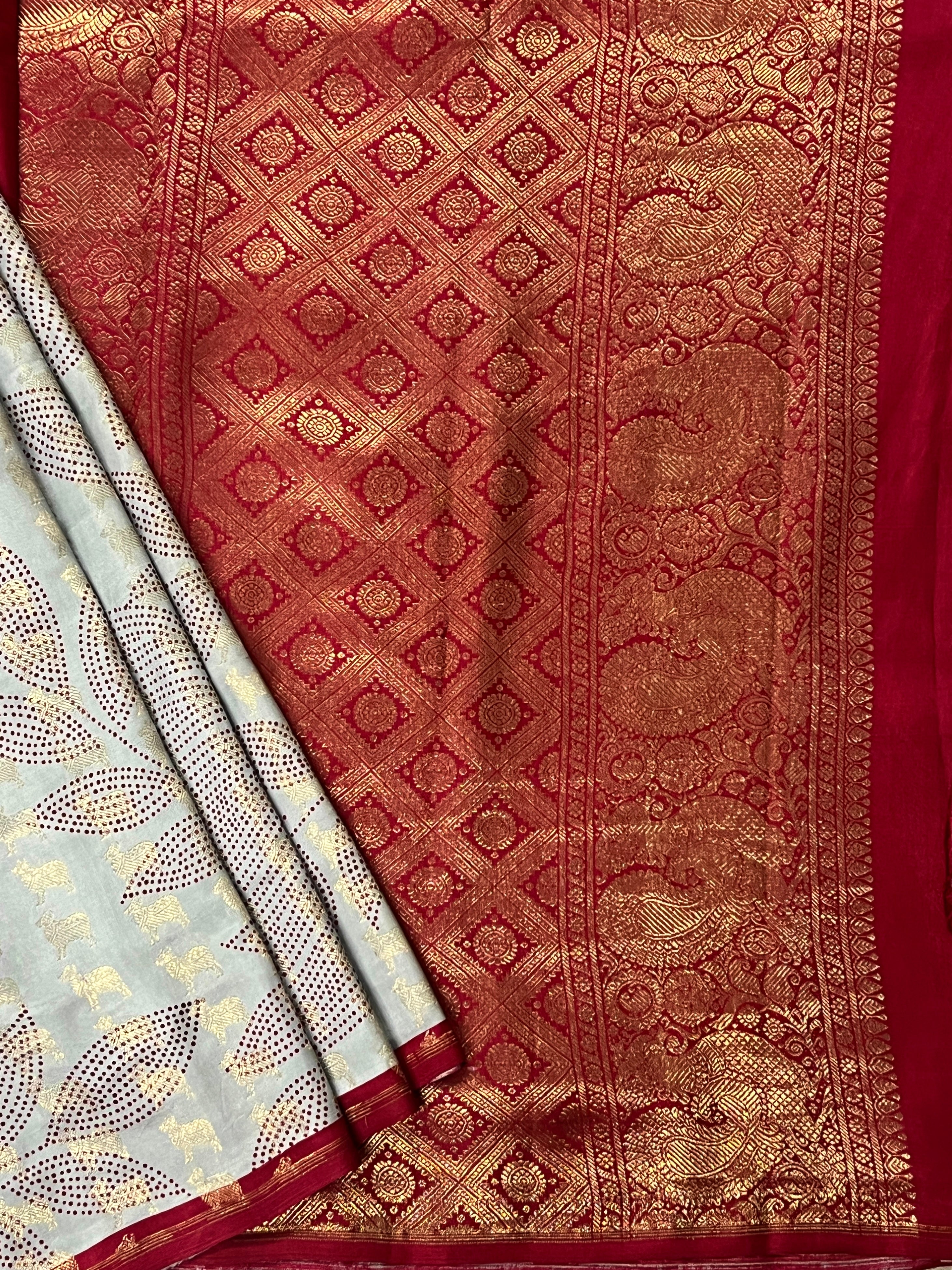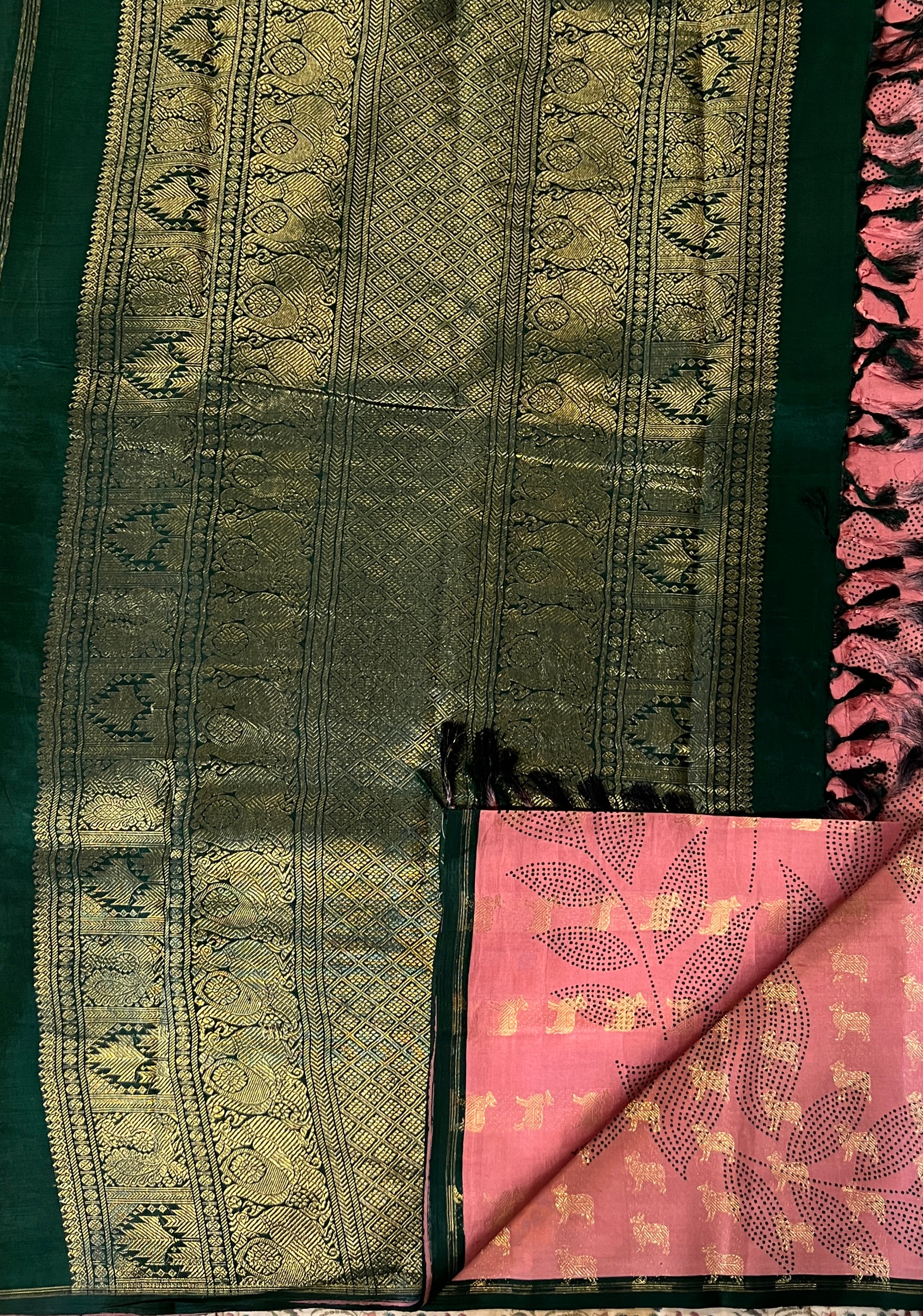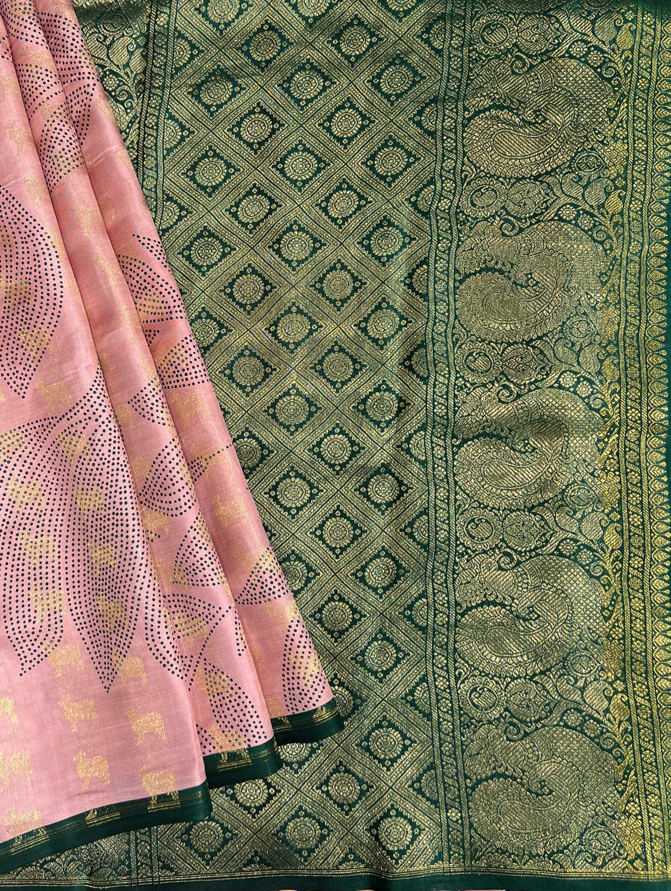 Pure Kanchipuram silk saree woven with authentic pure zari.
