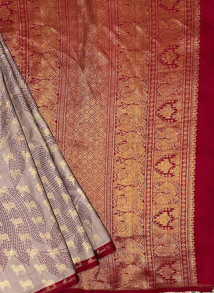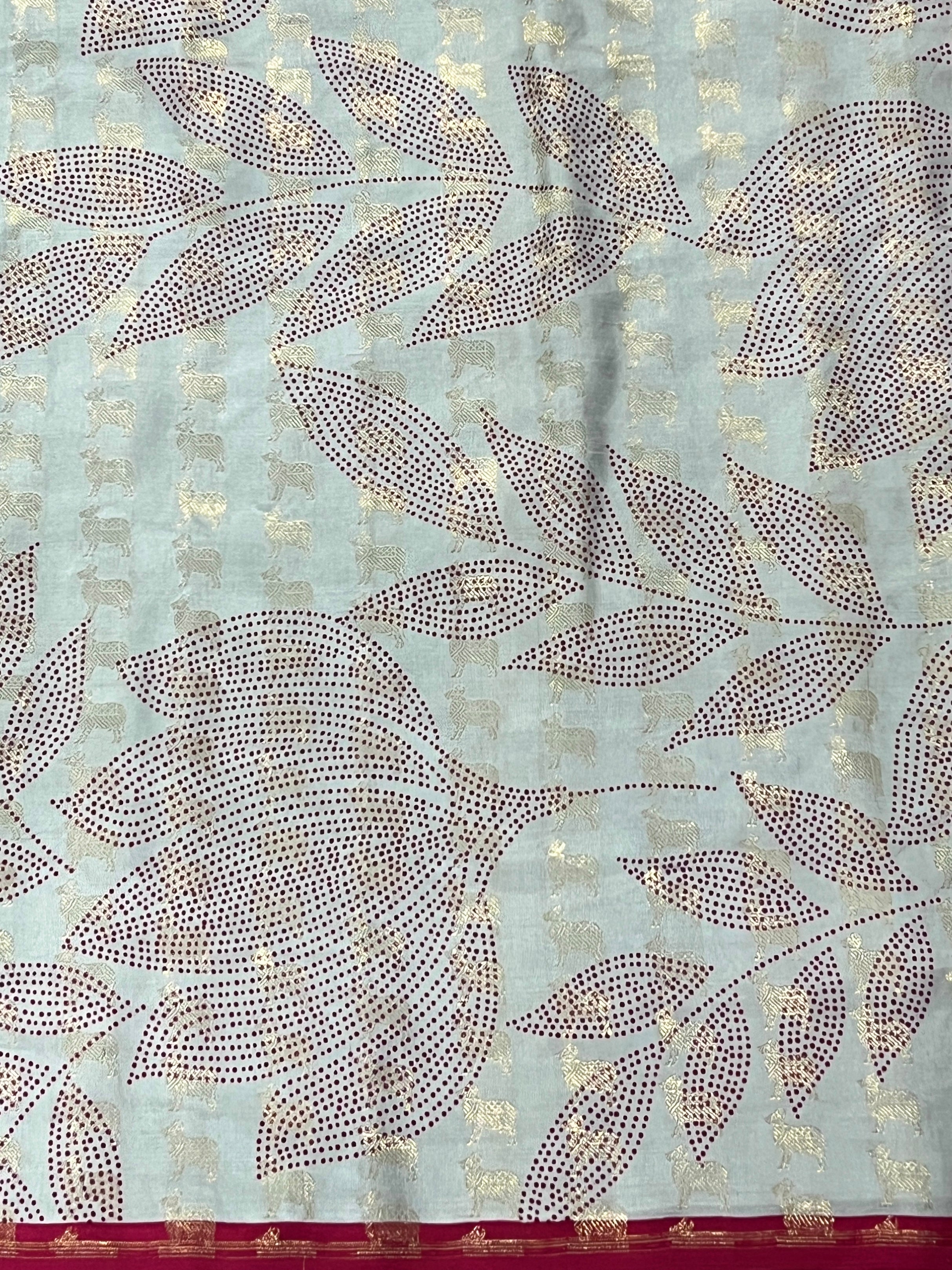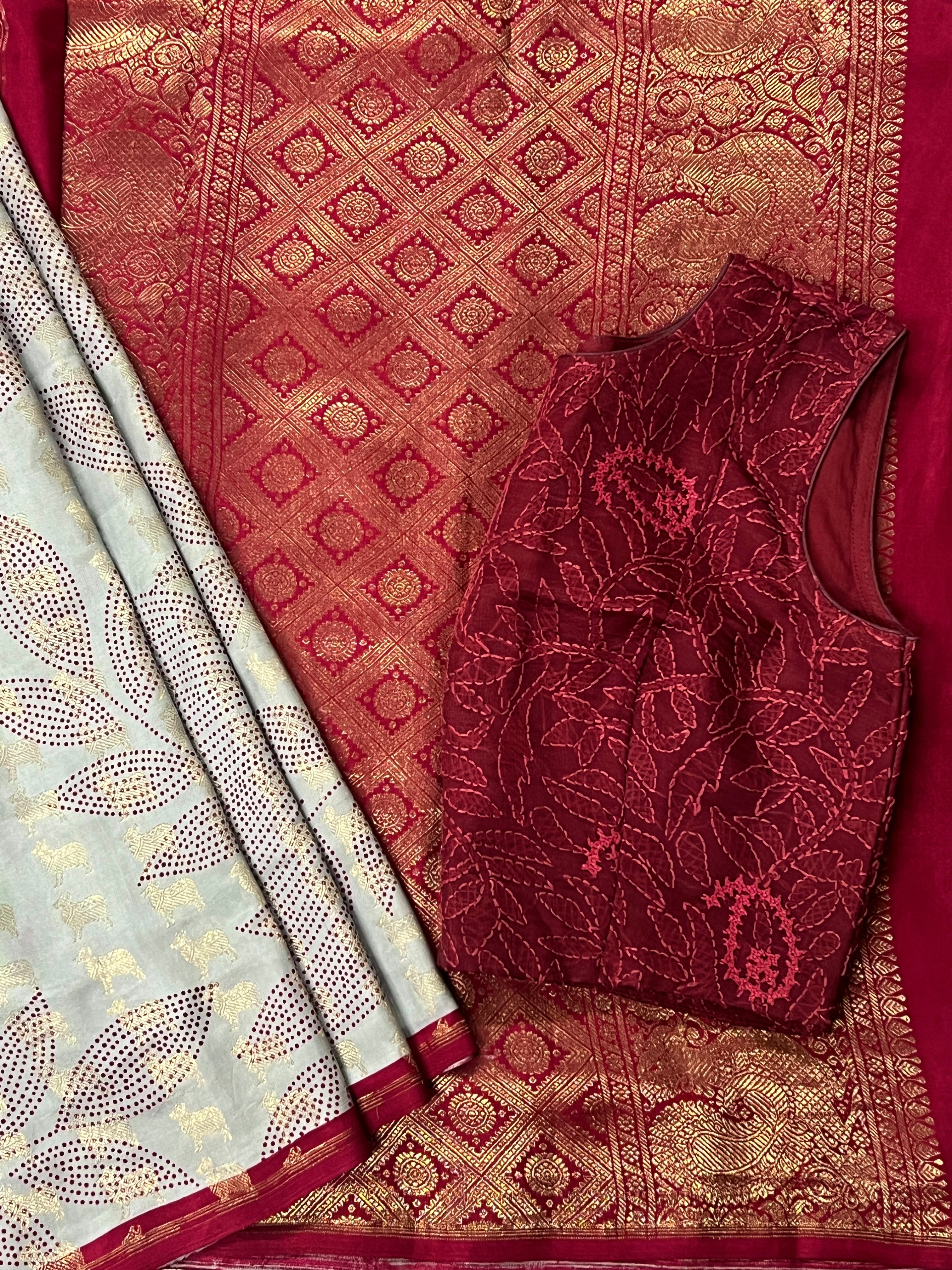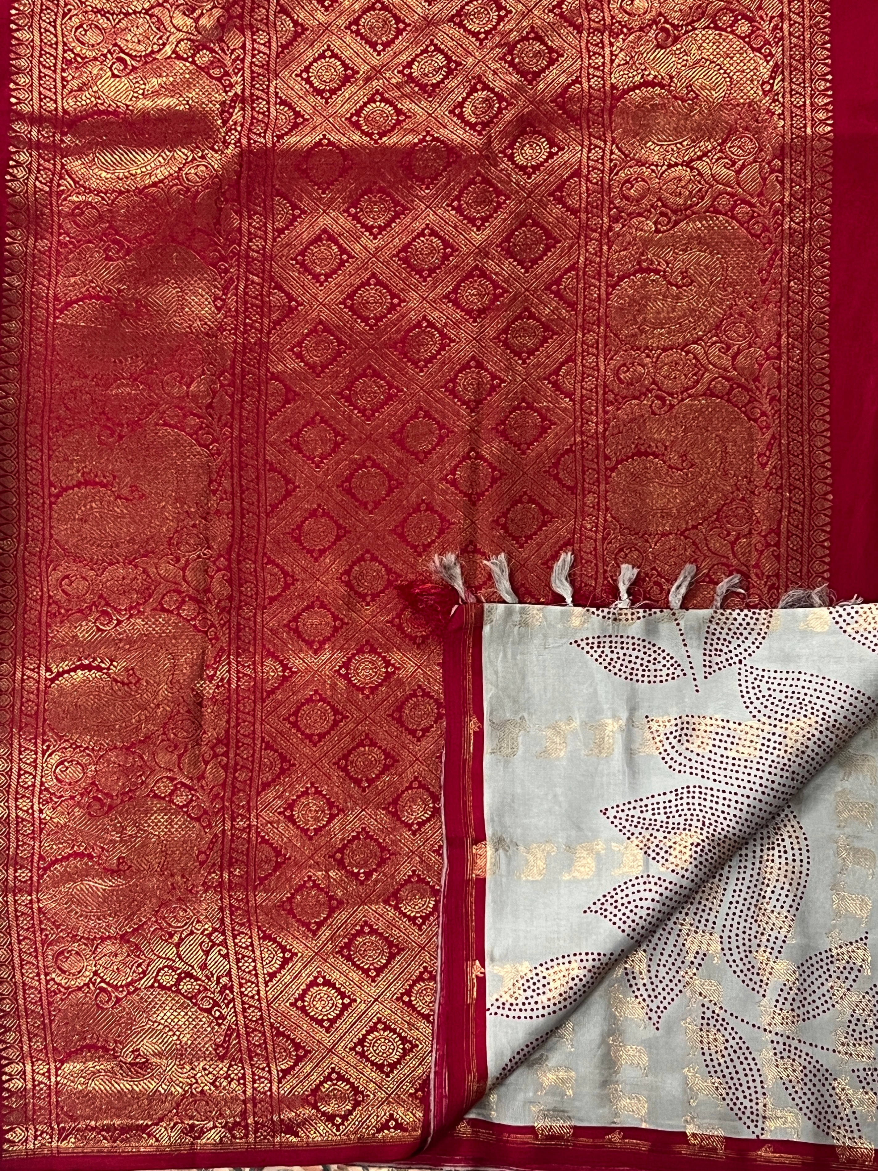 Comes with a plain contrasting silk blouse that complements the saree perfectly.