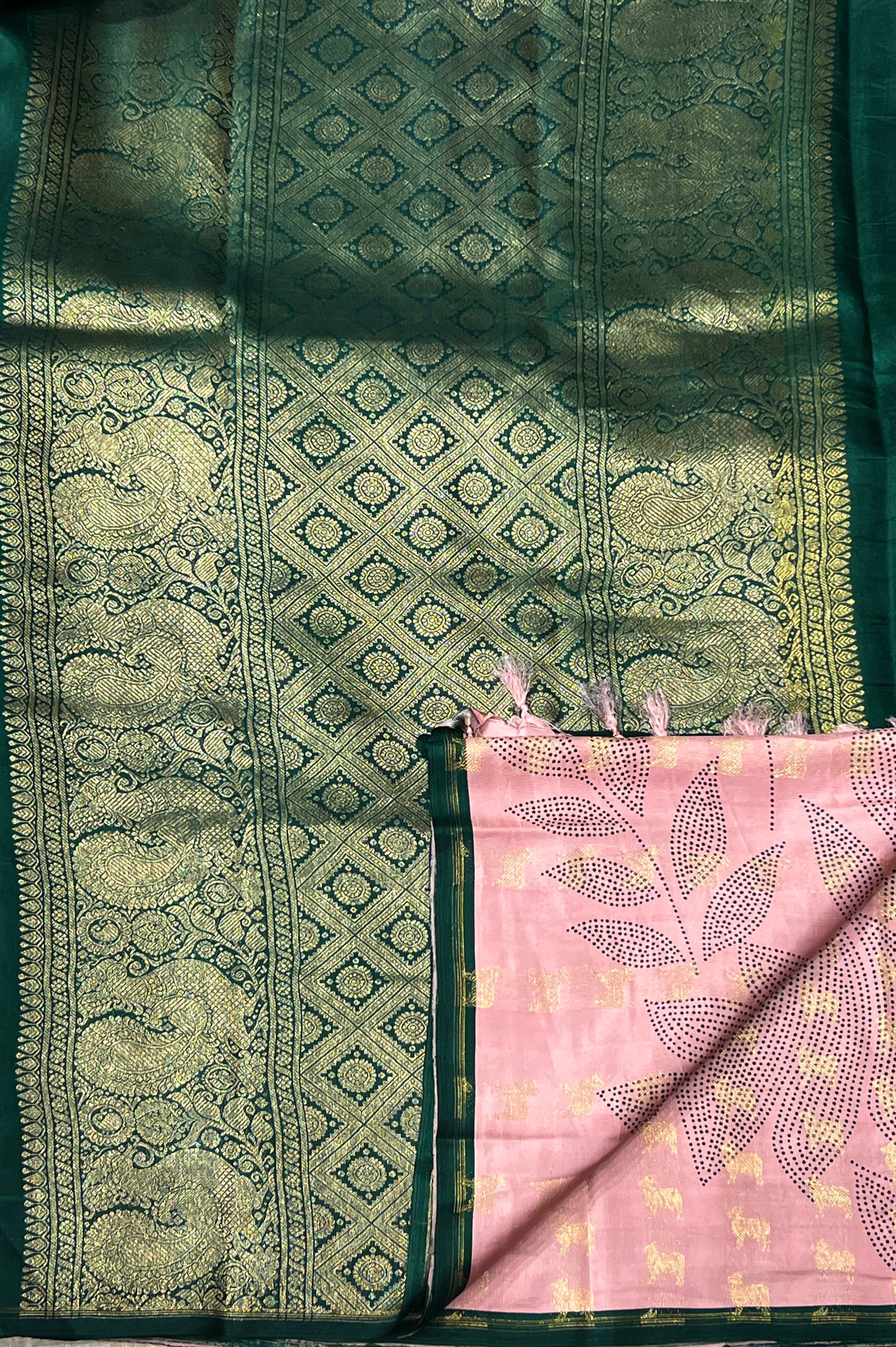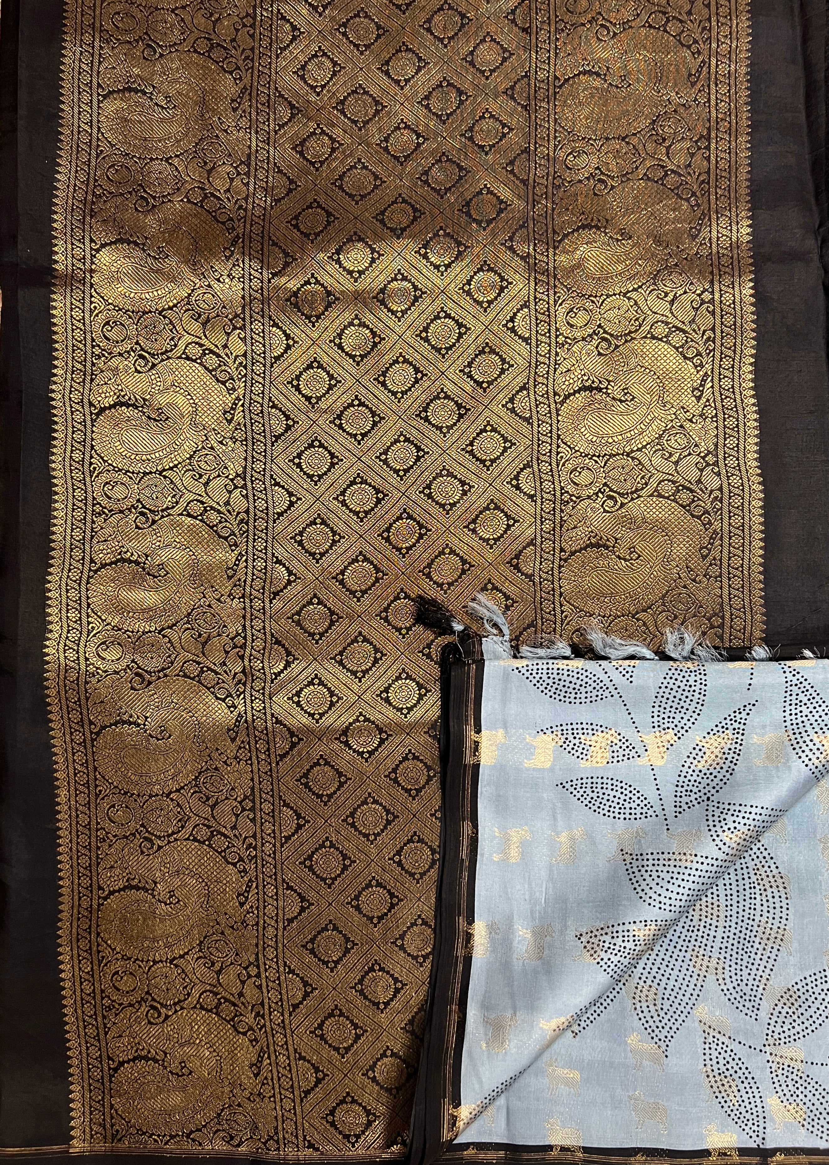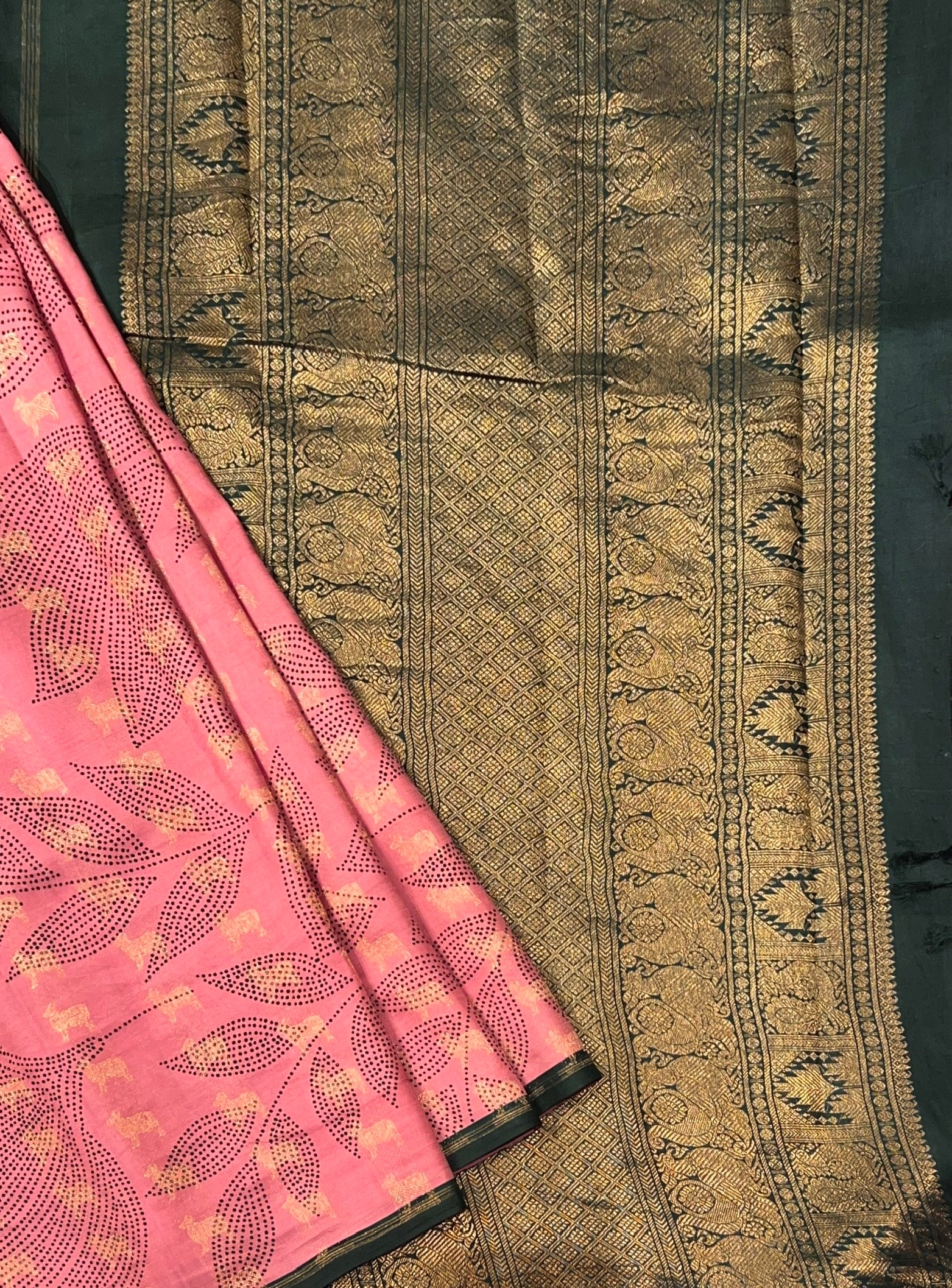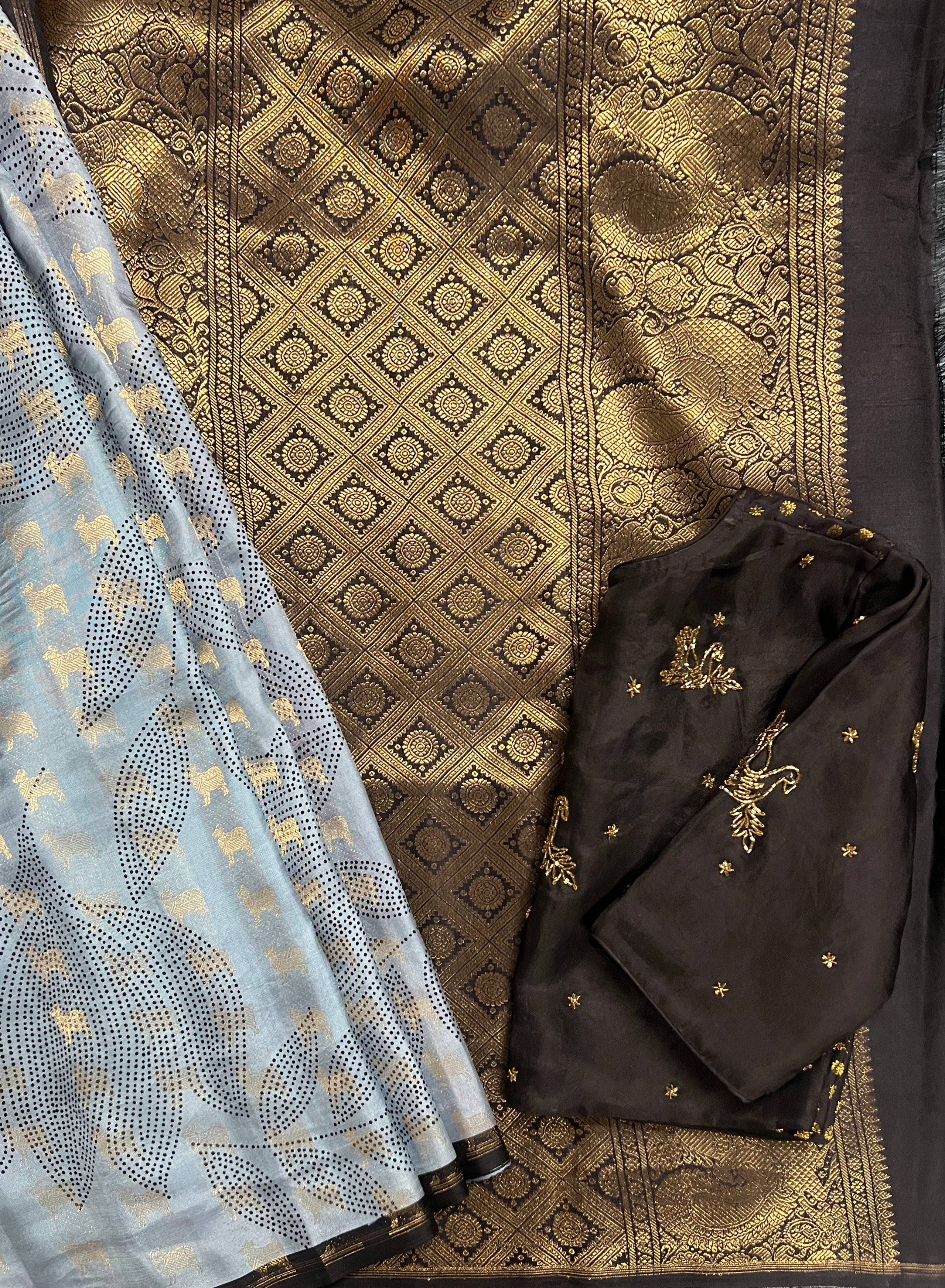 Comes with a plain contrasting silk blouse that complements the saree perfectly.