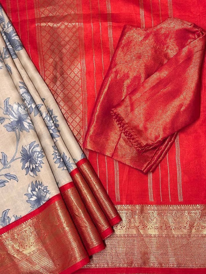 Mila Ivory Bloom Kanchipuram Silk Saree