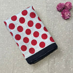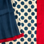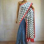 - Half the saree is plain solid colour ,while the other half is polka dots