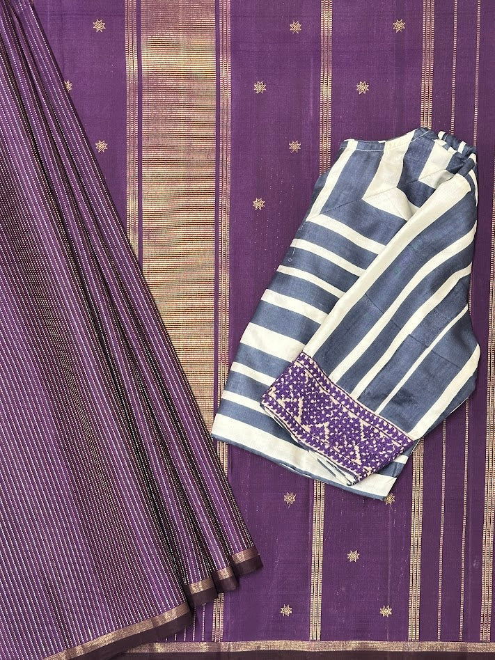 - Self-colour pallu and Zari striped blouse.