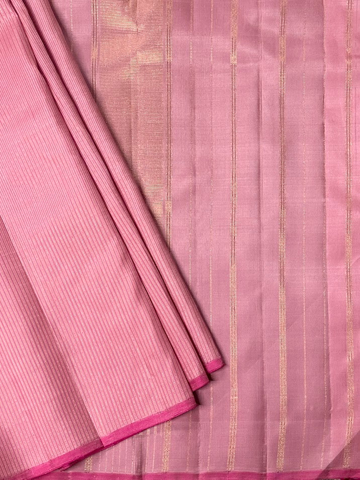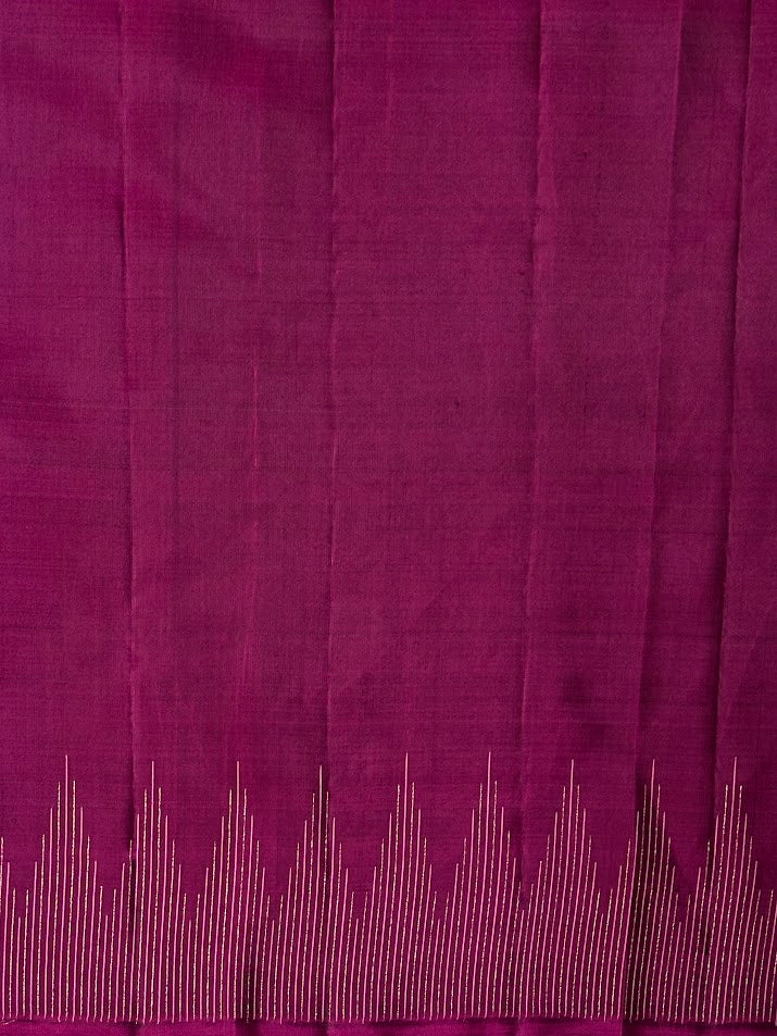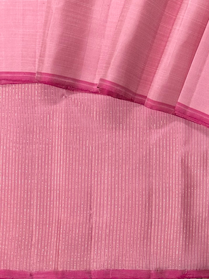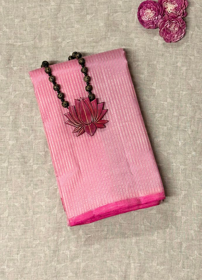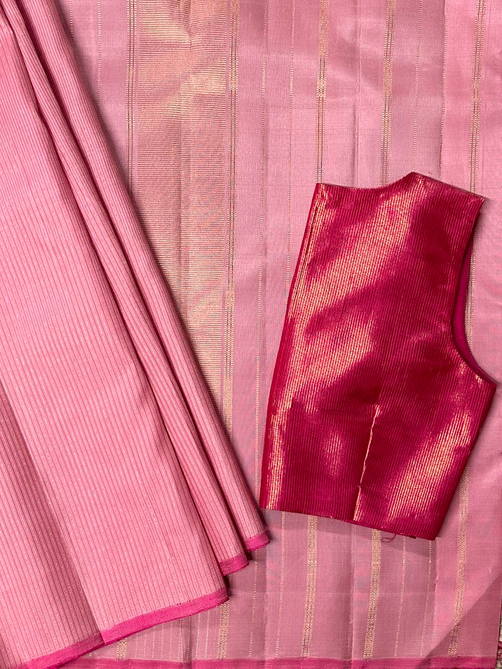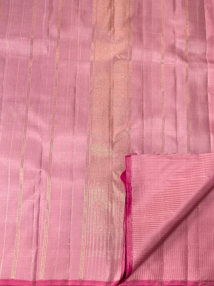 - The Saree has thin Zari lines woven in a rising fashion with more zari towards the pallu.