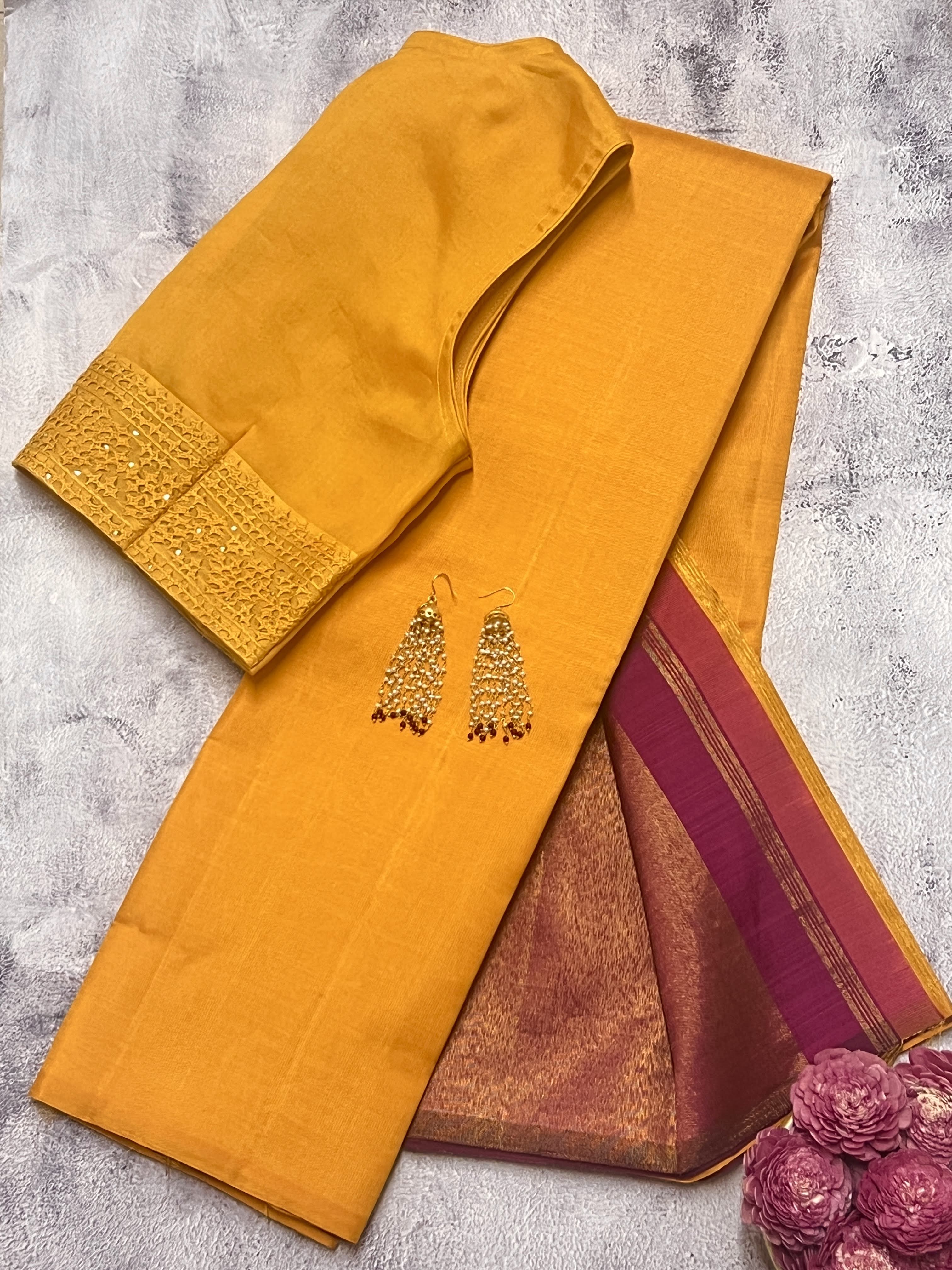 - Pure zari woven in the benarasi style on the pallu, pleats