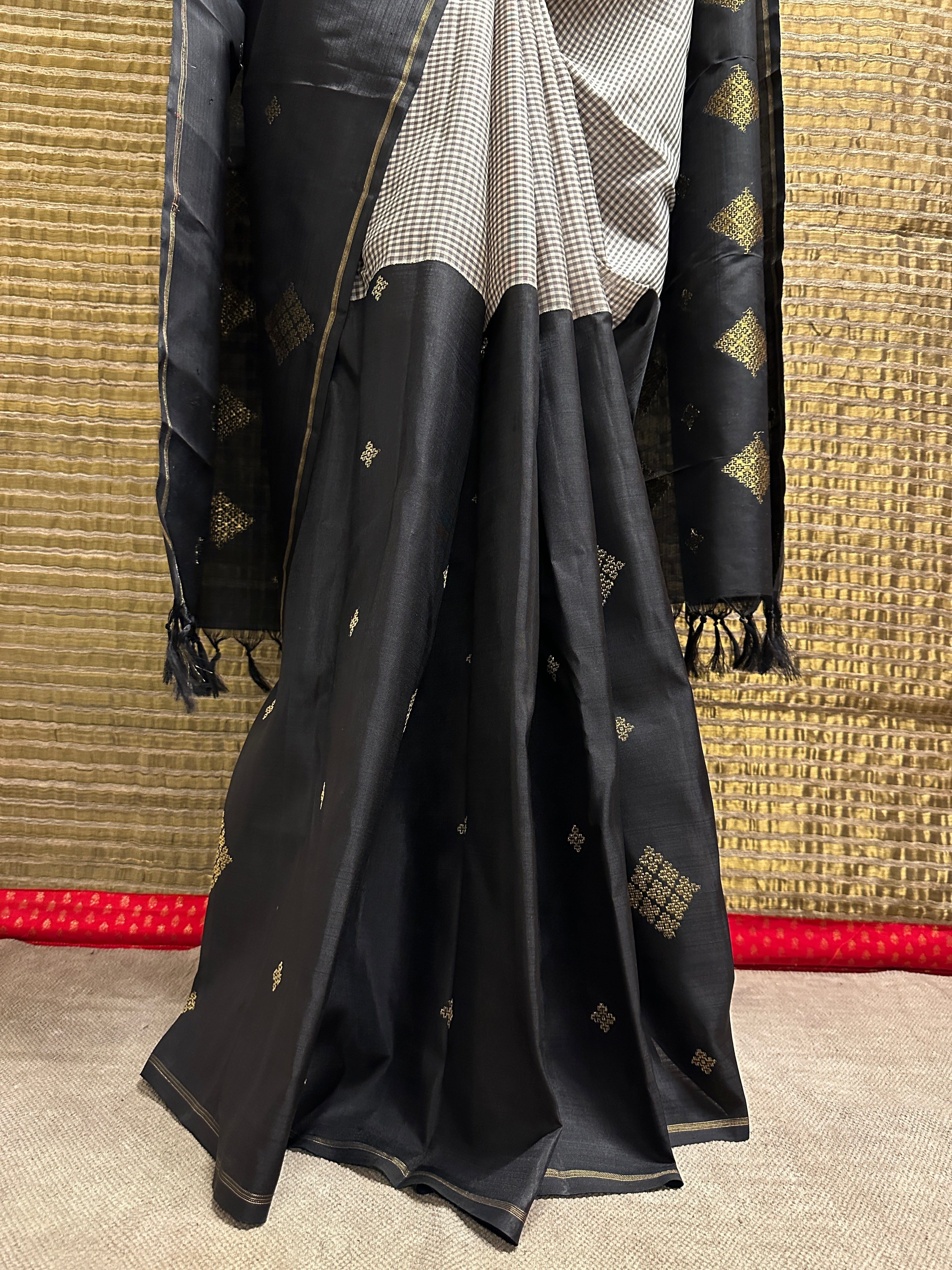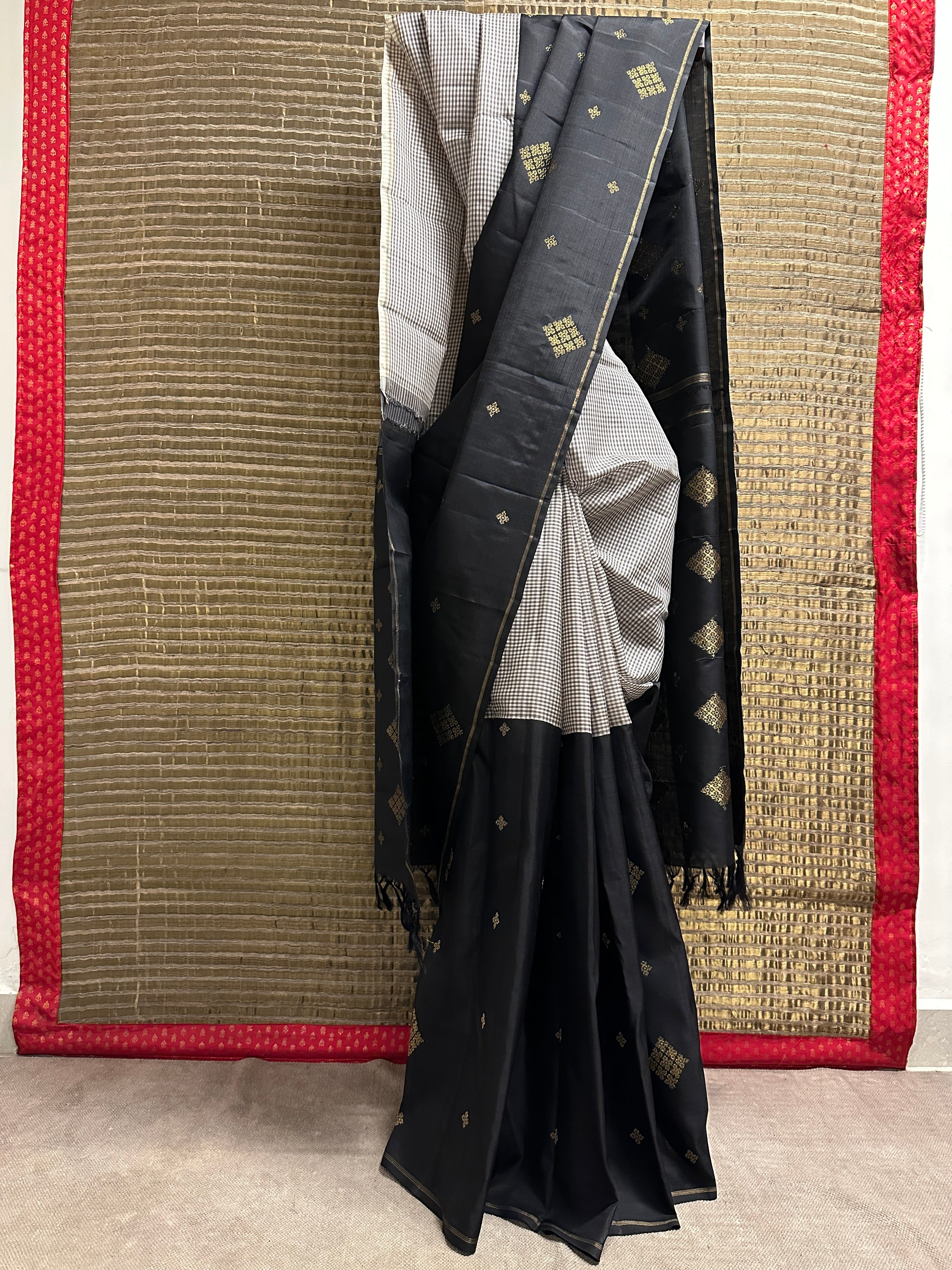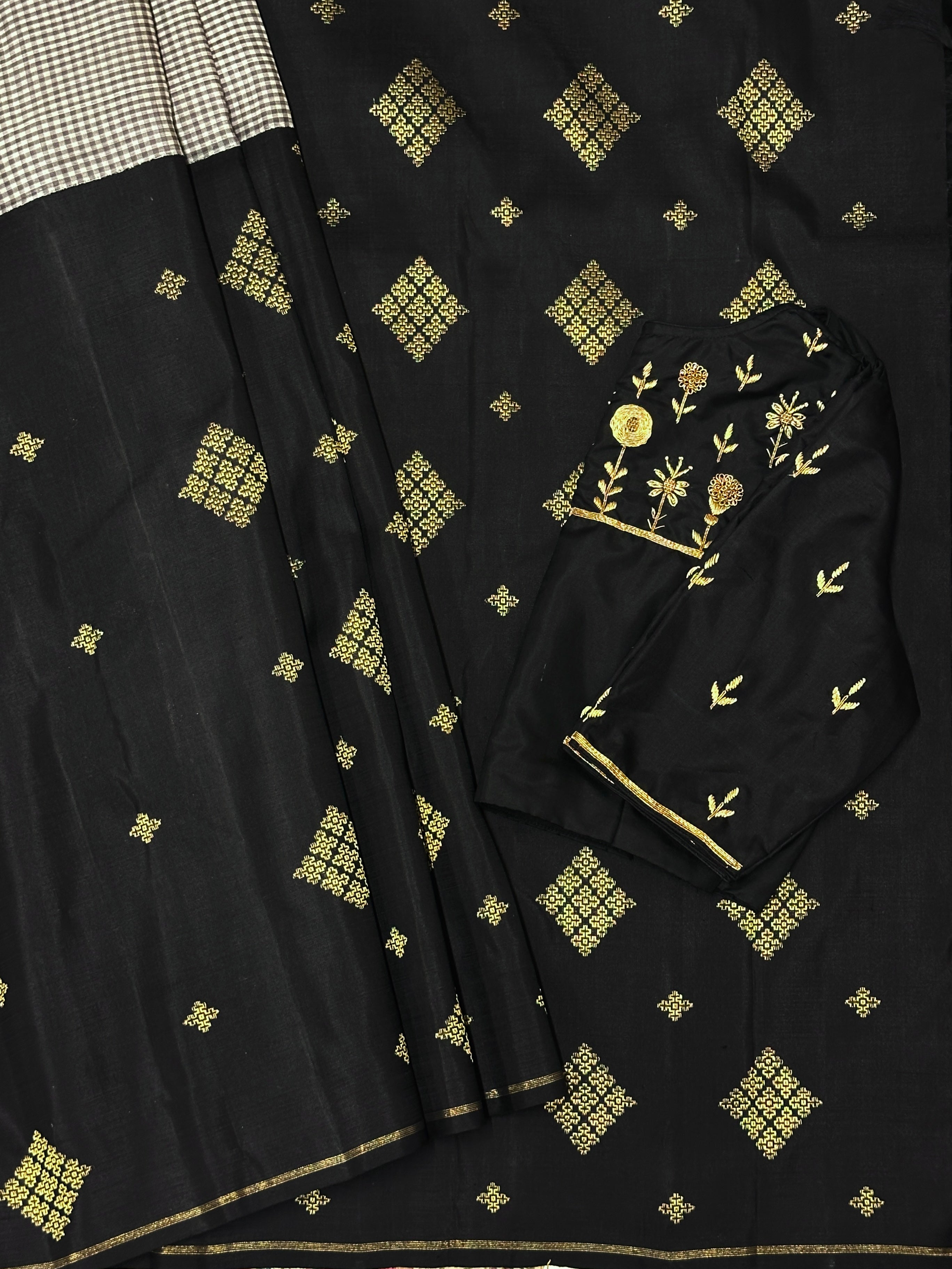 I love smart sarees as I wear them very rarely. Living overseas, it’s harder to carry heavy silks also. This was perfect and I chose this unusual combination