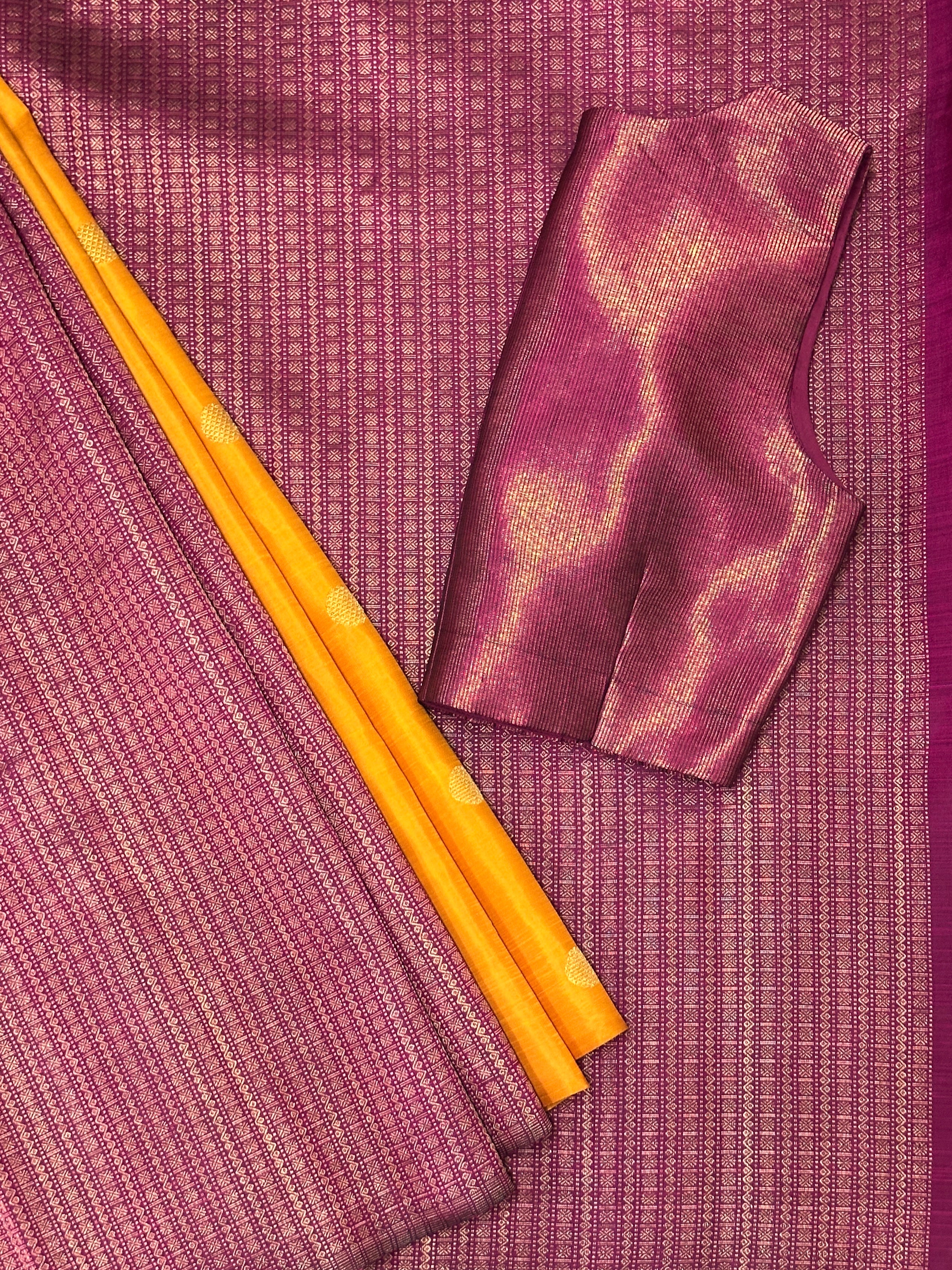 Ranya Ochre Dots Kanchipuram Silk Saree