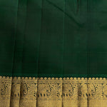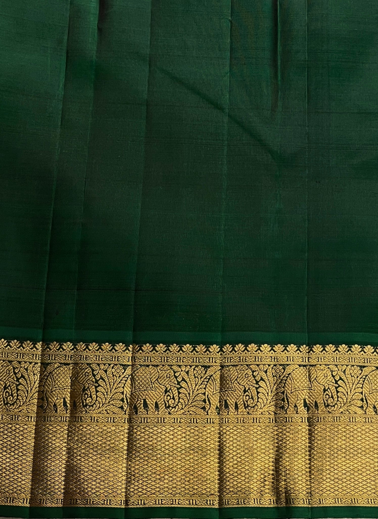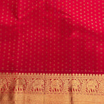 The richly woven border highlights intricate elephant (Haathee) designs symbolizing strength and grace, beautifully paired with Rudraksham patterns.
