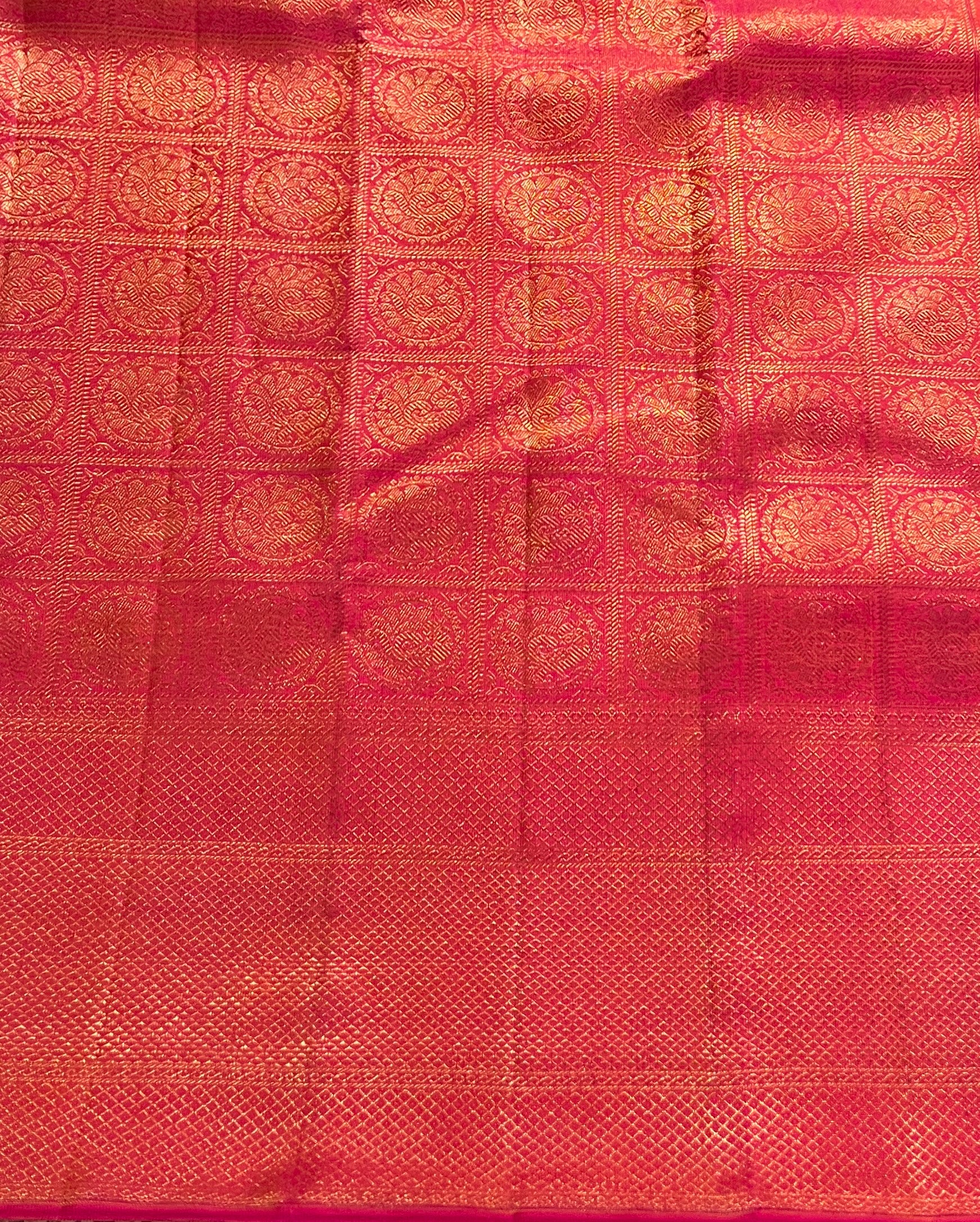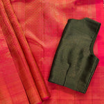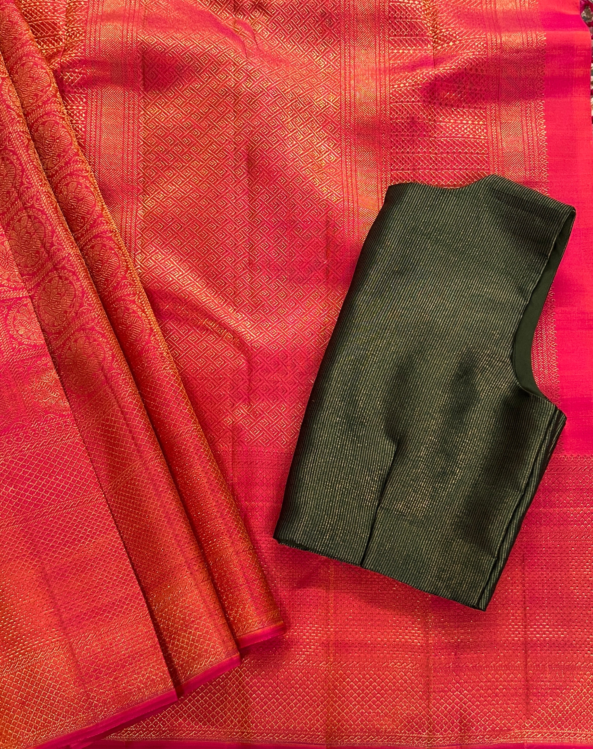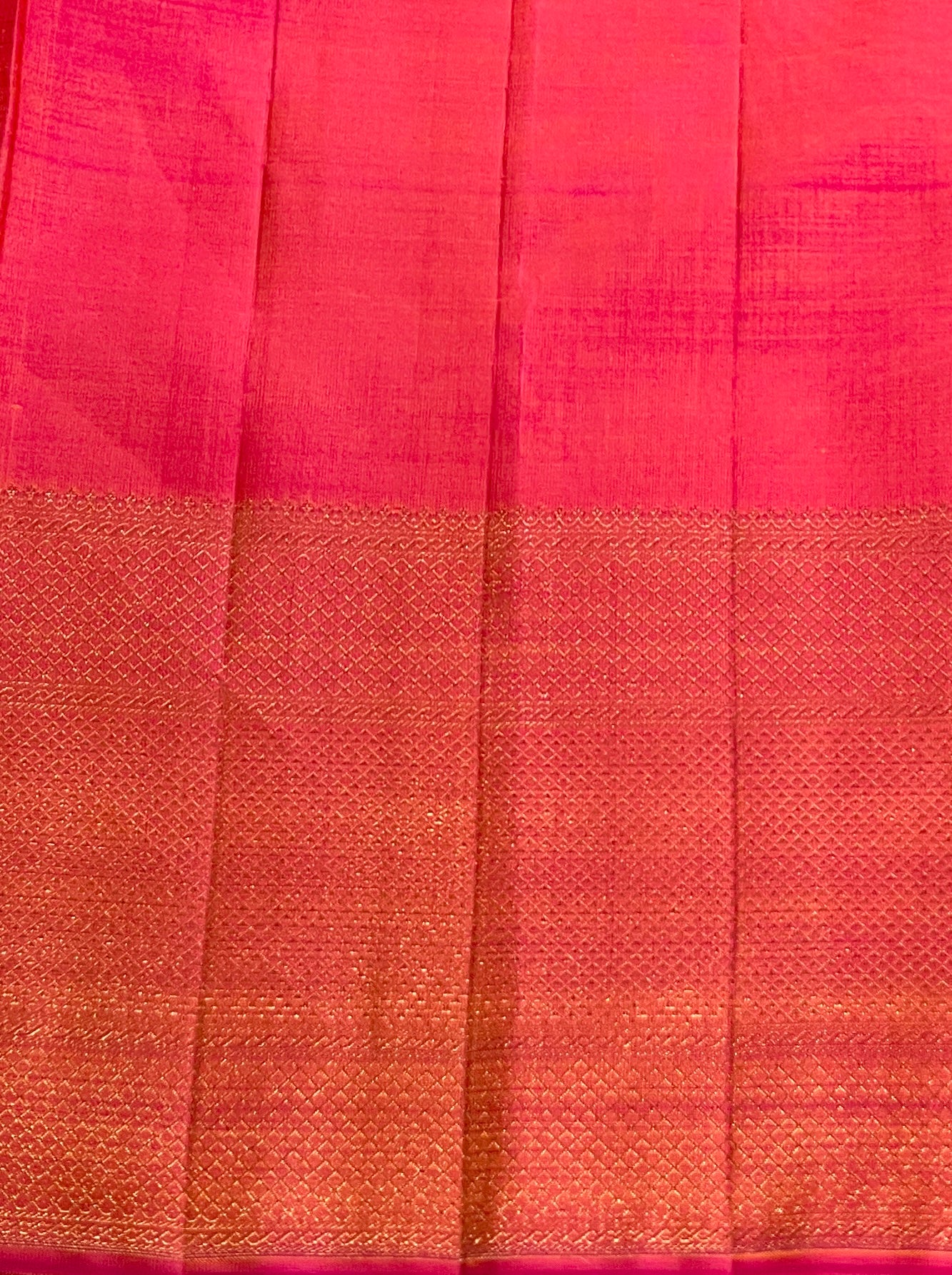 Stunning pink-orange dual-tone pure Kanchipuram silk saree.