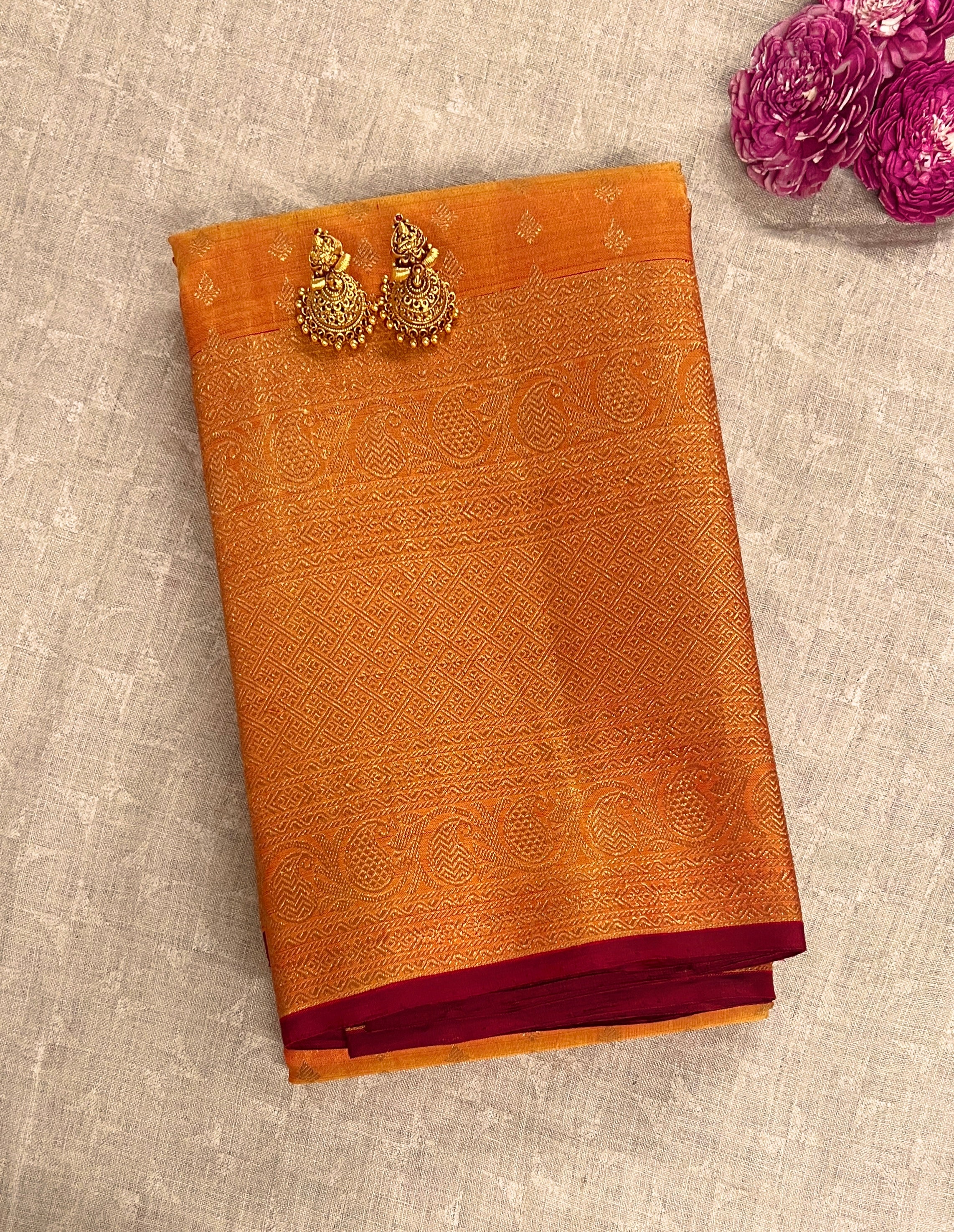 - Handwoven Kanchipuram Silk Saree